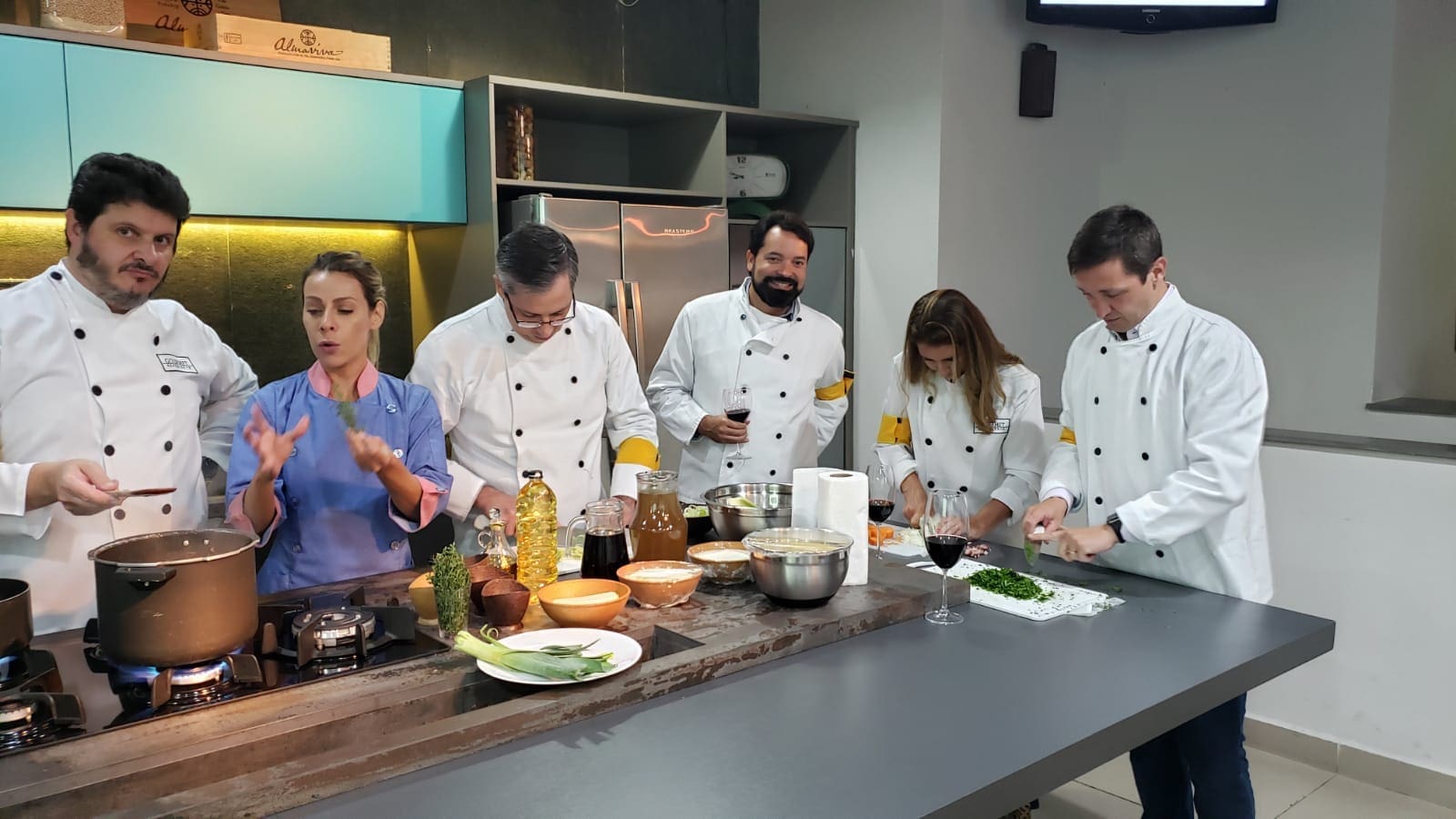 Depois deste momento de descontração, hora de vestir o dólmã e entrar em ação. Orientados pela nossa querida @cheflubenedicto, o evento não poderia ter sido mais interativo.