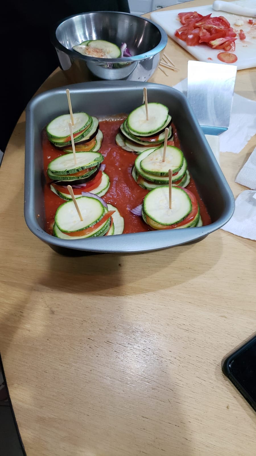 O grupo foi separado em equipes e nada de ficar sentado, que aqui é mão na massa. Muito trabalho já que o menu era composto por uma entrada, o prato principal e a sobremesa.