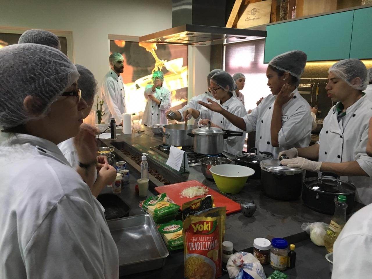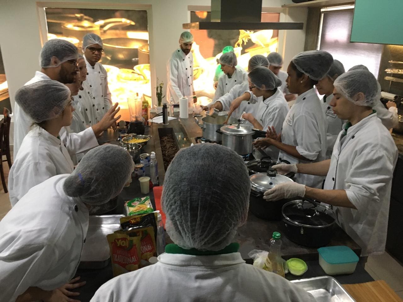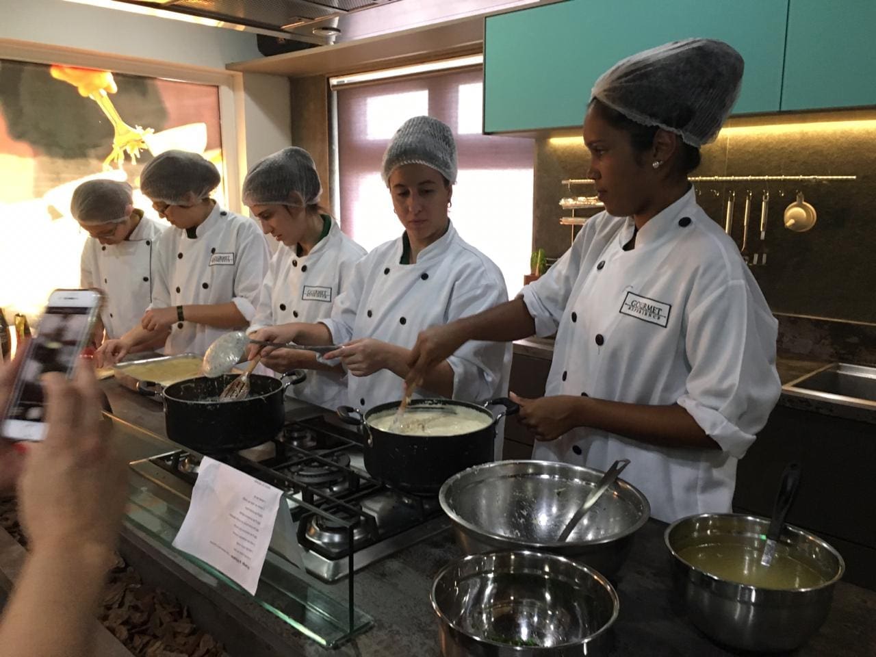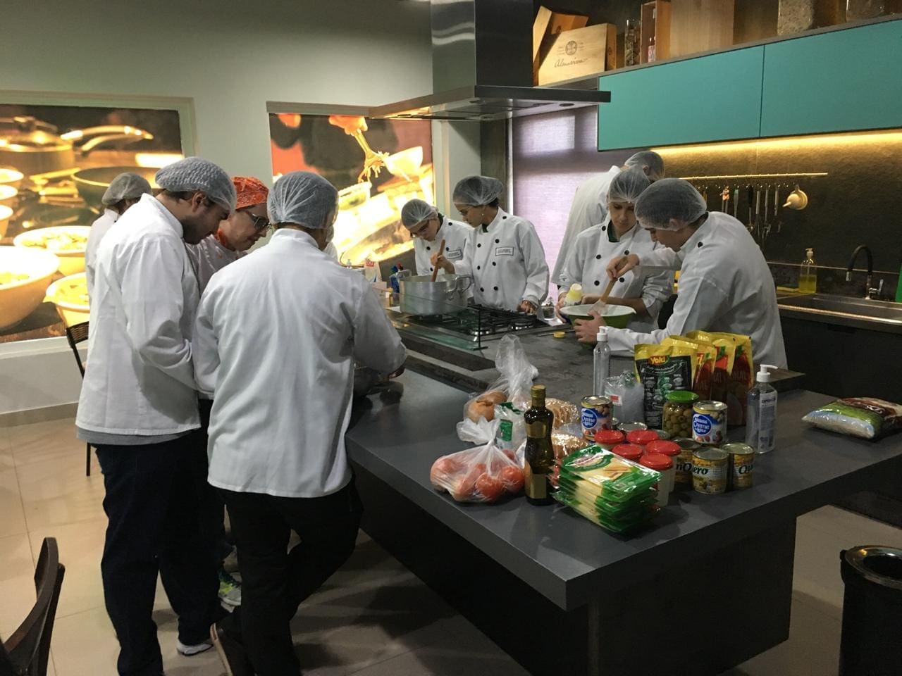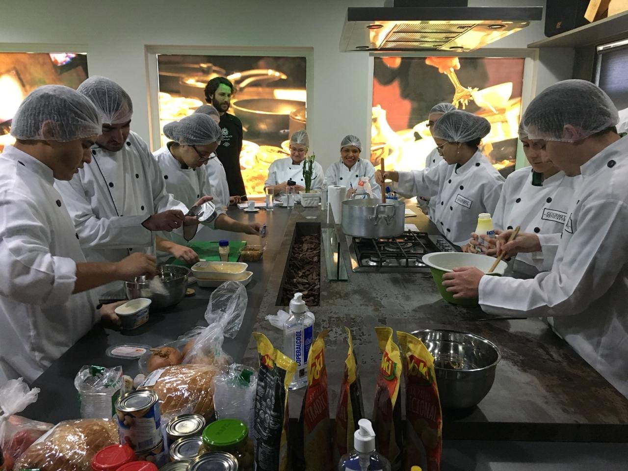 Sempre acompanhados pela chef Rosana Gamaro, os participantes puderam aplicar seus conhecimentos de engenharia nos processos da cozinha, controlando medidas e administrando os insumos para produzir a quantidade ideal e não deixar ninguém de fora, exercitando ainda a comunicação e resgatando sentimentos como a confiança e o respeito mútuos.