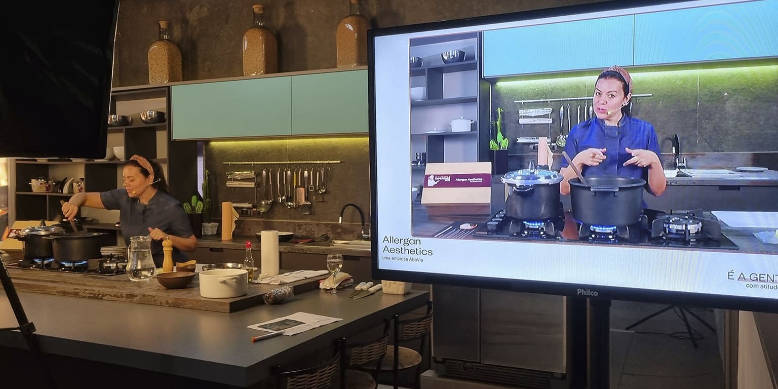 No dia do evento, mais um show da equipe técnica, que transmitiu o evento com qualidade para que todos os colaboradores pudessem preparar em casa um delicioso Arroz Cremoso de Cogumelos.