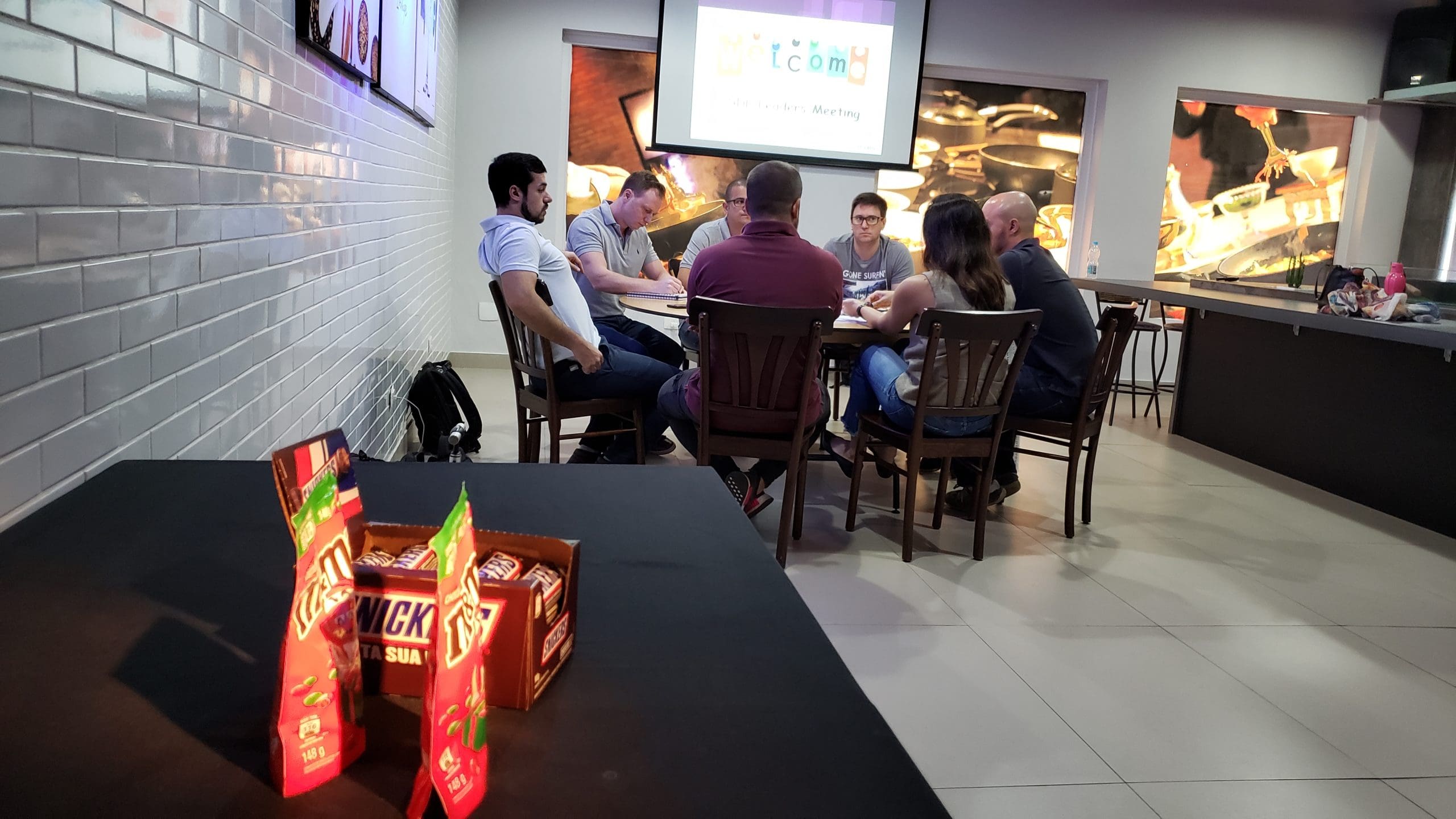 Sabendo disso, a Associados Mars, gestora da marca de chocolate M&M’s, preparou uma surpresa especial para sua equipe aqui no Experience Lounge. Na parte da manhã, os convidados foram recebidos com um welcome coffe delicioso e seguiram para uma palestra.