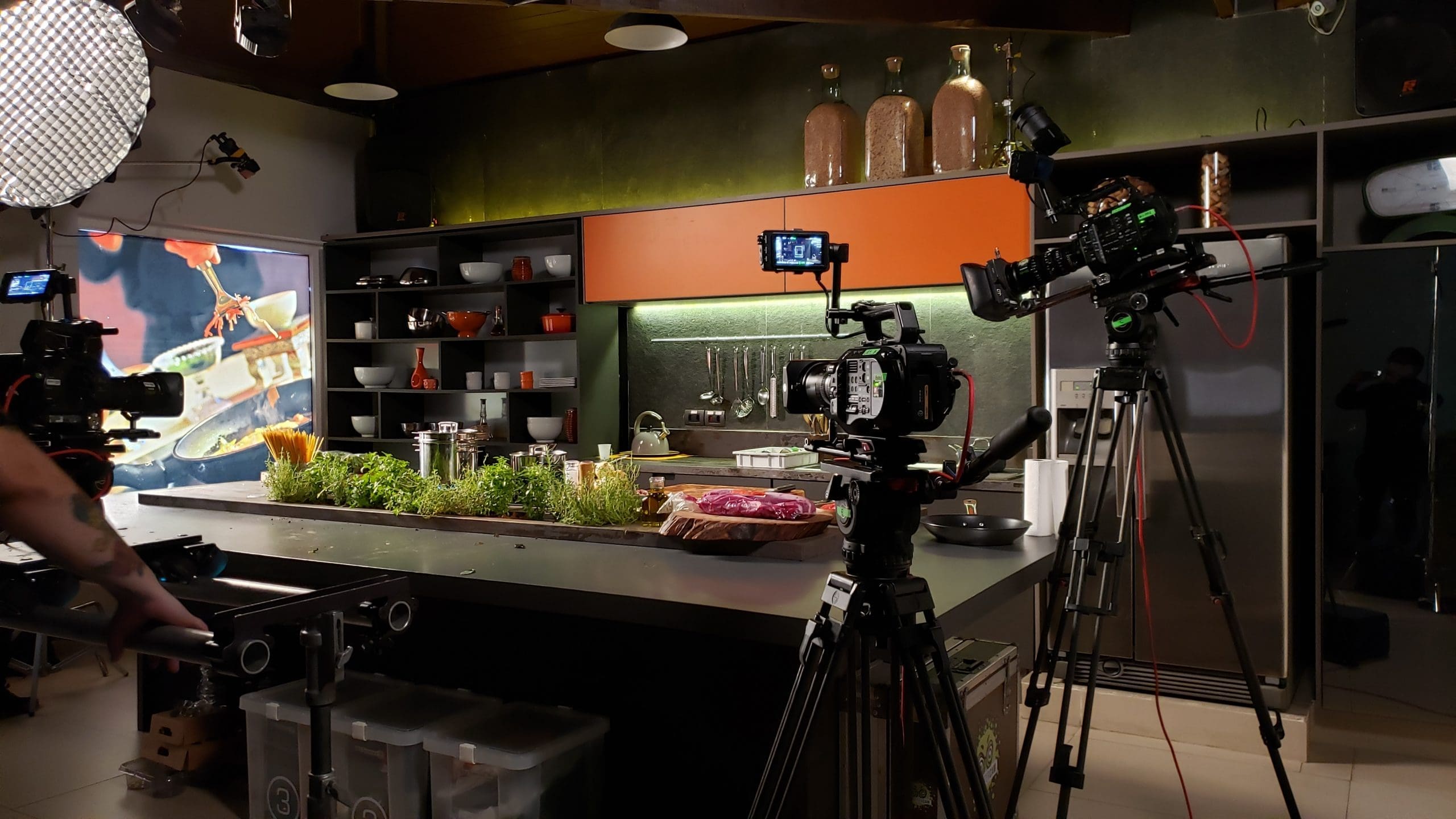 Aqui elas encontram um ambiente totalmente planejado para gravações de mídias audiovisuais para o mercado gastronômico: estrutura de acústica, iluminação automatizada e todos os utensílios de uma cozinha completa.