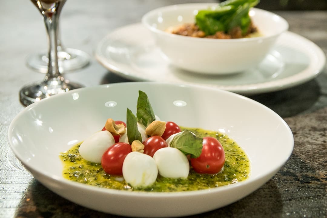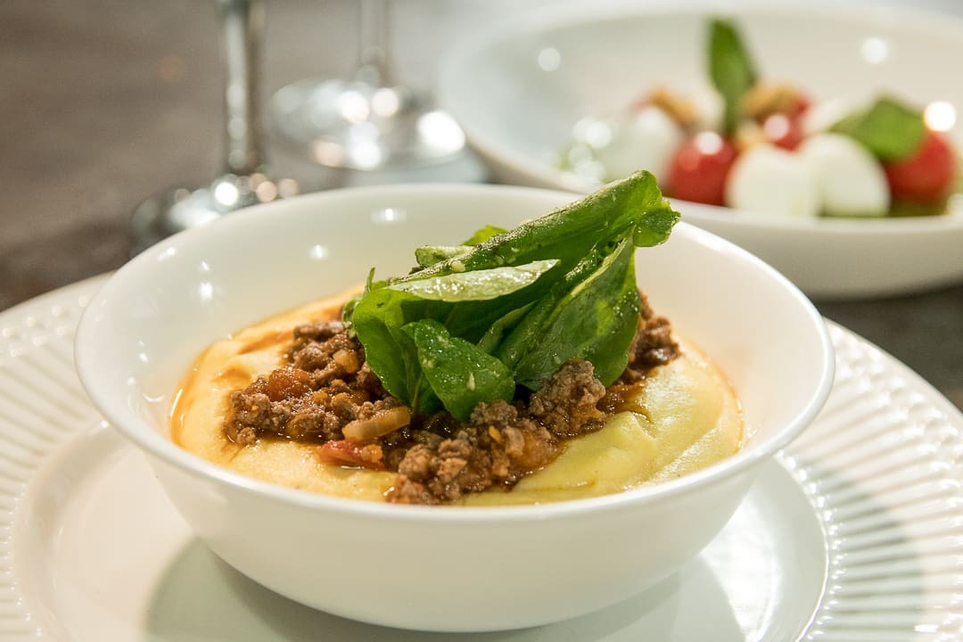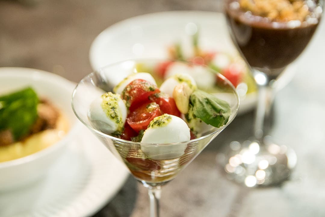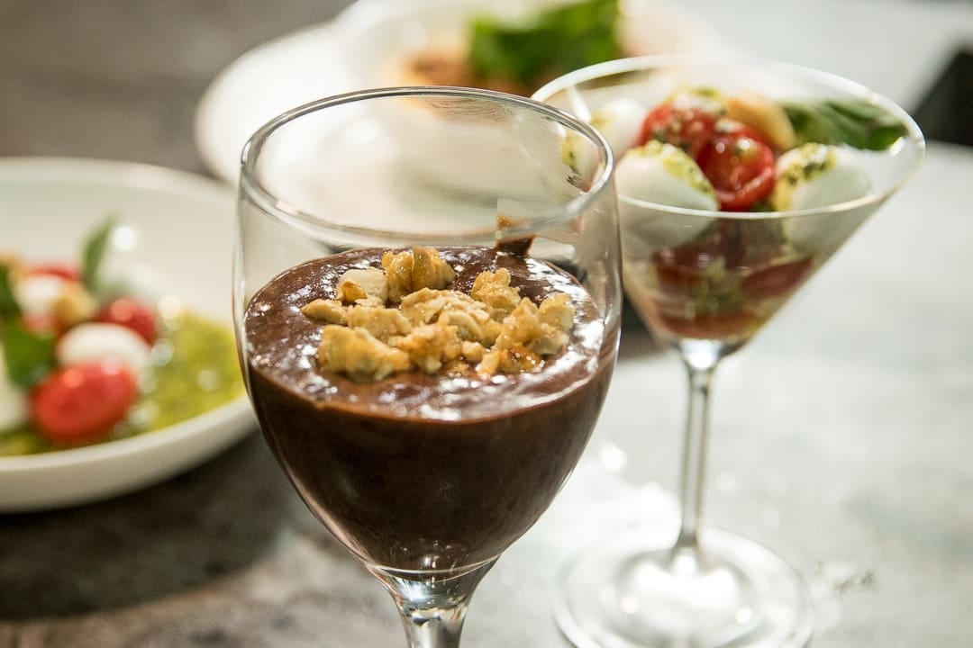 O menu desta noite tão especial contou com 03 pratos: a entrada foi uma Salada Caprese, com um toque todo especial que só os chefs sabem preparar, o prato principal foi uma polenta cremosa bolonhesa que é uma delícia para os dias mais frios e para finalizar a noite deliciosa uma mousse de chocolate com farofa de castanha.