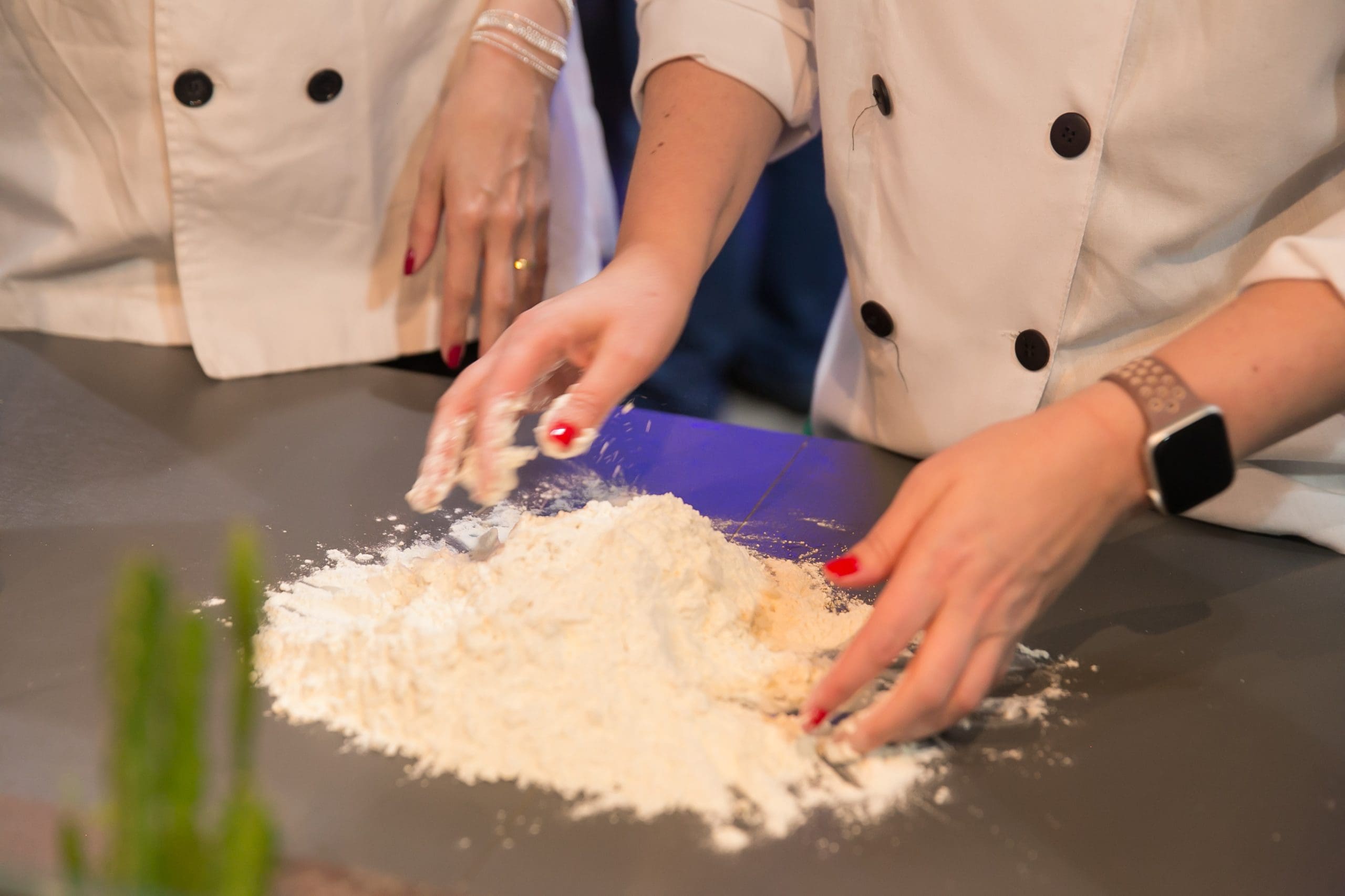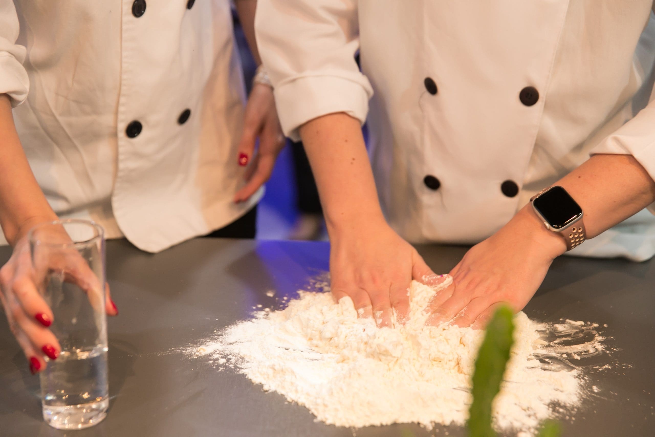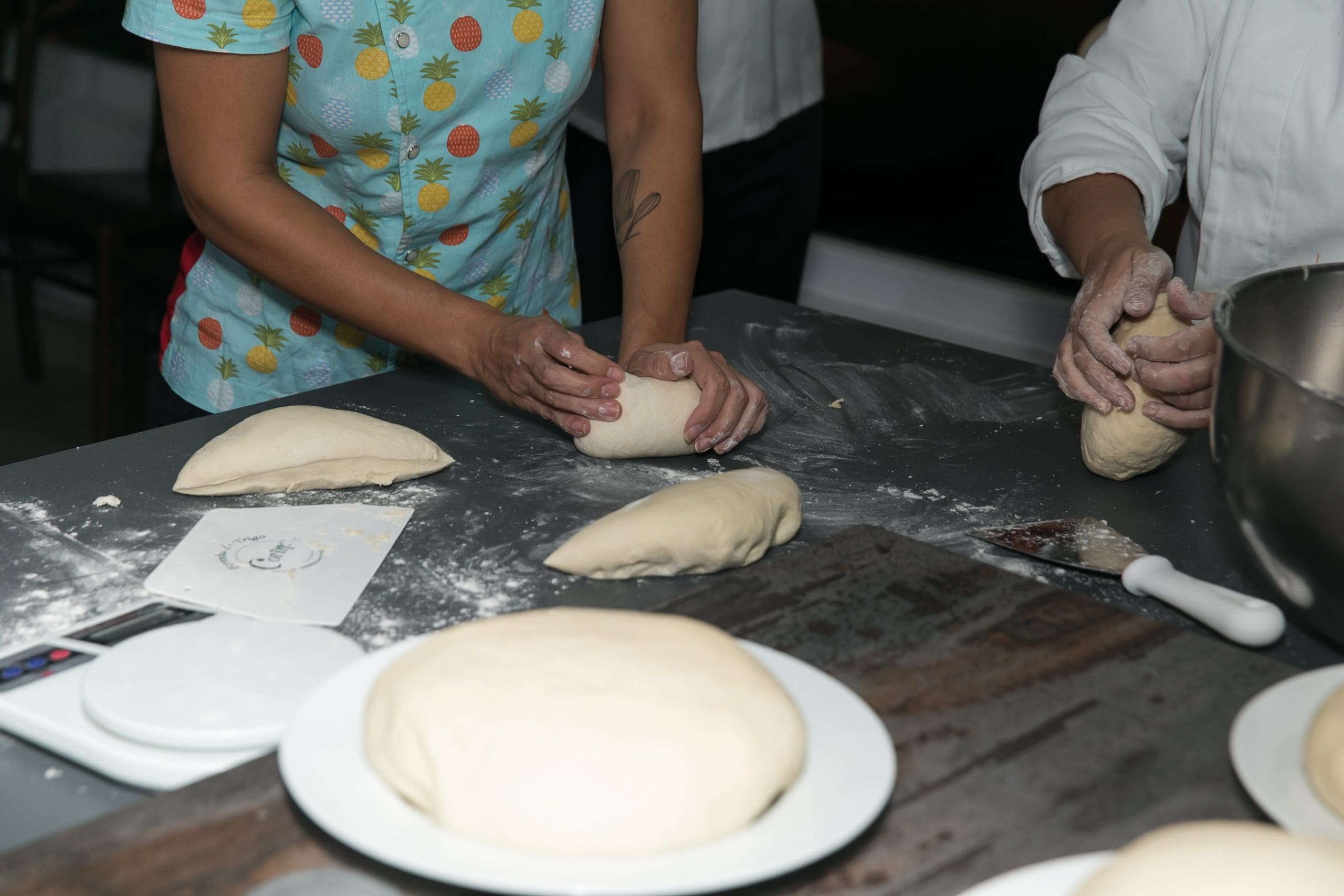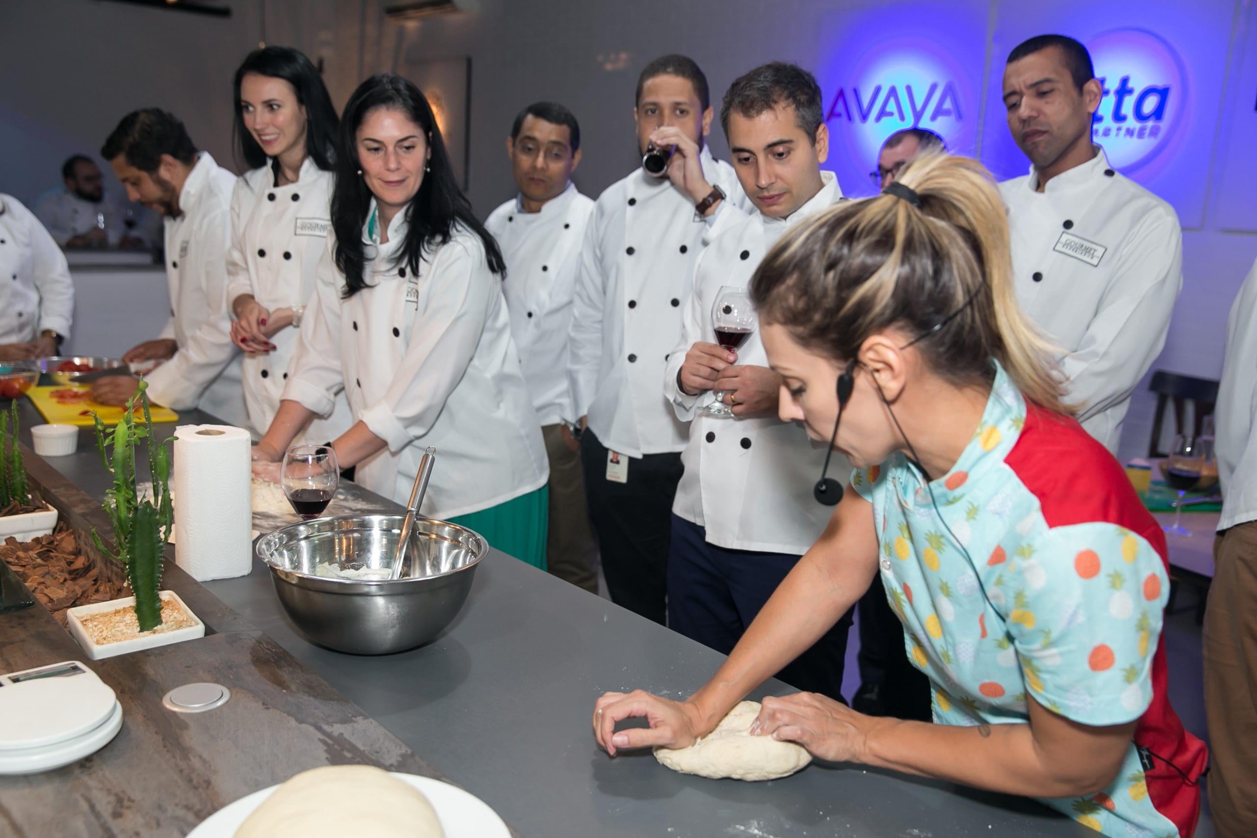 Conduzidos pela chef residente Lu Benedicto, os convidados vestiram os dólmãns e literalmente colocaram a mão na massa. Se revezando nas diversas tarefas da cozinha, os participantes puderam conhecer e efetuar todas as etapas do processo, preparando a massa da pizza, separando os ingredientes e montando as pizzas.