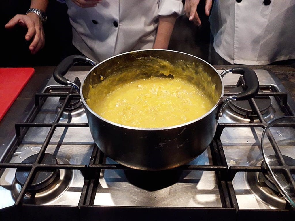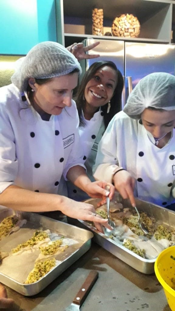 A atividade de fato começou quando o grupo colocou a mão na massa, fazendo a separação dos ingredientes e iniciando os preparativos para a elaboração de cada receita. Sempre em um clima divertido, todos se concentravam em suas tarefas e ajudavam uns aos outros para que tudo saísse como planejado, afinal preparavam seu próprio jantar.