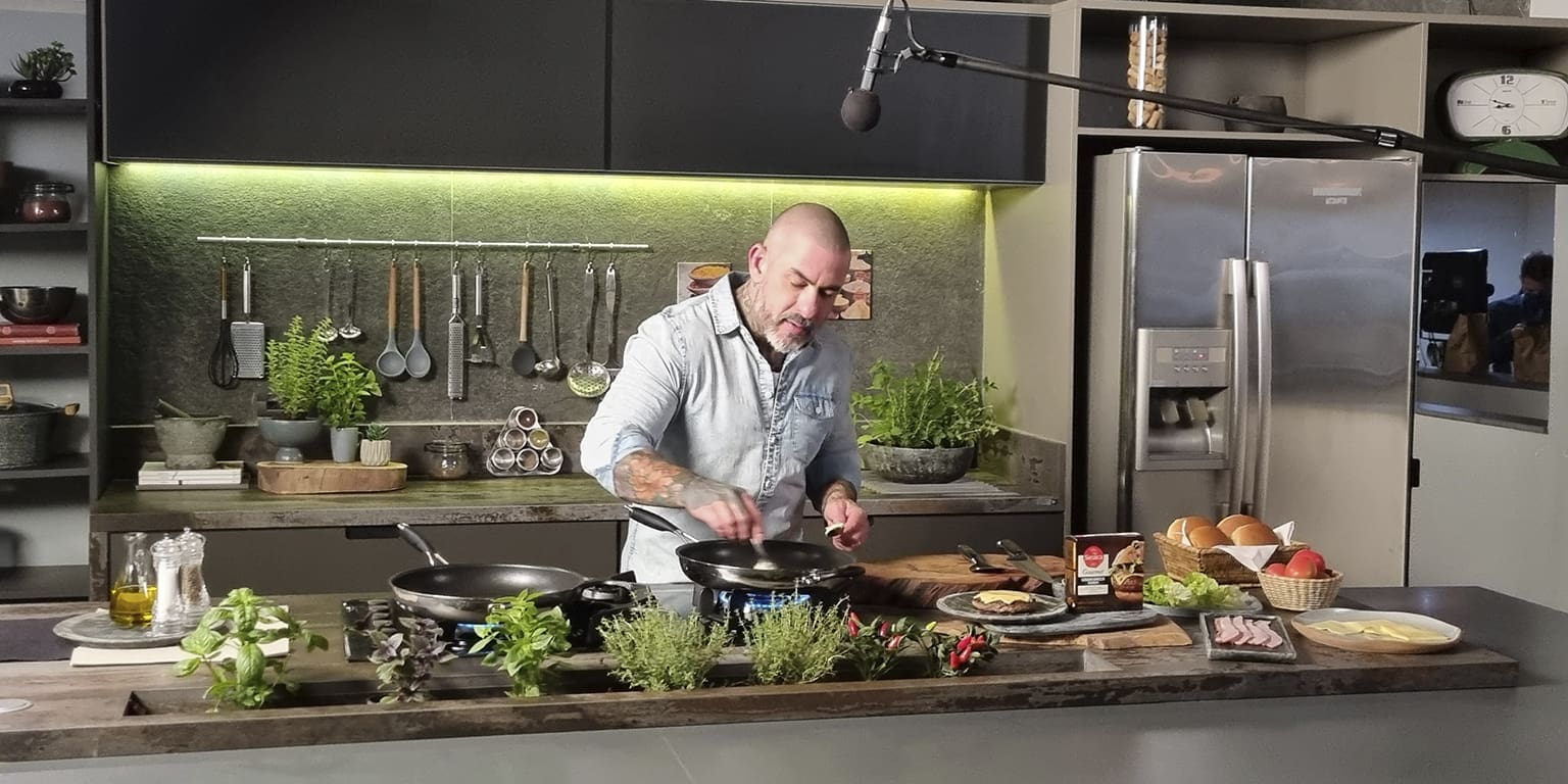 Novamente o Chef Henrique Fogaça, que já conhece o Experience Lounge, nossa cozinha gourmet, nosso time de suporte, é que esteve na frente das câmeras para ensinar como fazer um delicioso hamburguer.