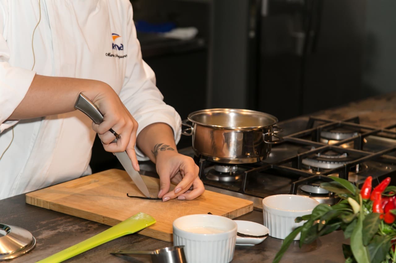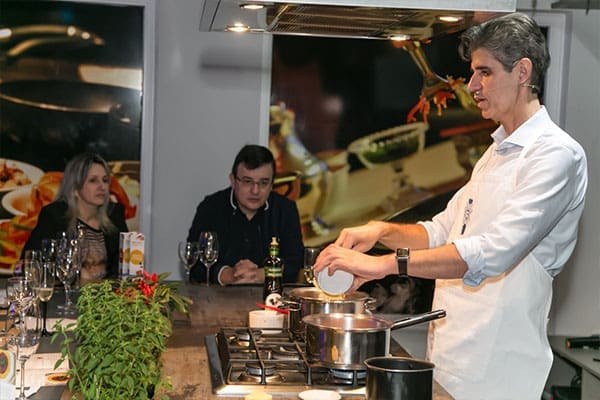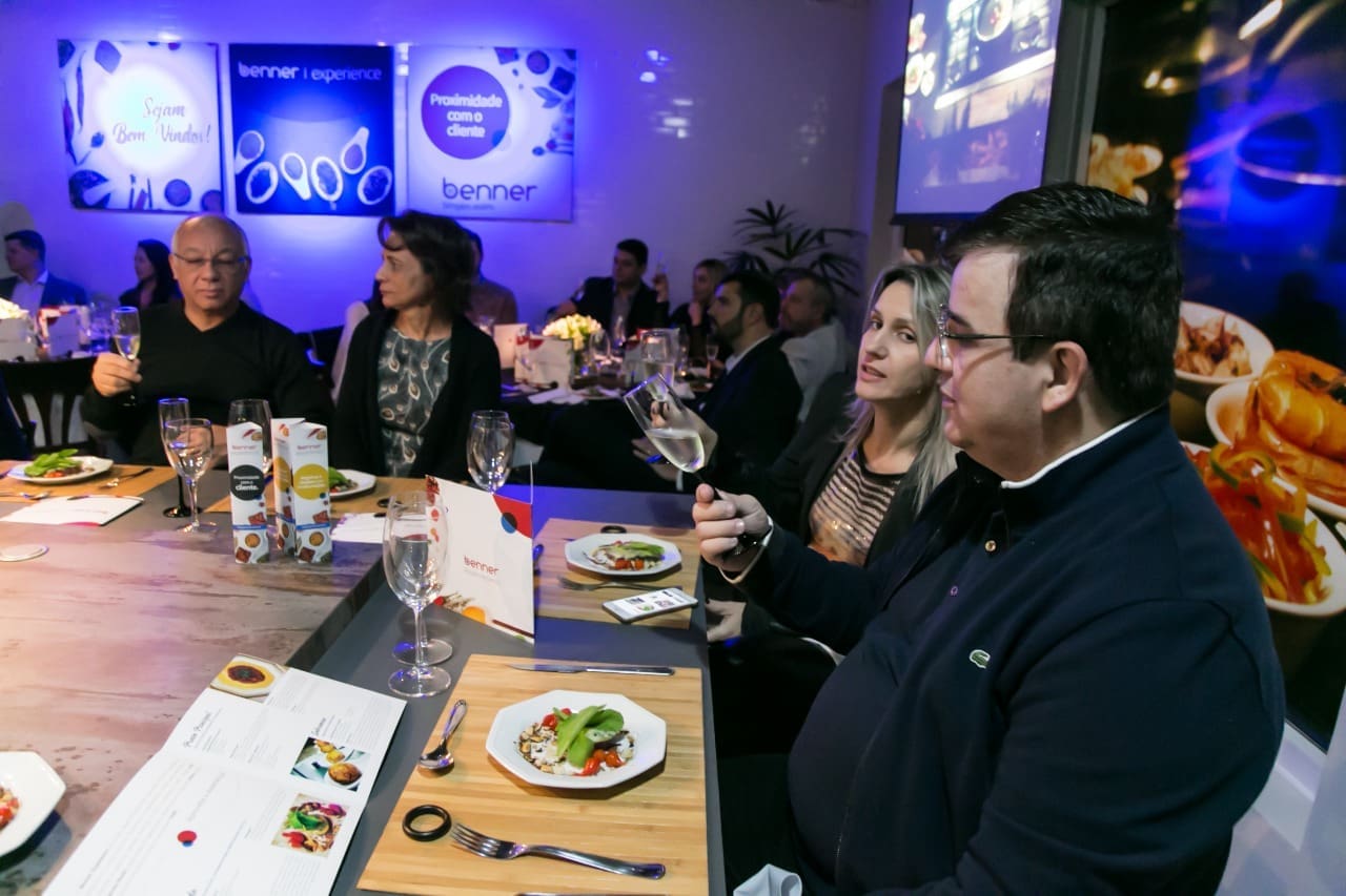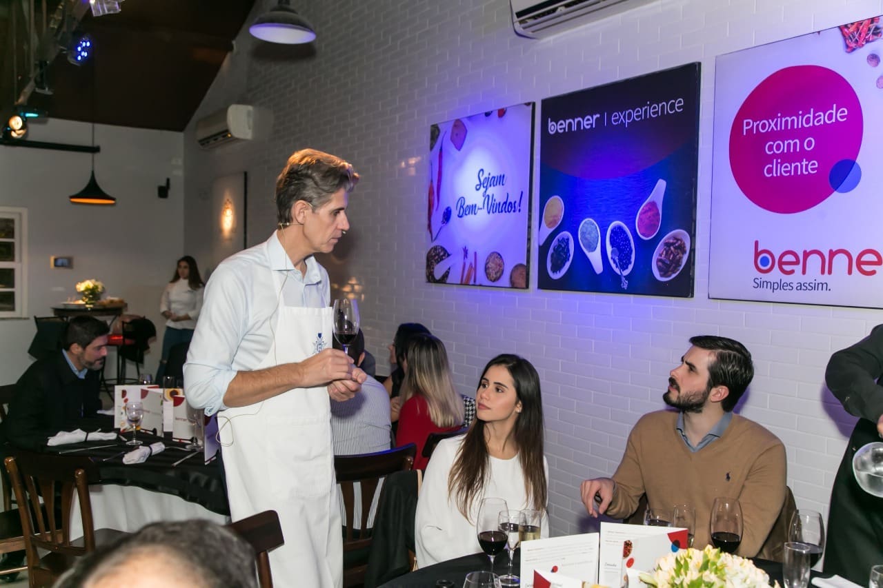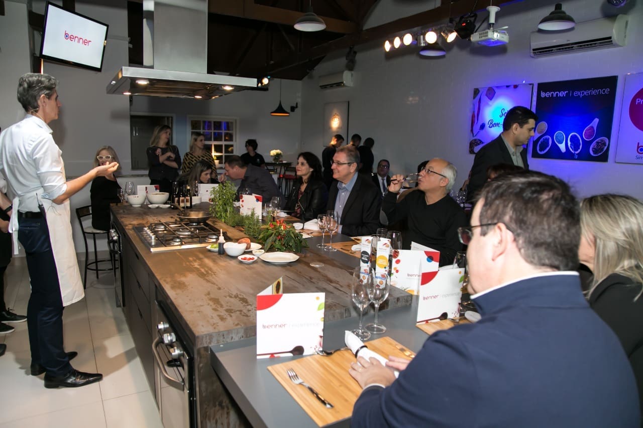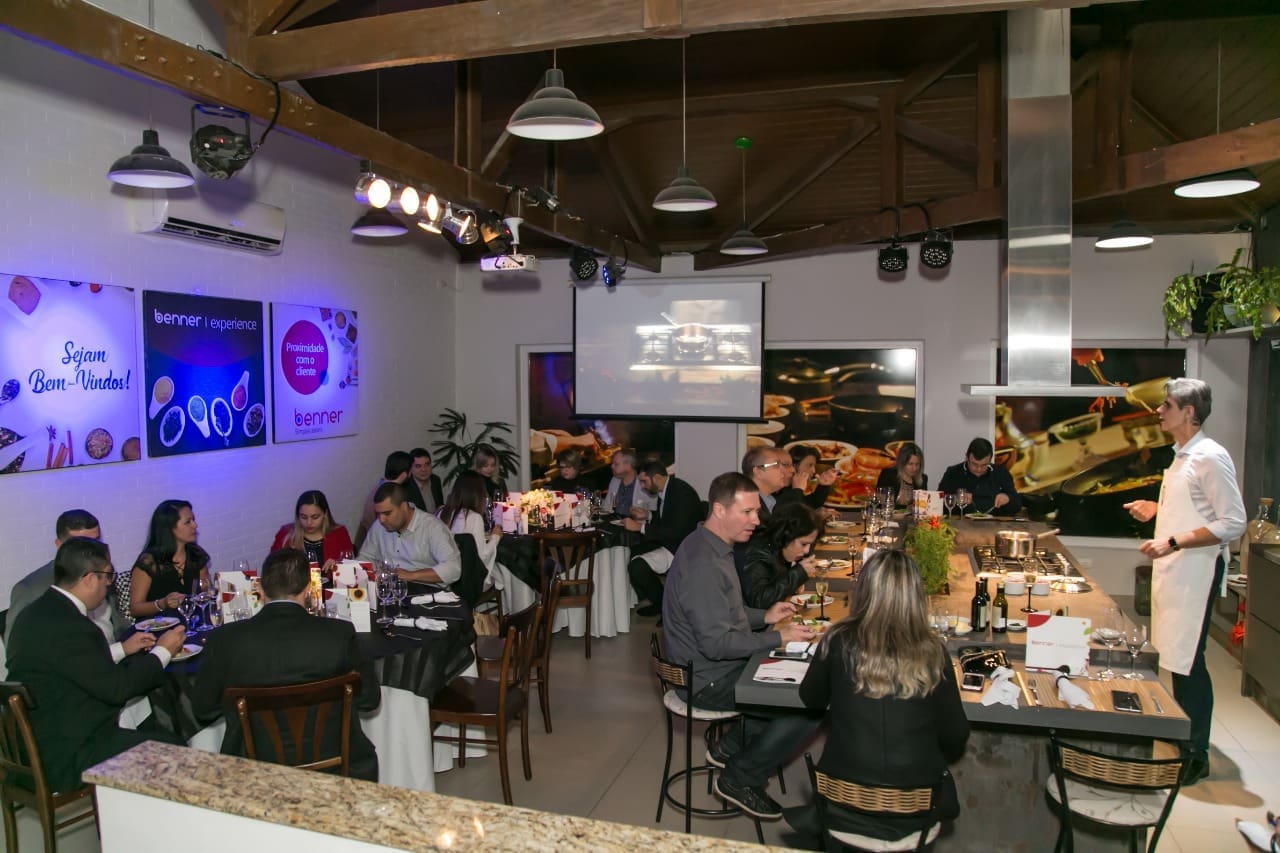 O convidado é recebido em um coquetel e é conduzido a um jantar, no qual os pratos serão preparados passo-a-passo, em uma apresentação ao vivo. Na mesma mesa deste convidado, estarão outras pessoas, que também estão interessadas em relacionamento e business. Por isso este formato é diferente: a gastronomia, que é um conteúdo que une as pessoas, é entregue ao vivo e pode ser o plano de fundo ideal para novos negócios. E essa foi a estratégia utilizada por nosso cliente Benner, o qual o Diretor comercial, foi o Chef da noite e cozinhou para todos os seus convidados!