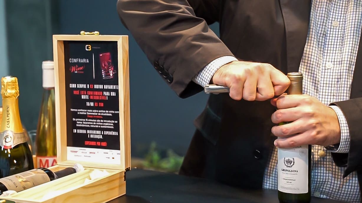 Pensando em como permitir que o público acompanhasse a degustação e pudessem bater papo com os sommeliers, o clube e o Experience Lounge prepararam uma surpresa enviando uma caixa personalizada, de madeira, com os vinhos que foram apresentados durante a live. Assim, os convidados que confirmaram a presença puderam sentir de forma real o que os sommeliers explicavam sobre os vinhos que estavam sendo degustados e todos ficaram muito encantados.