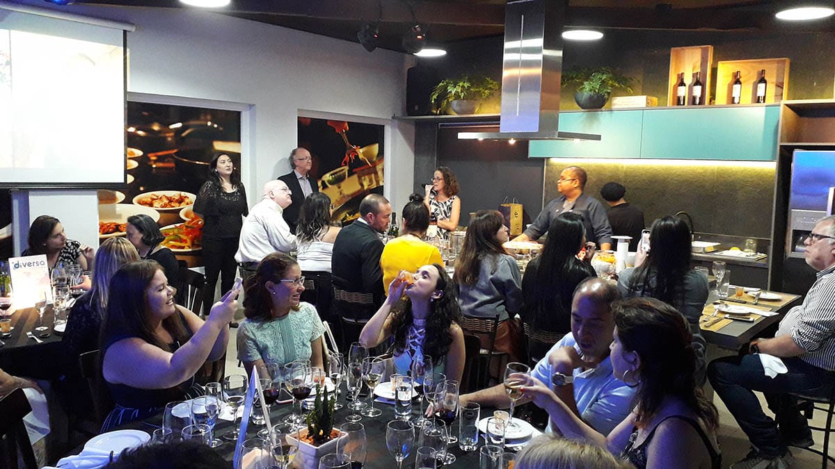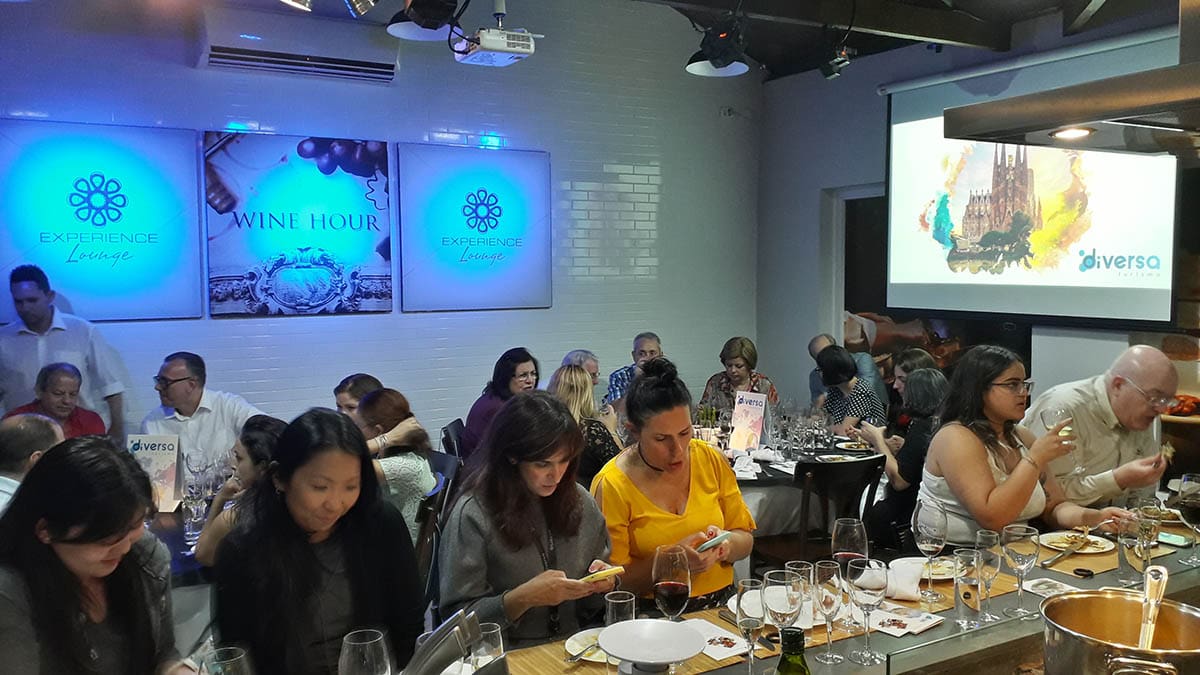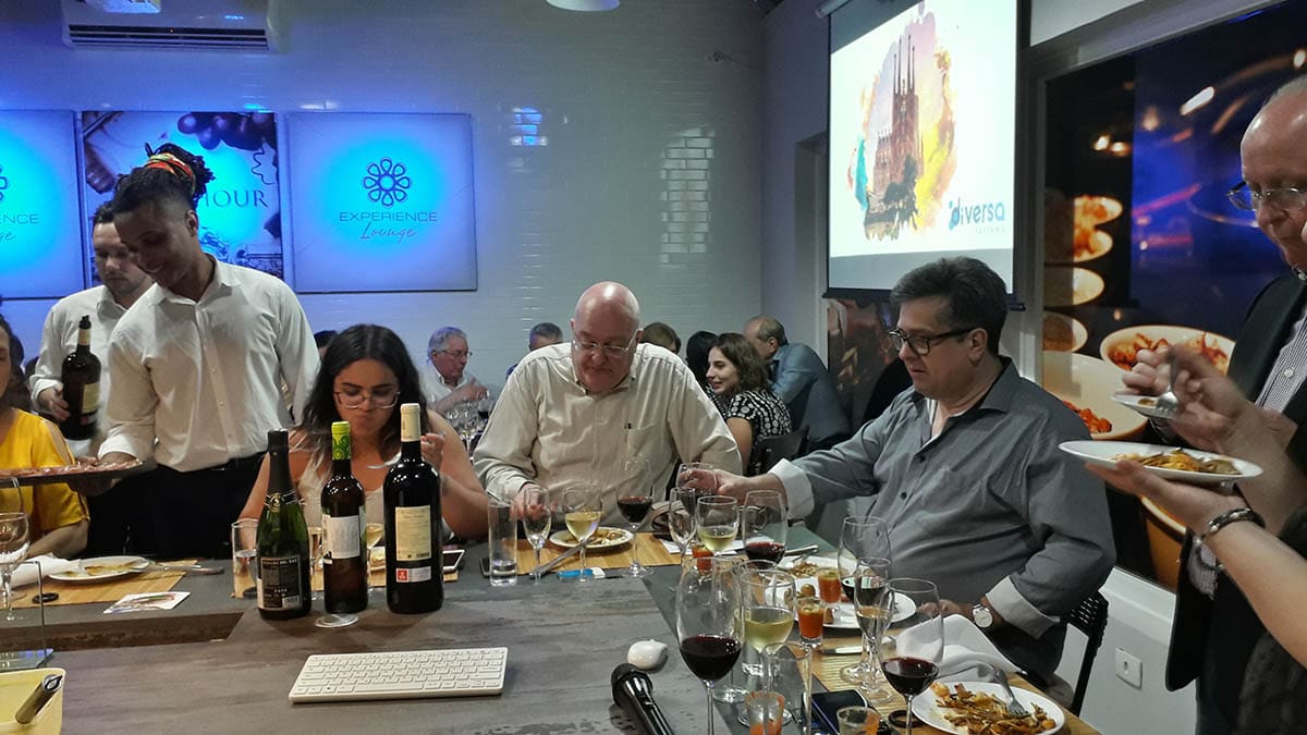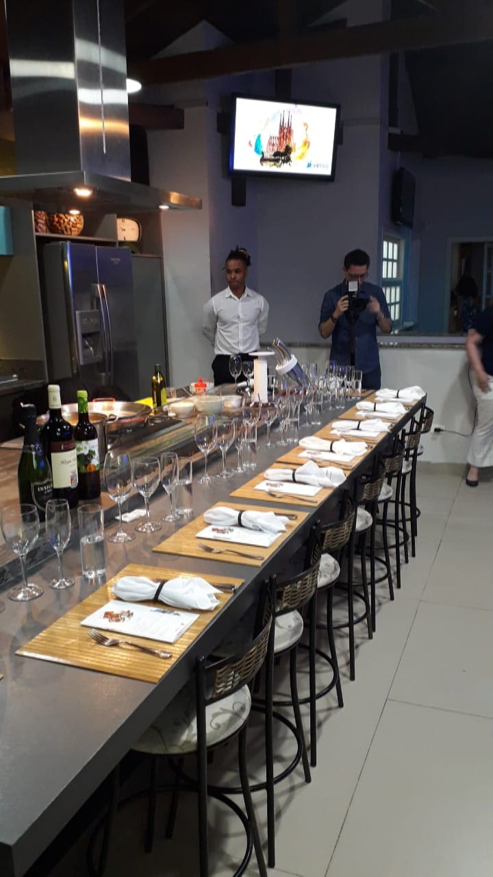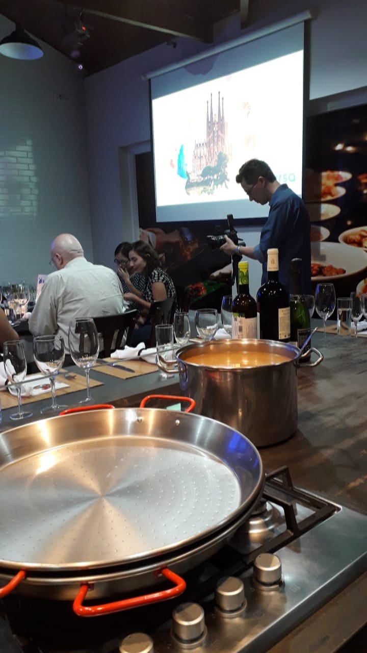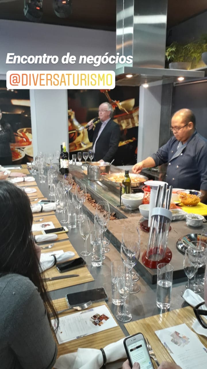 Em um evento especialmente planejado para pessoas apaixonadas por vinhos e gastronomia, o diretor da Diversa Turismo, James Giacomini, iniciou sua apresentação enquanto o Chef Fabrizio preparava uma deliciosa Paella.