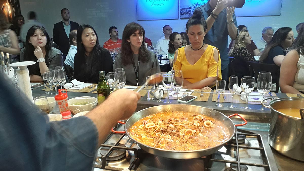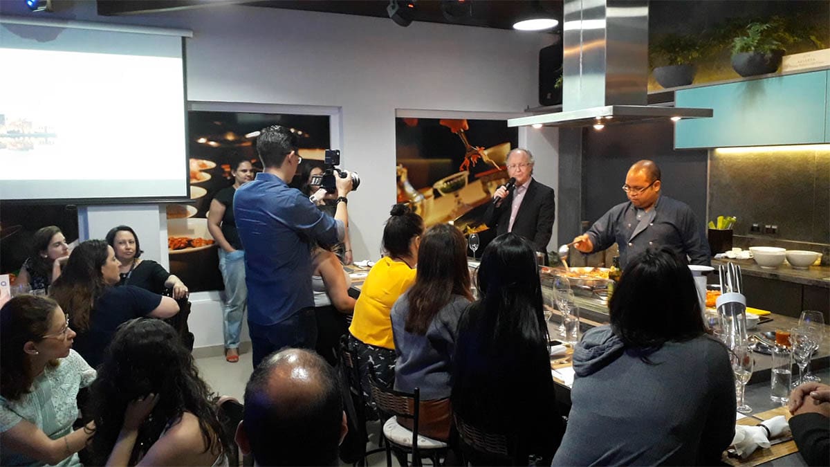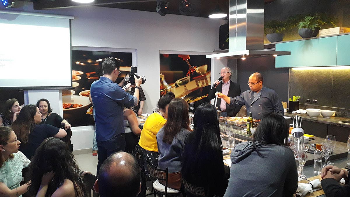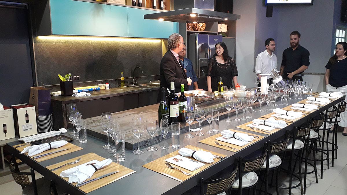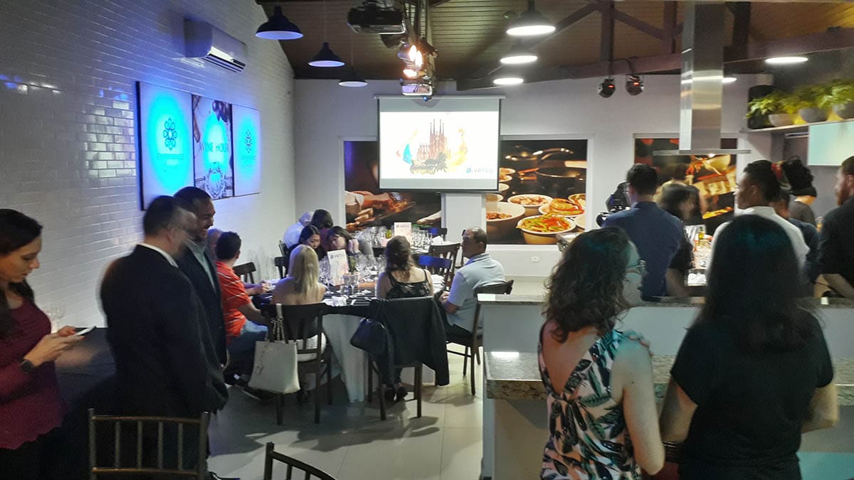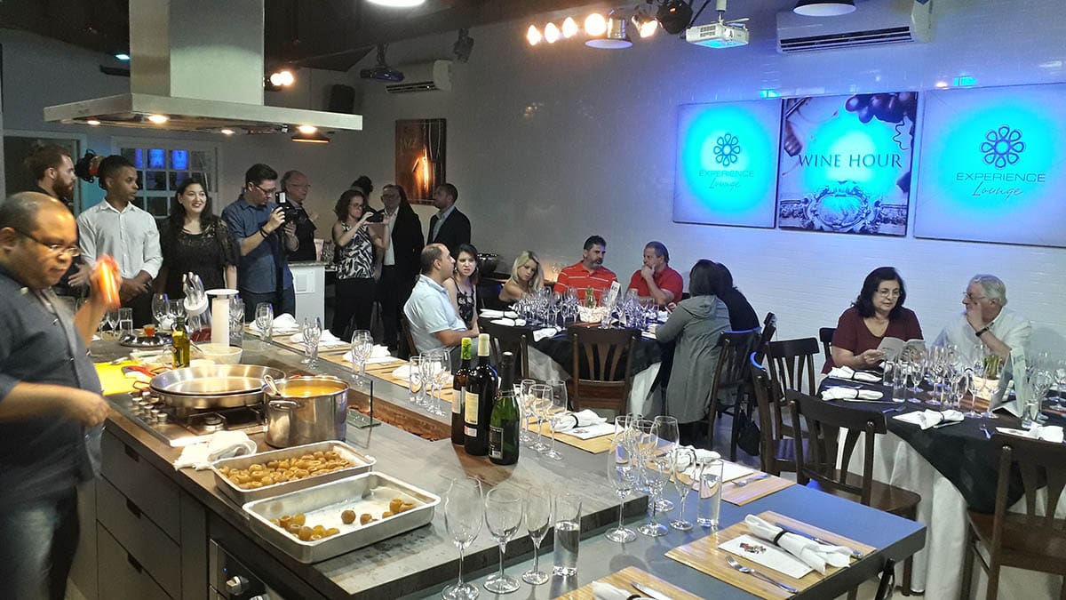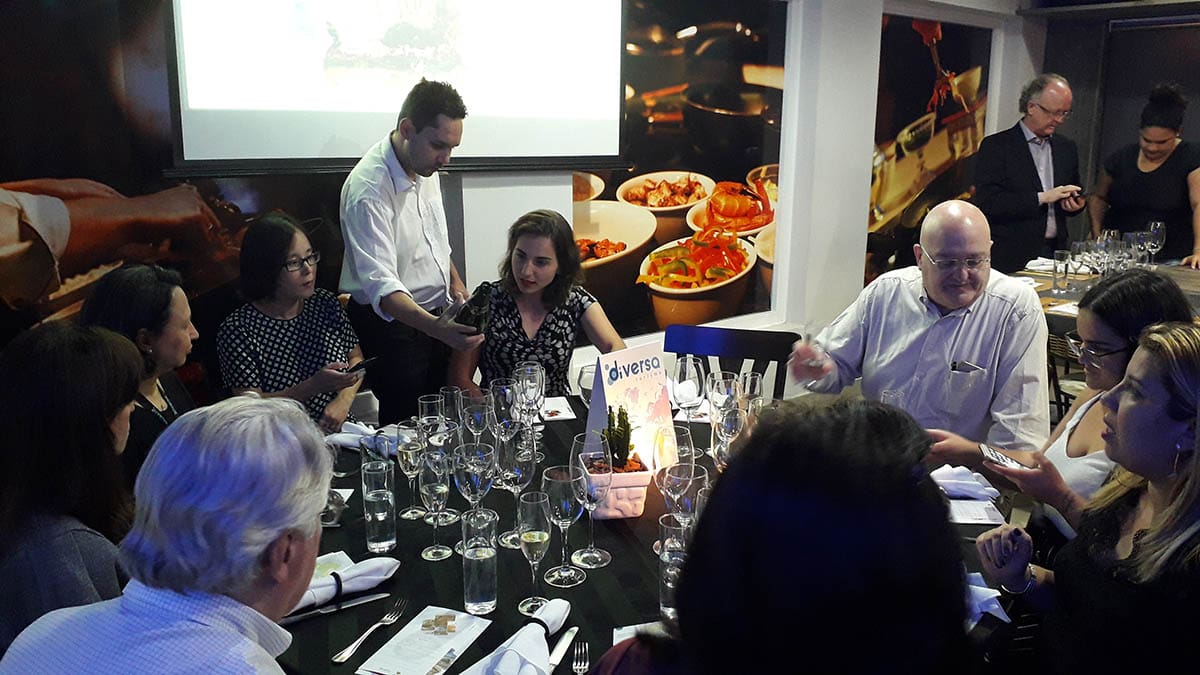 Em um evento especialmente planejado para pessoas apaixonadas por vinhos e gastronomia, o diretor da Diversa Turismo, James Giacomini, iniciou sua apresentação enquanto o Chef Fabrizio preparava uma deliciosa Paella.