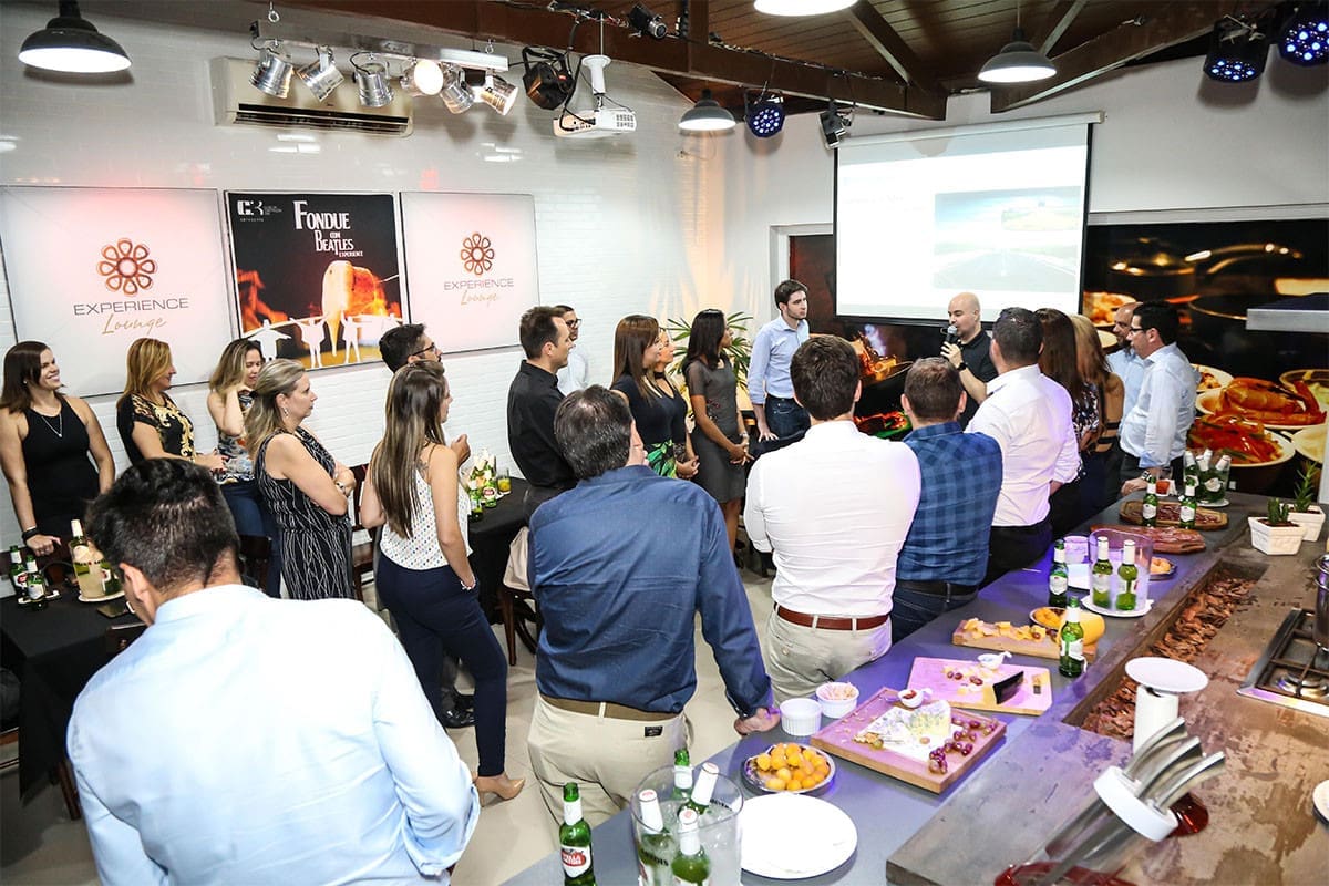 A equipe foi recebida no foyer receptivo do Experience Lounge, para aguardar a chegada do diretor, munido de sua apresentação e performance empolgante.