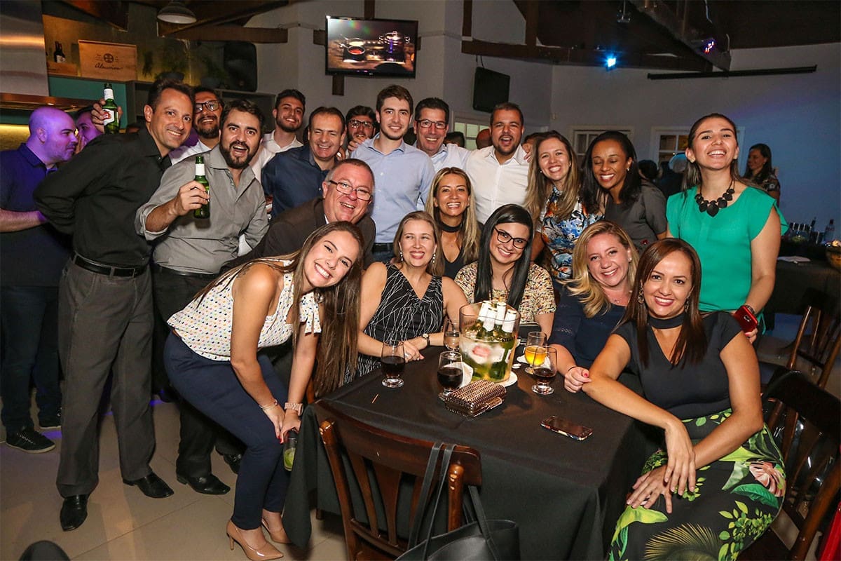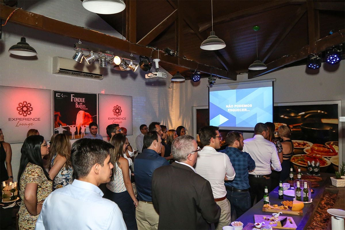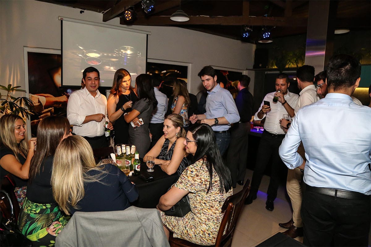 No espaço gourmet, aguardava ansiosamente por ele, nossa equipe, que serviu um menu desenvolvido para ocasião, além de bebidas que qualquer Happy Hour merece, cerveja e caipirinha. Às 20:00 pontual e estrategicamente, quando todos estavam ambientados e principalmente, alimentados e munidos de suas bebidas, entrou em ação o Diretor Comercial, e apresentou os impressionantes números de 2017 e principalmente o desafio de superá-los em 2018.