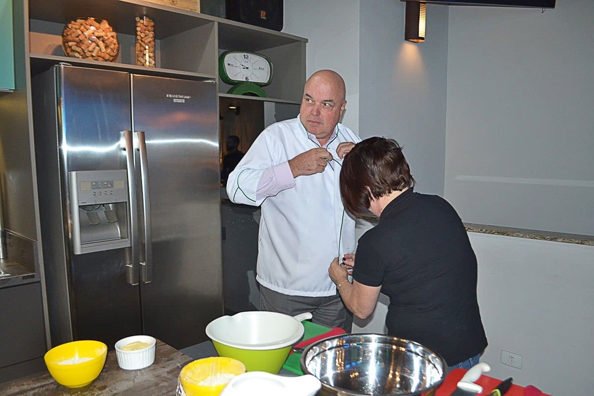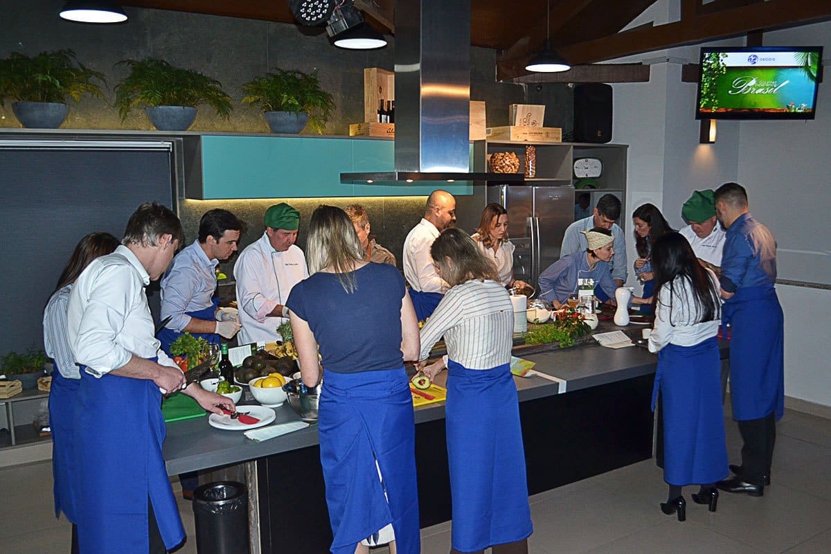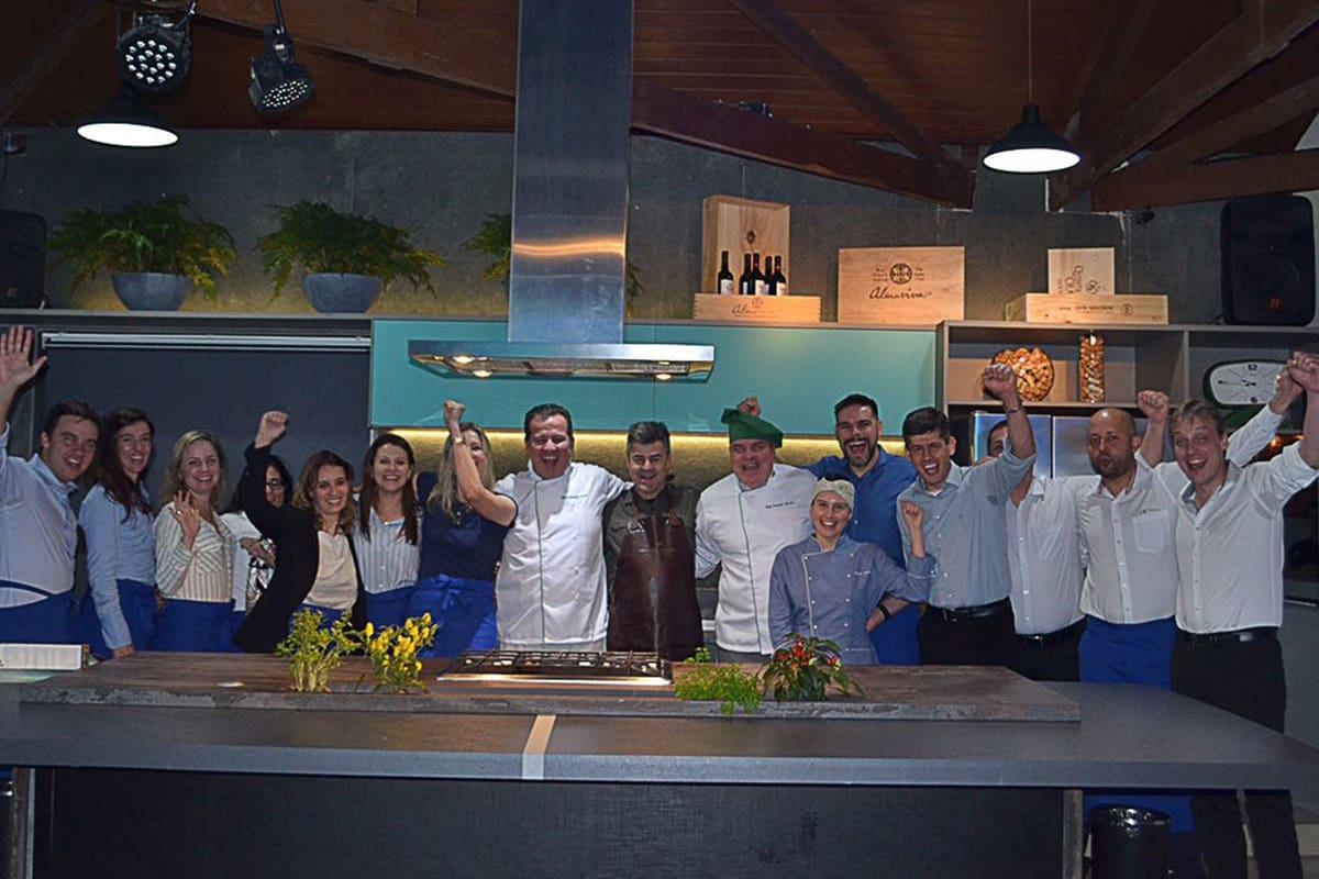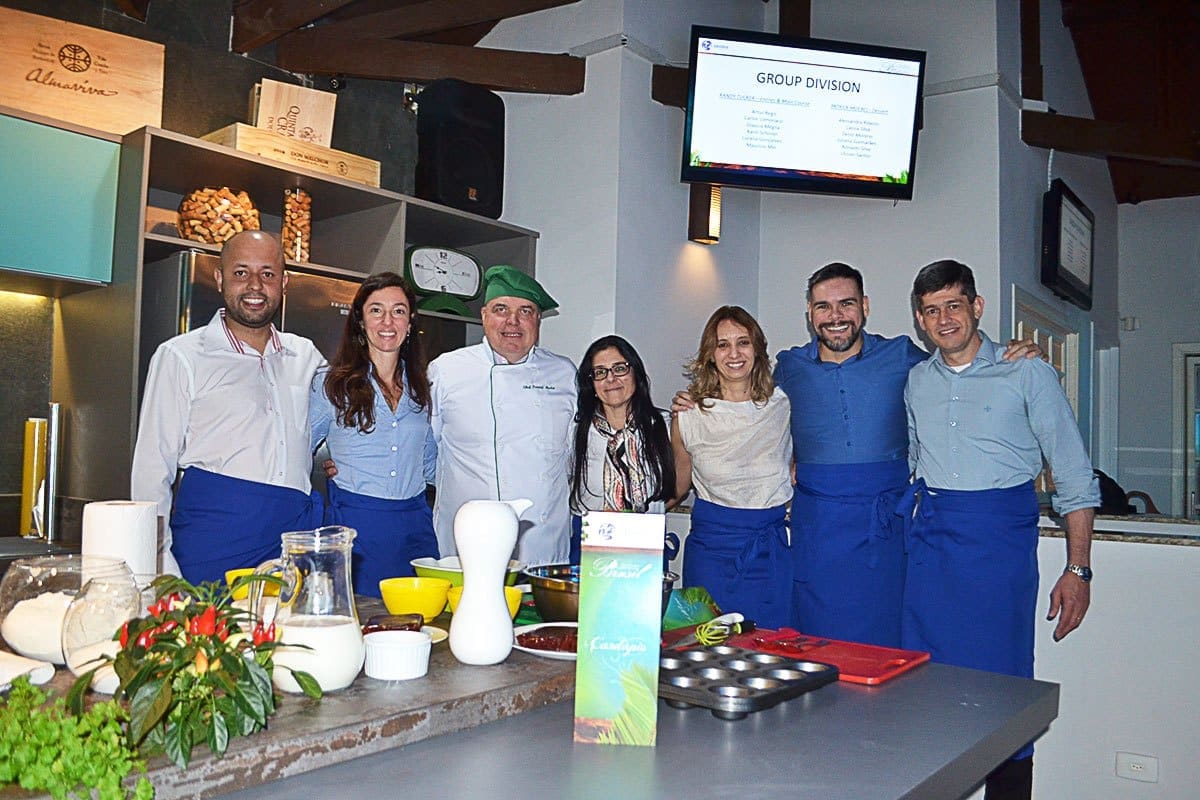 Os participantes foram divididos em dois grupos, cada um deles liderado por um dos principais executivos da empresa, que ganhou um dólmã personalizado, enquanto os demais participantes receberam um avental na cor da empresa.