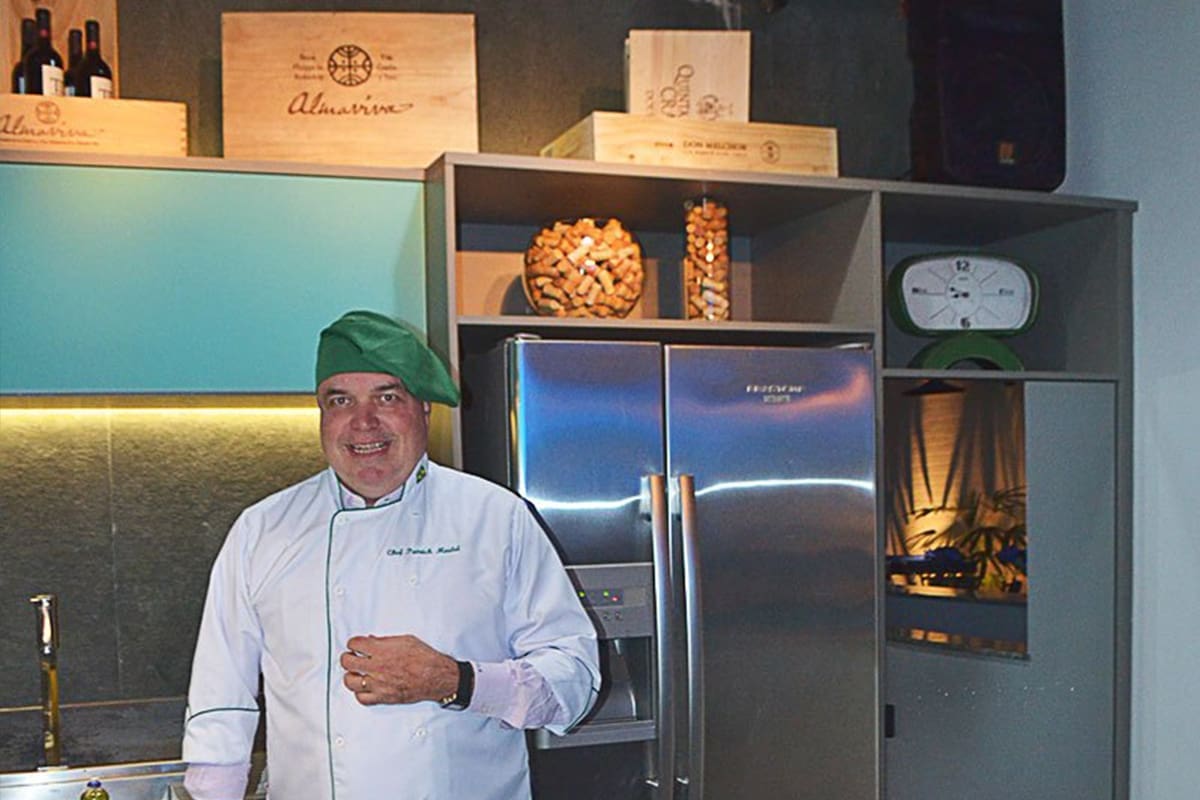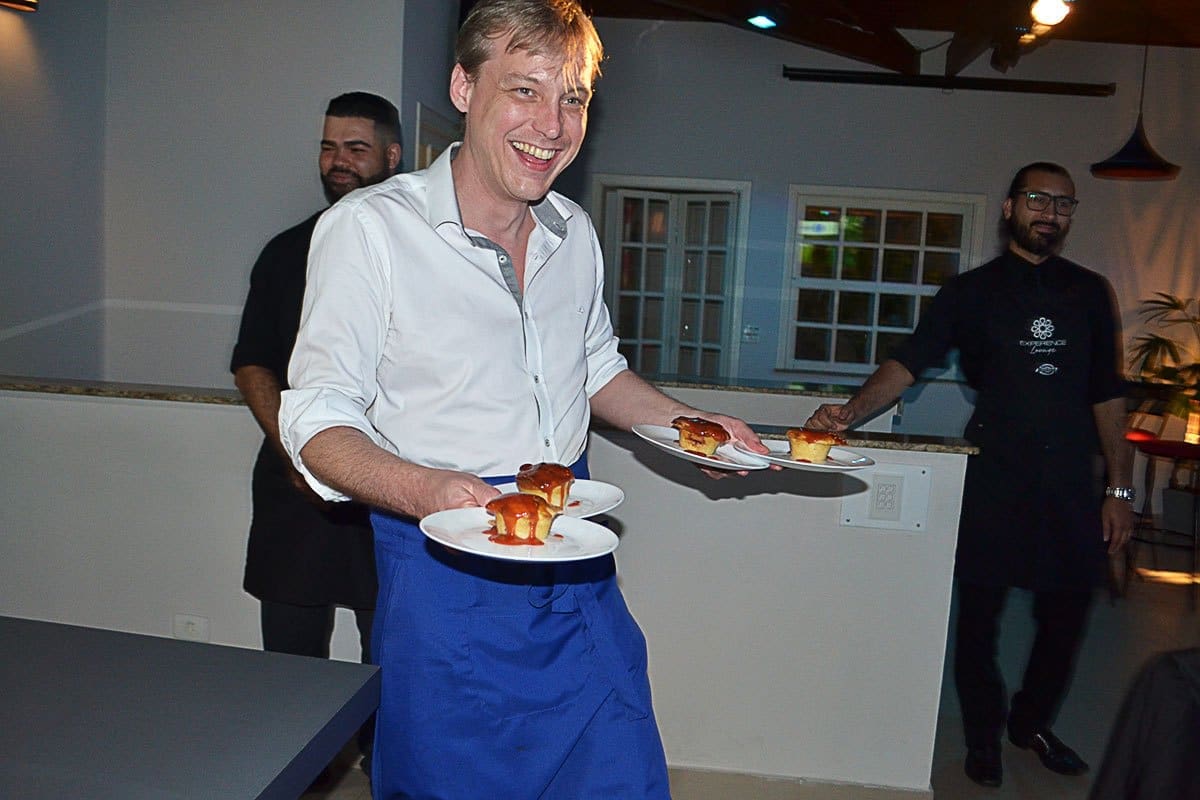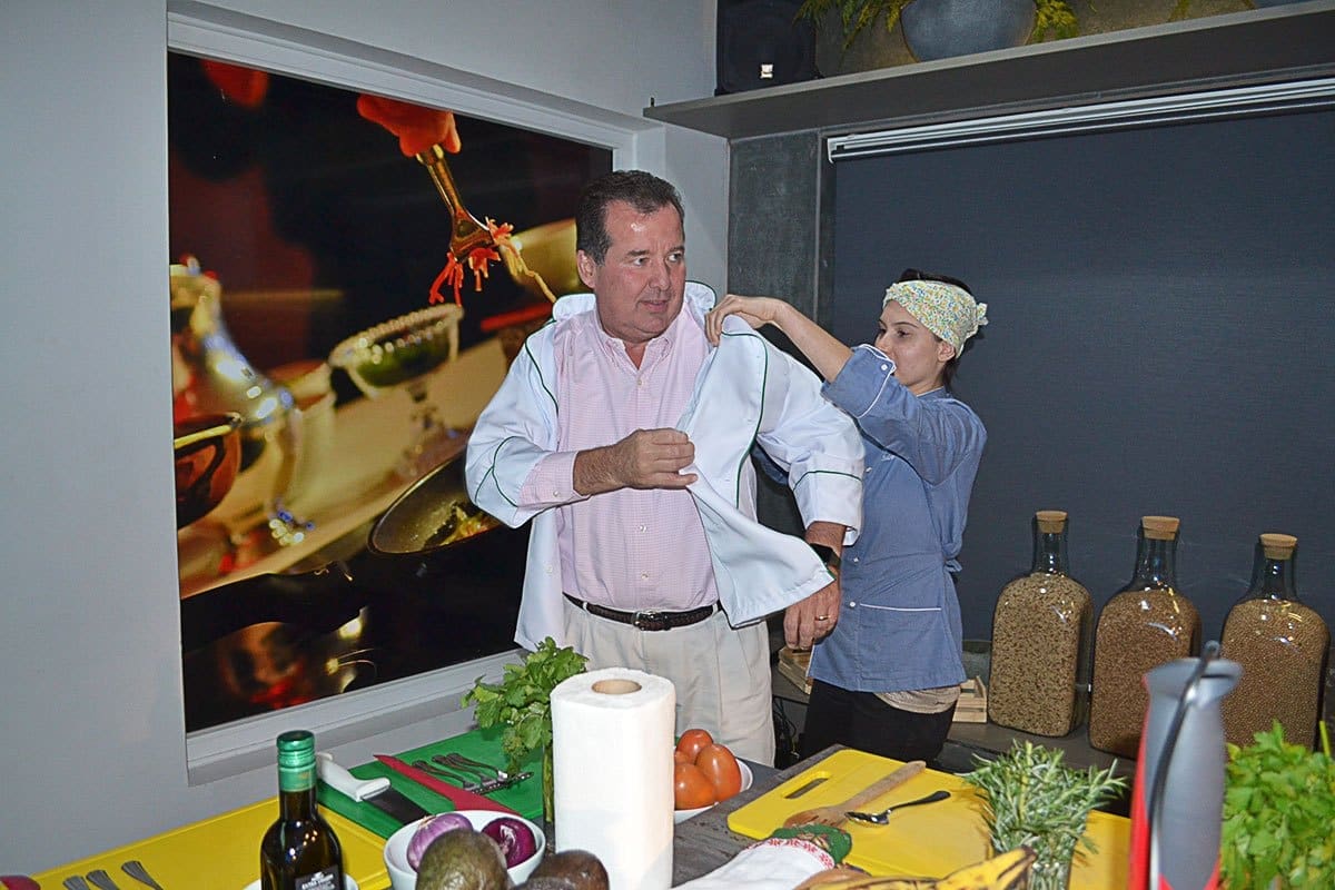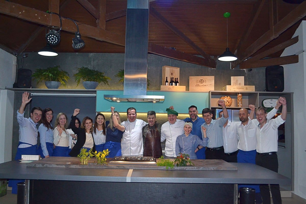 Os participantes foram divididos em dois grupos, cada um deles liderado por um dos principais executivos da empresa, que ganhou um dólmã personalizado, enquanto os demais participantes receberam um avental na cor da empresa.