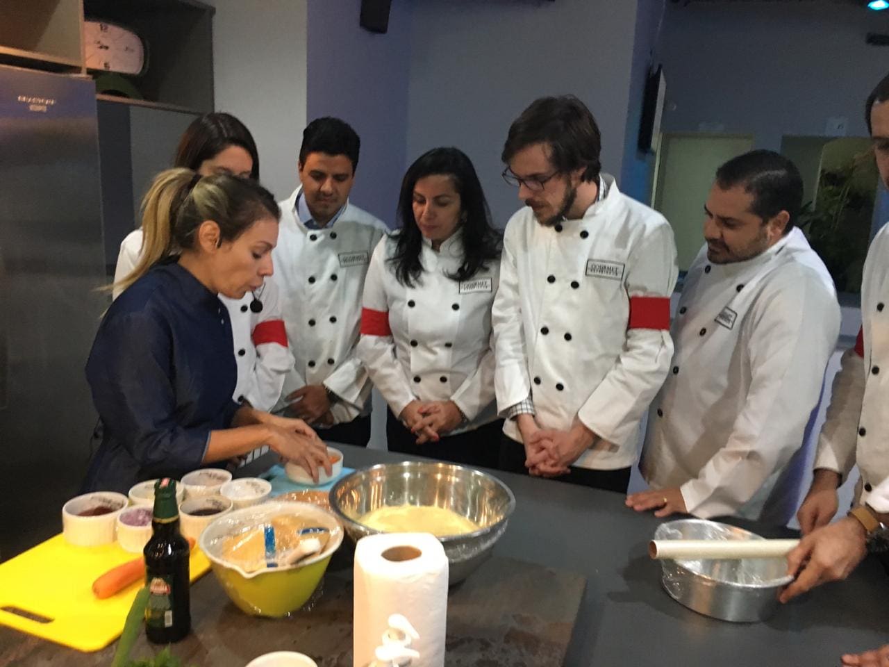 Neste evento, a Indra proporcionou uma divertida atividade gastronômica de team building, onde todos os convidados colocaram a mão na massa e se revezaram nas atividades da cozinha com a missão de preparar um jantar completo, incluindo entrada, prato principal e sobremesa.