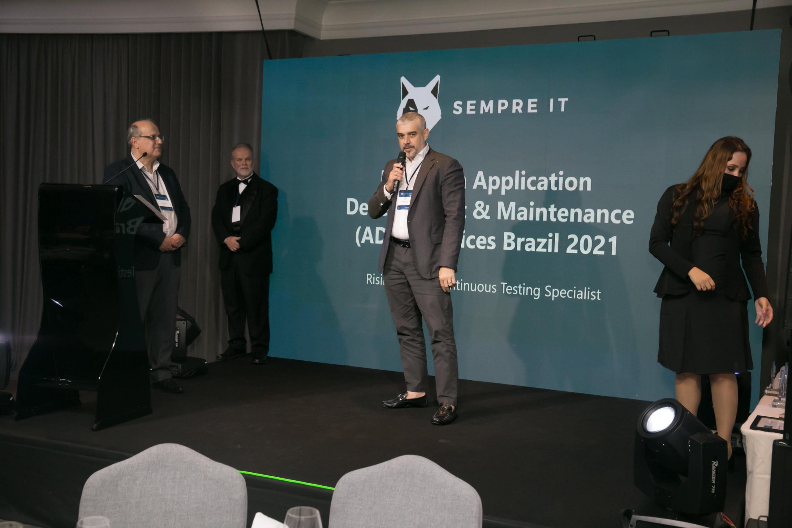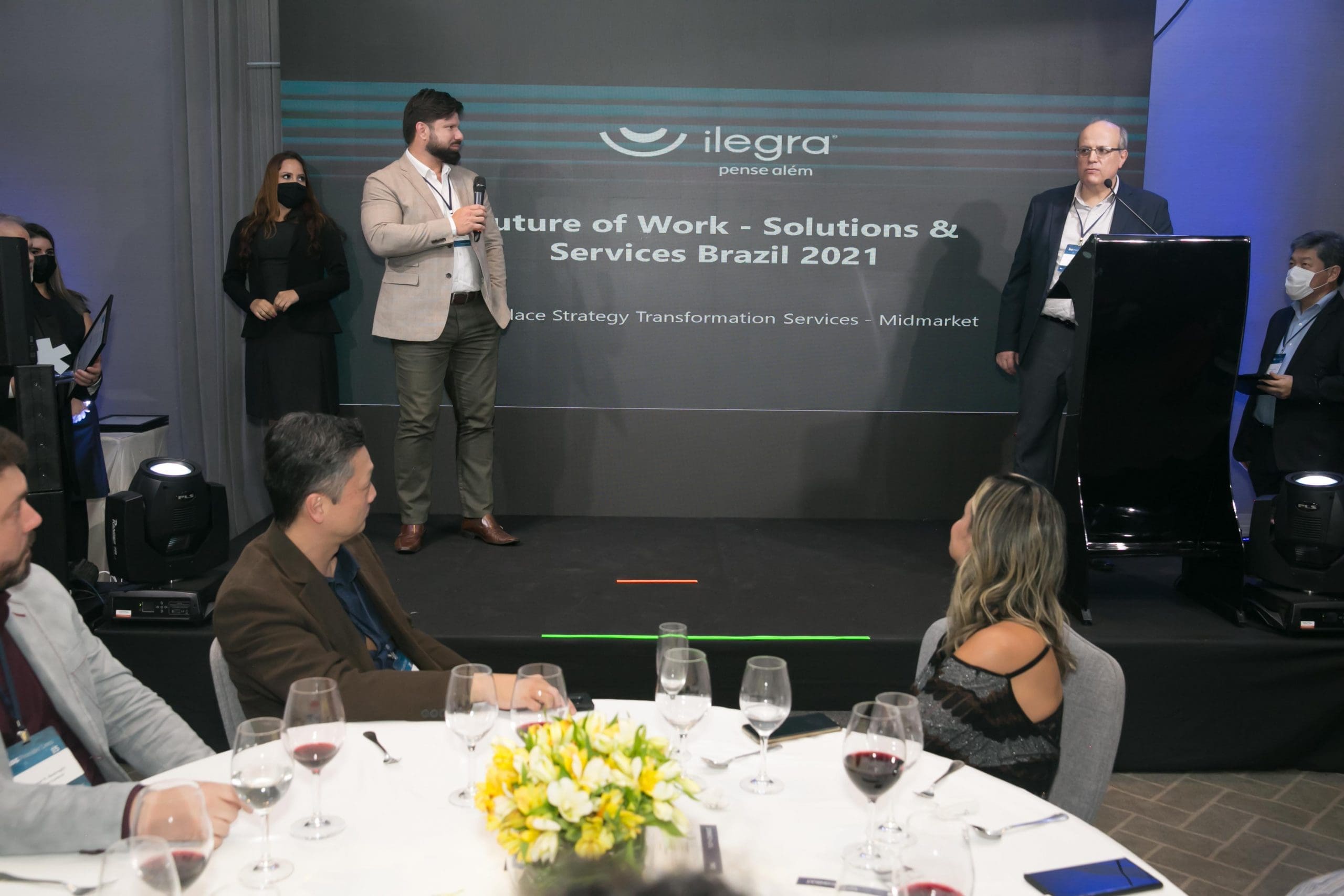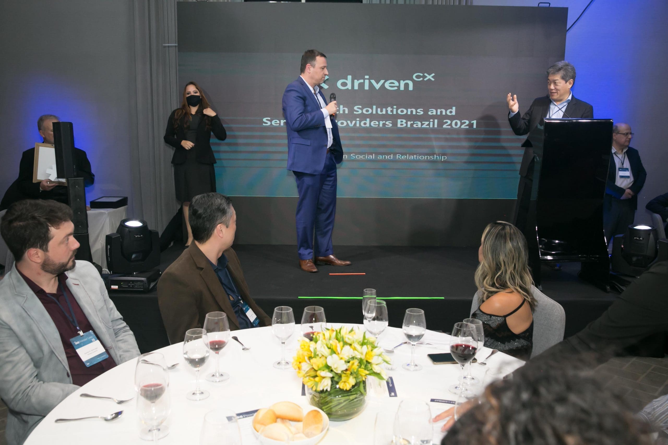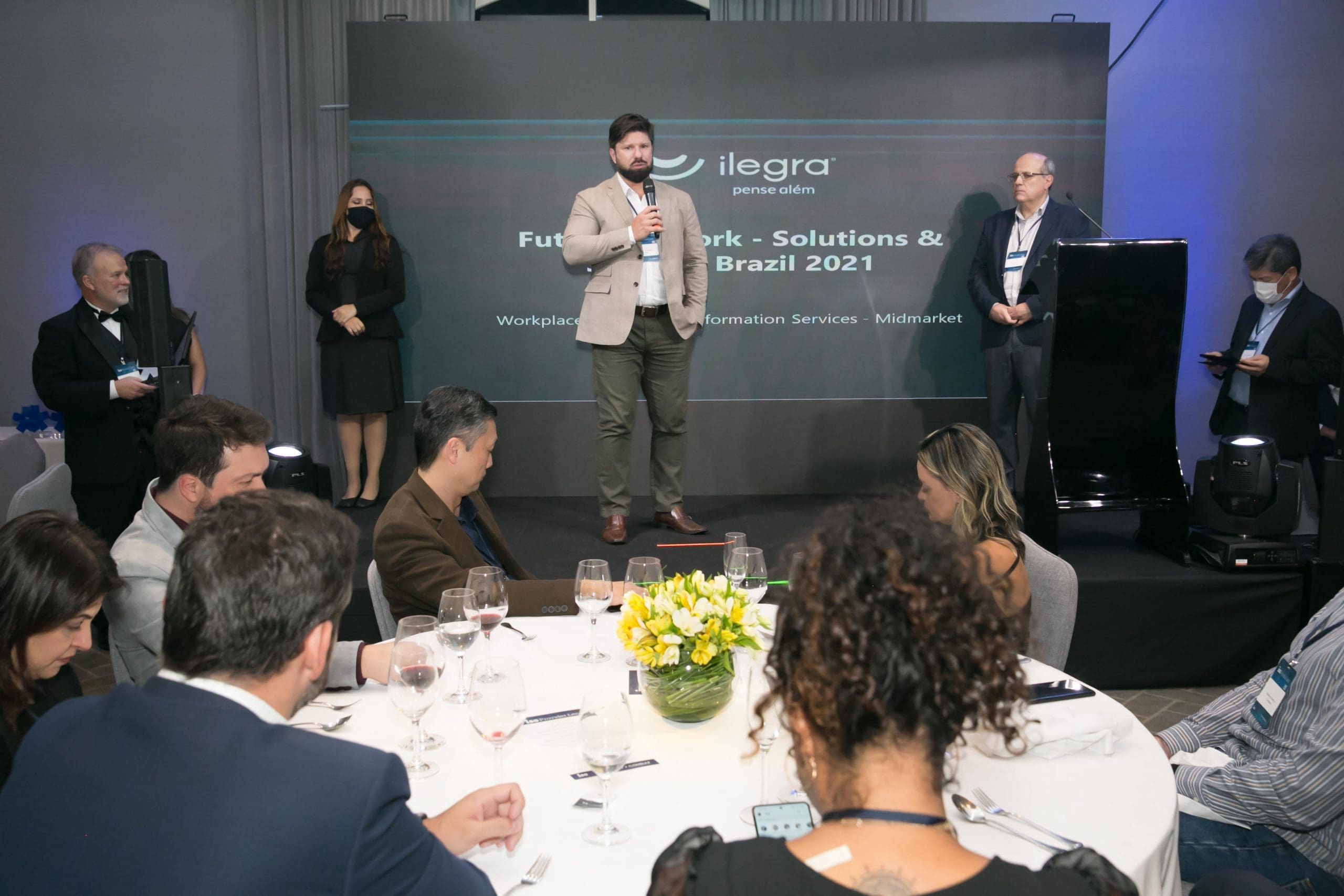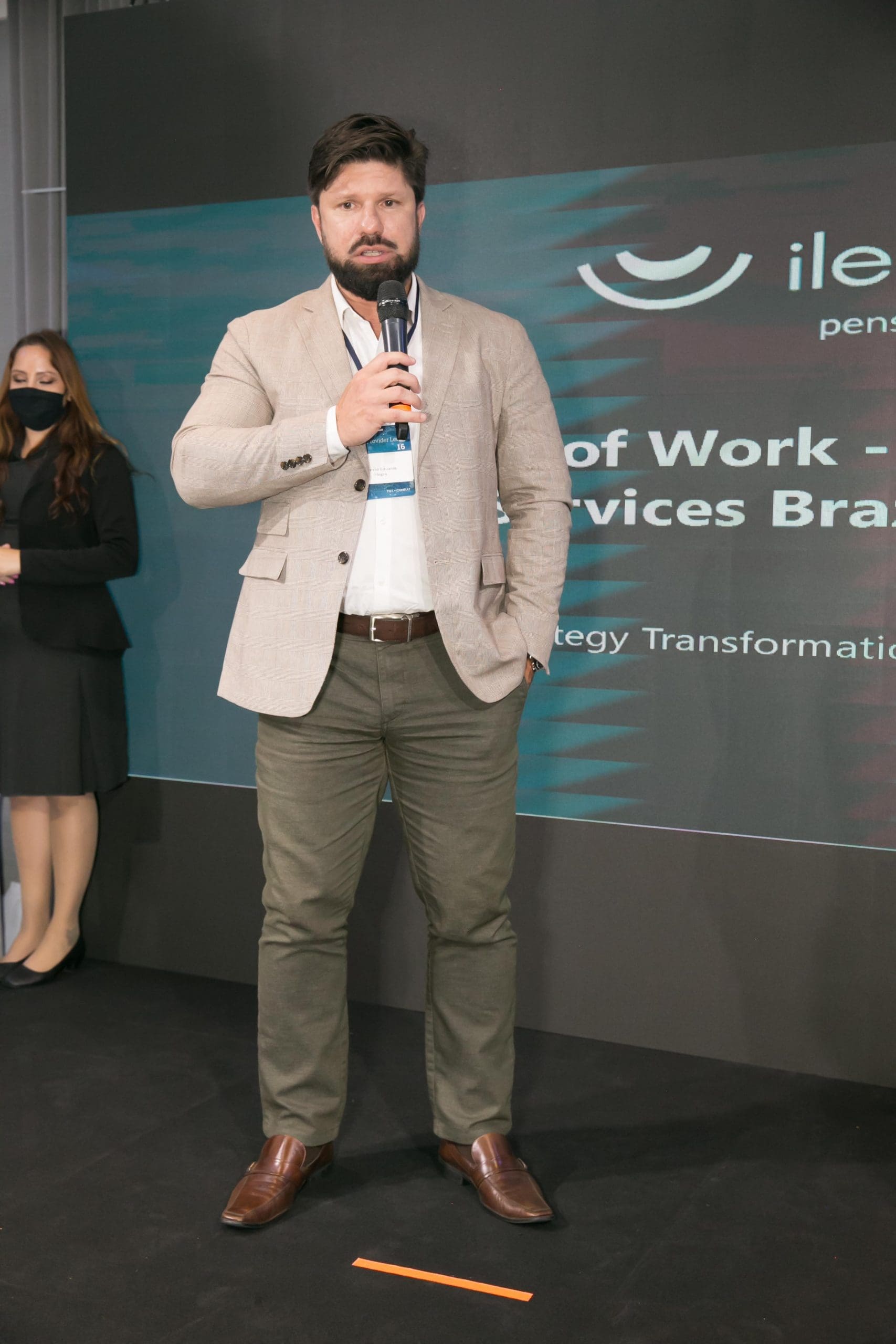 Logo após todos foram convidados a sentarem em suas mesas para acompanhar a premiação que contou com a condução de Jan Erik Aase – Líder Global da  ISG Provider Lens™ que veio ao Brasil especialmente para o evento e convidou ao palco os representantes das empresas para receberem seus prêmios.