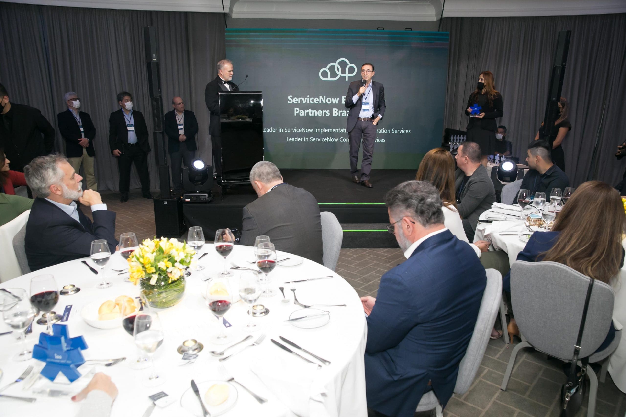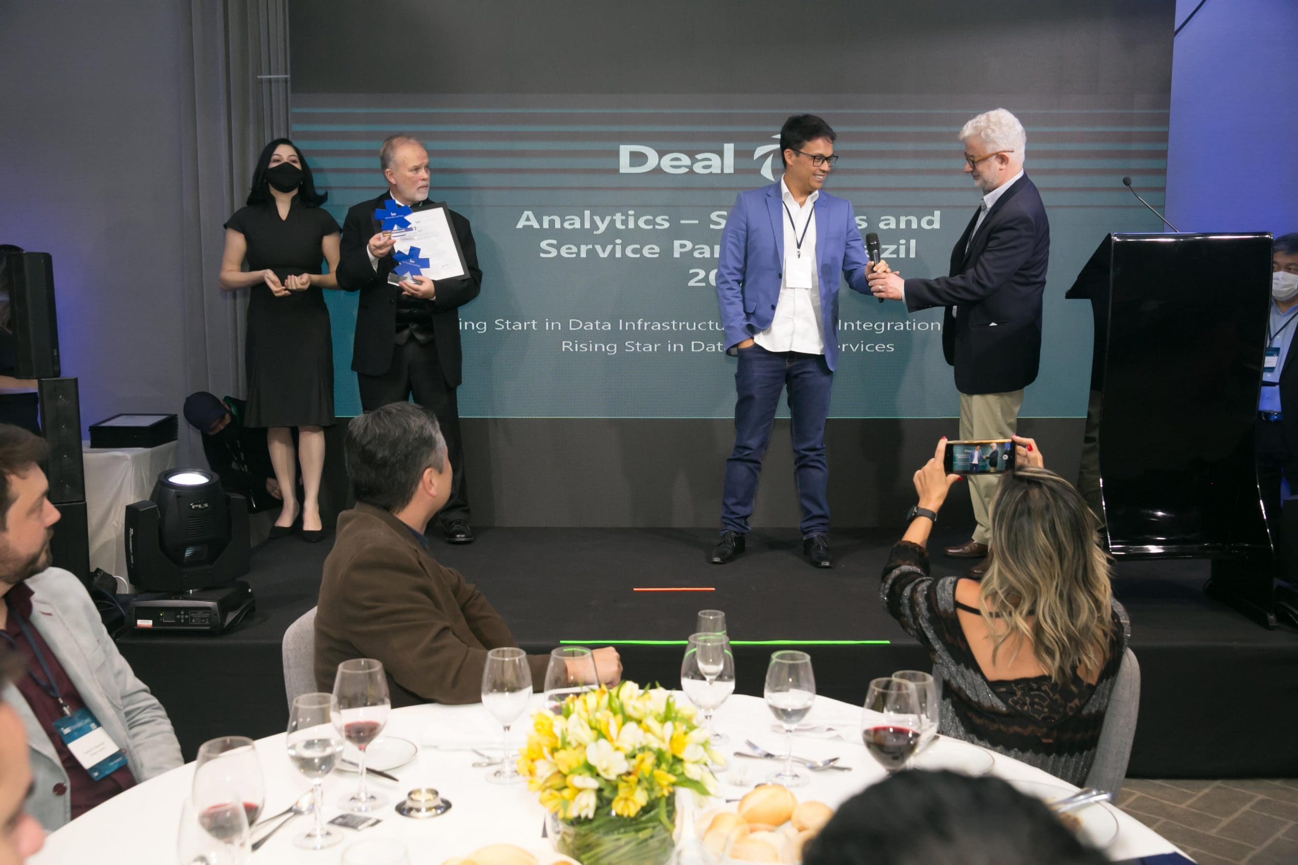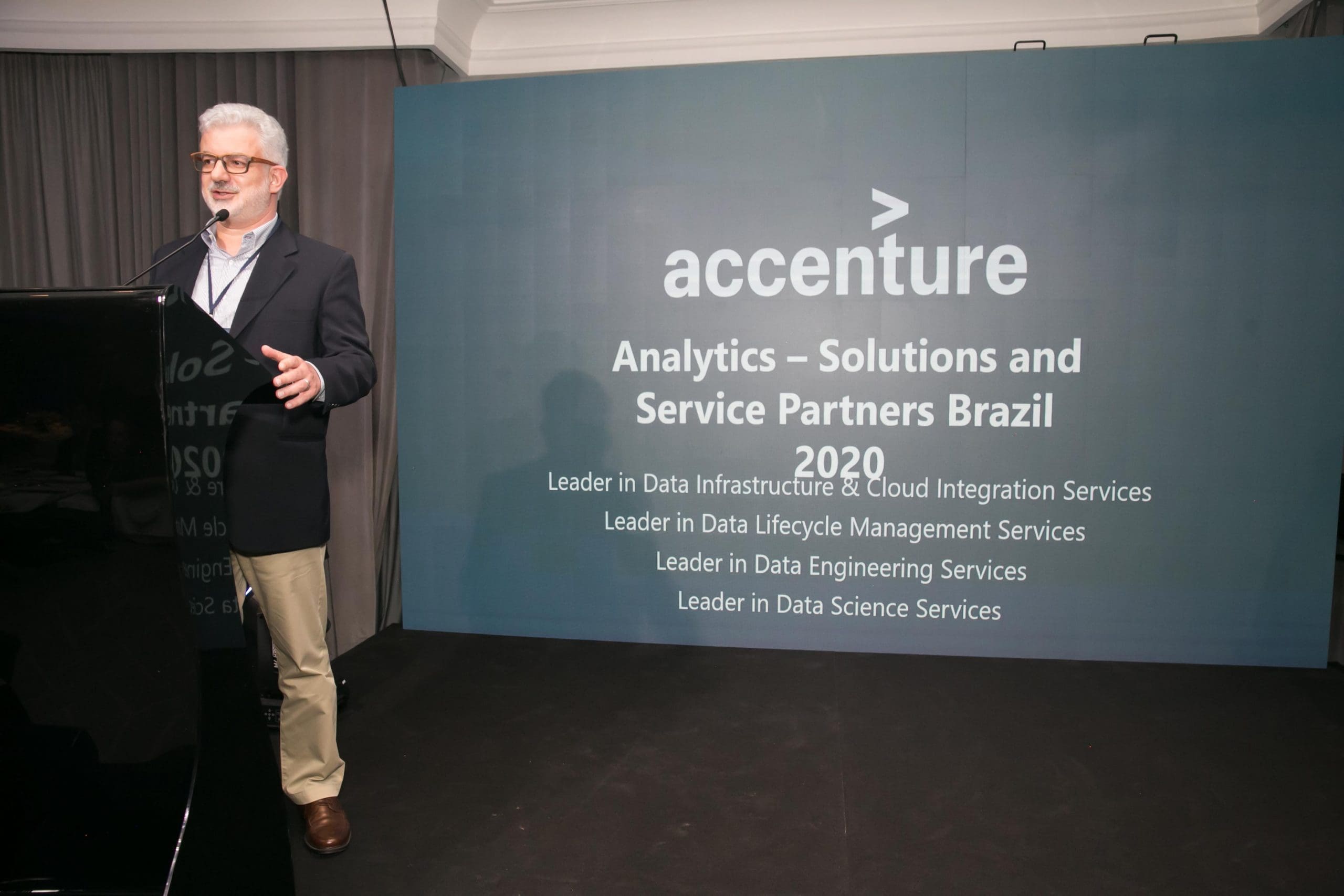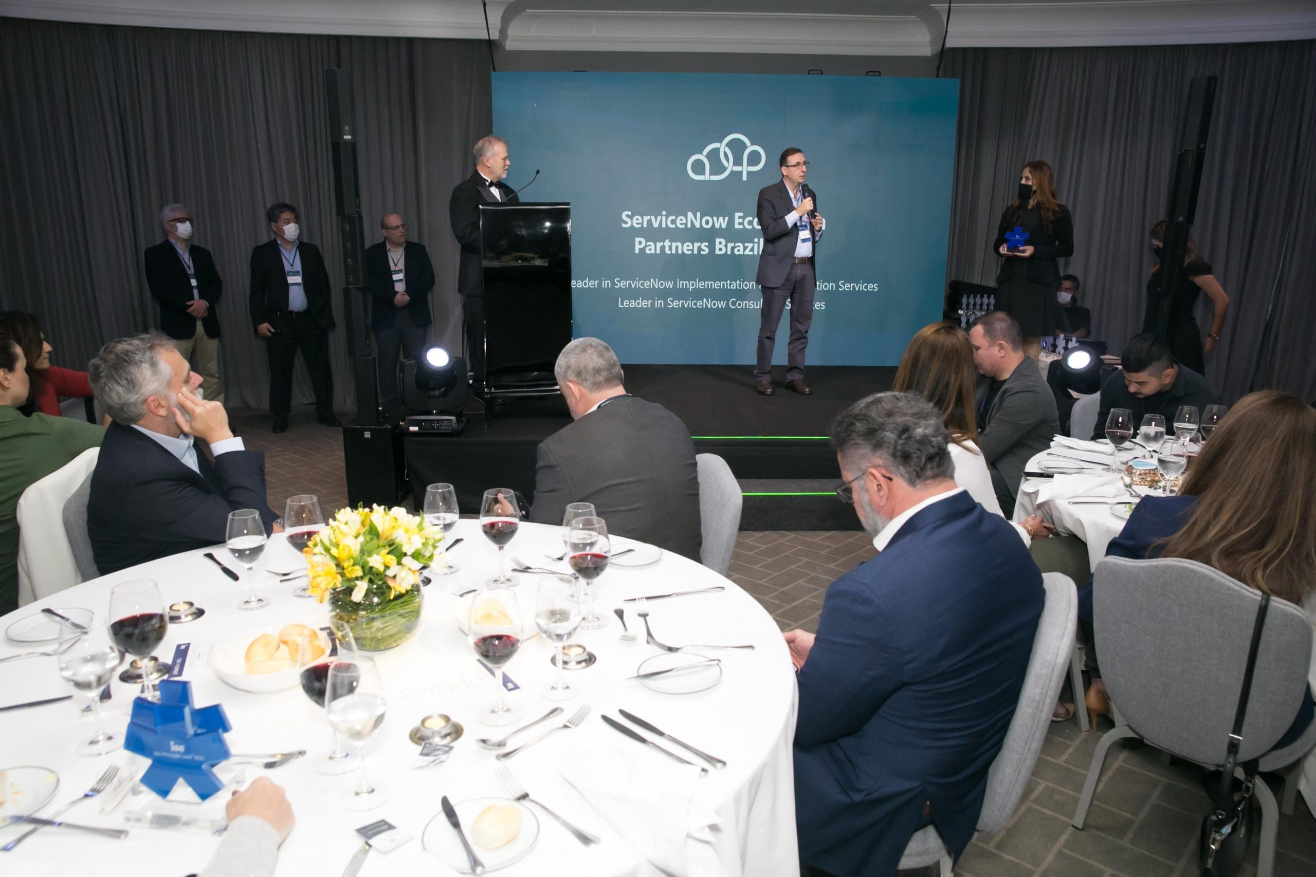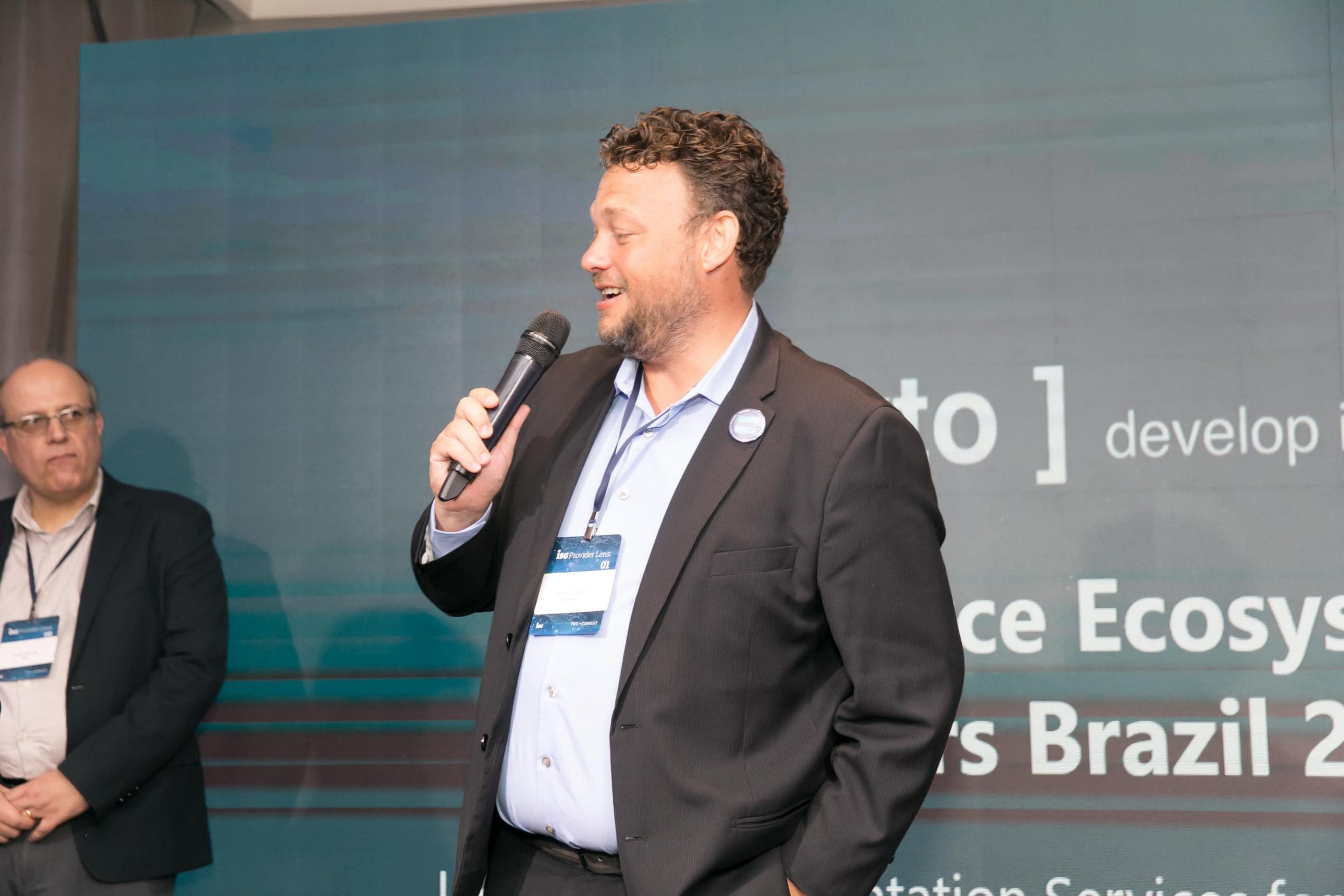 Logo após todos foram convidados a sentarem em suas mesas para acompanhar a premiação que contou com a condução de Jan Erik Aase – Líder Global da  ISG Provider Lens™ que veio ao Brasil especialmente para o evento e convidou ao palco os representantes das empresas para receberem seus prêmios.