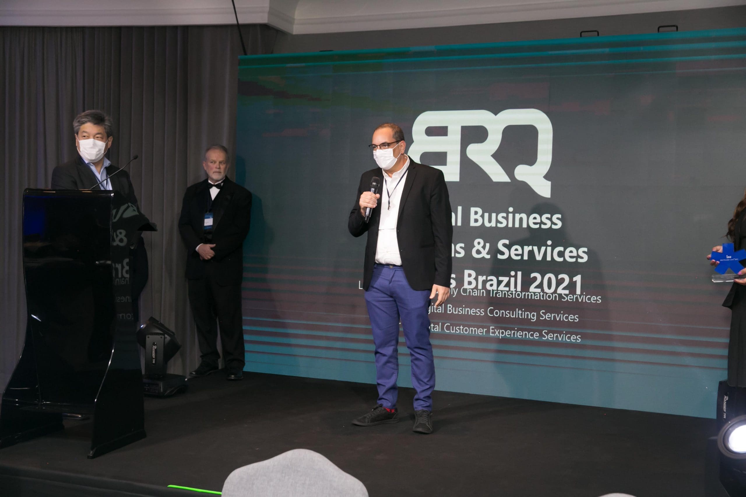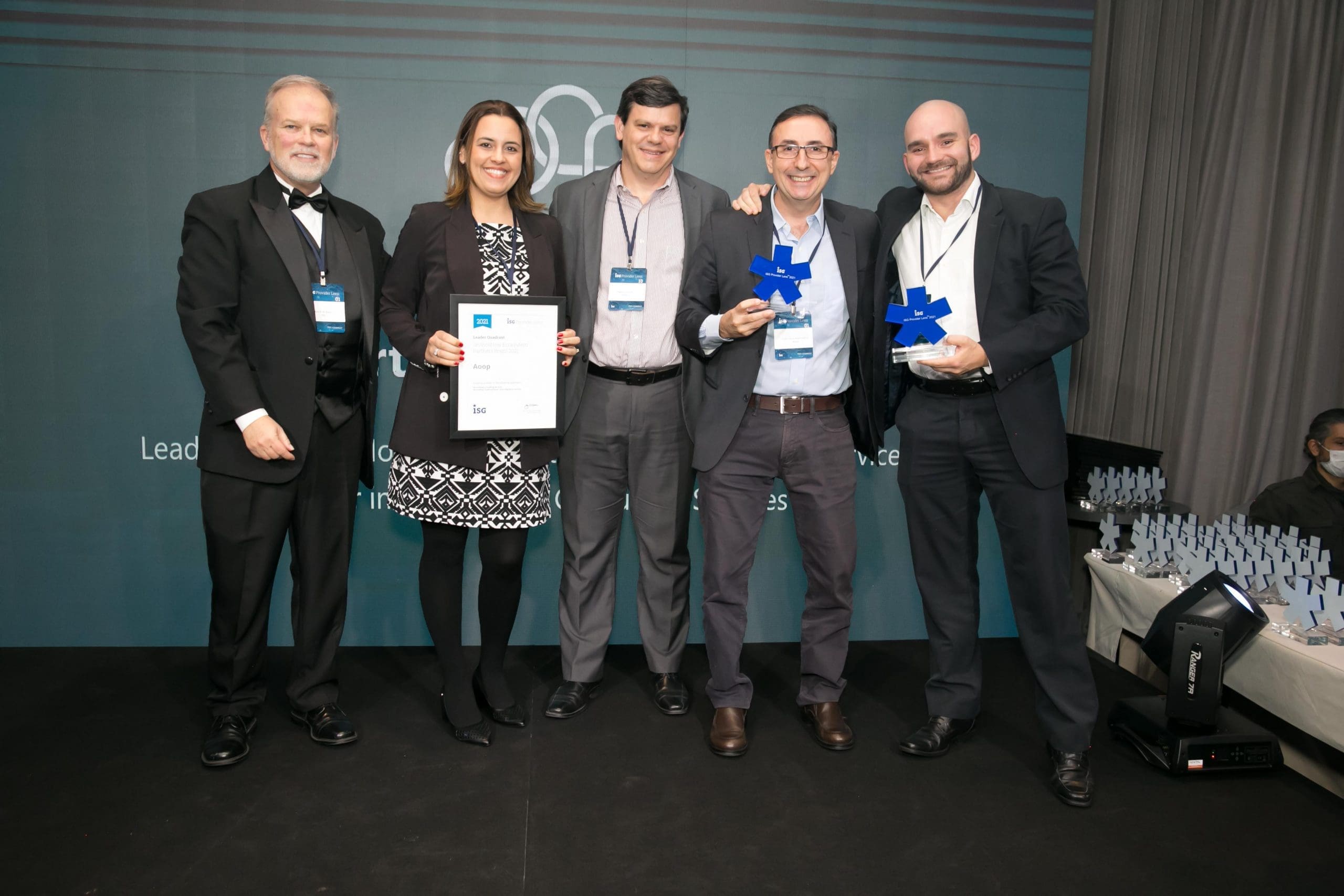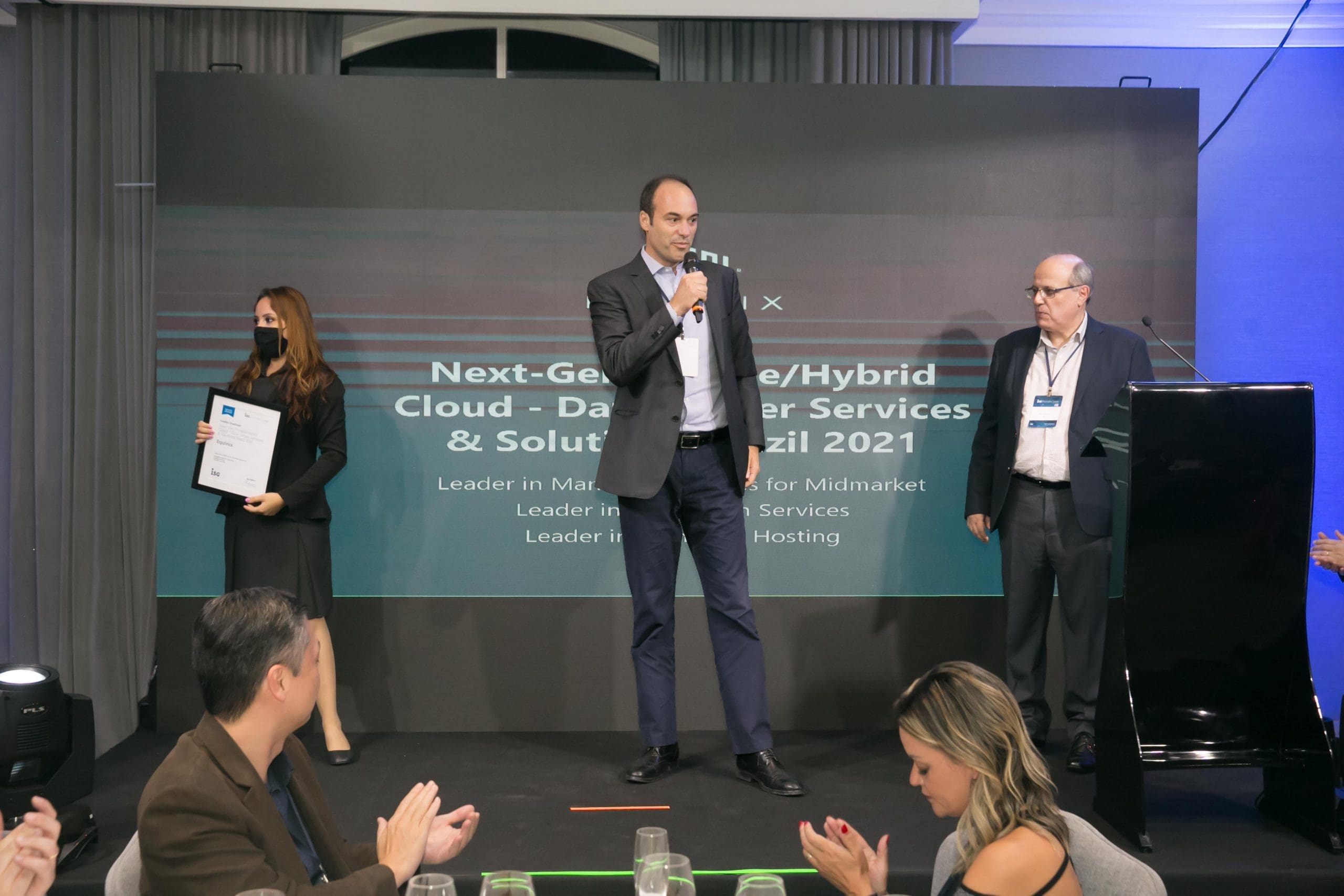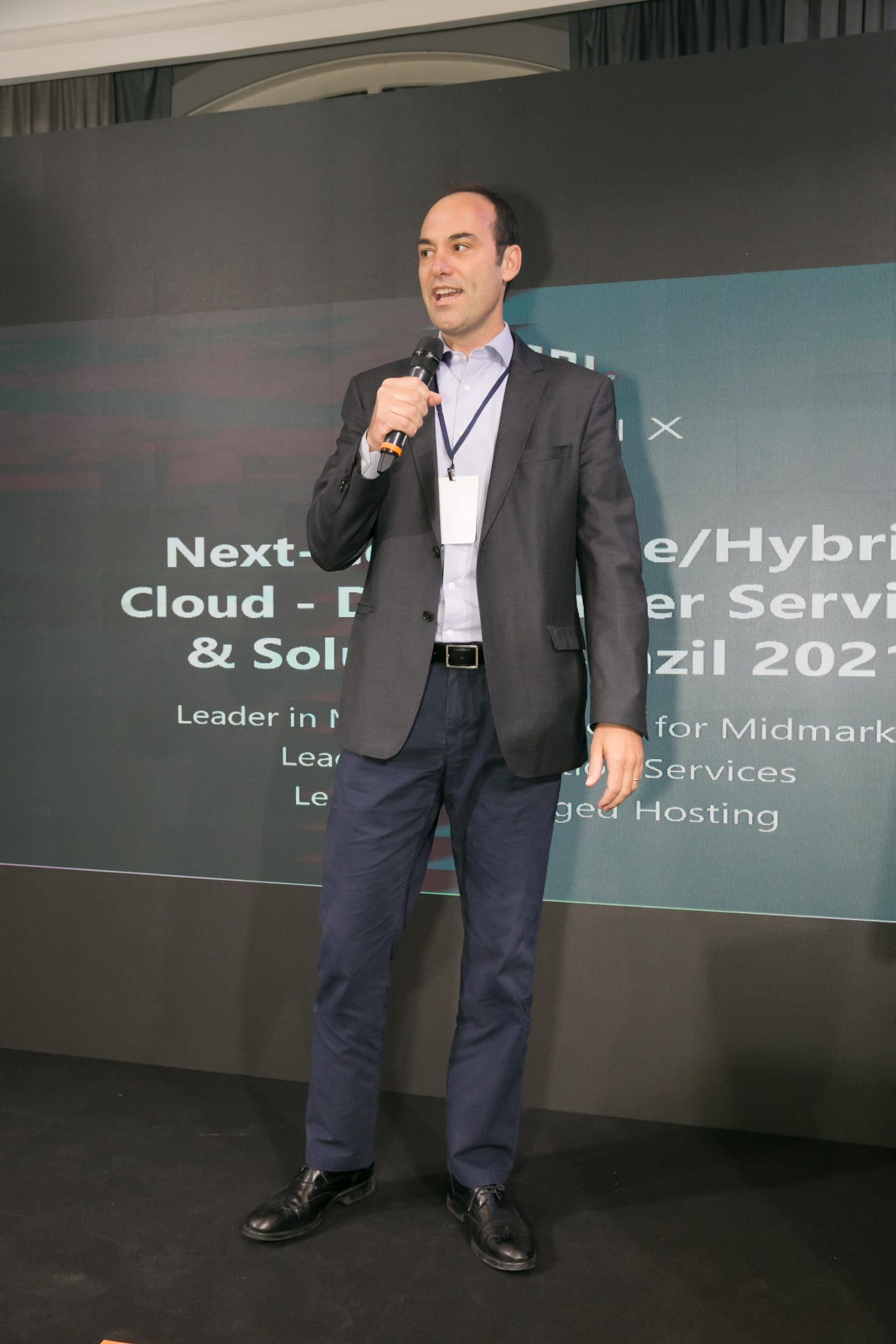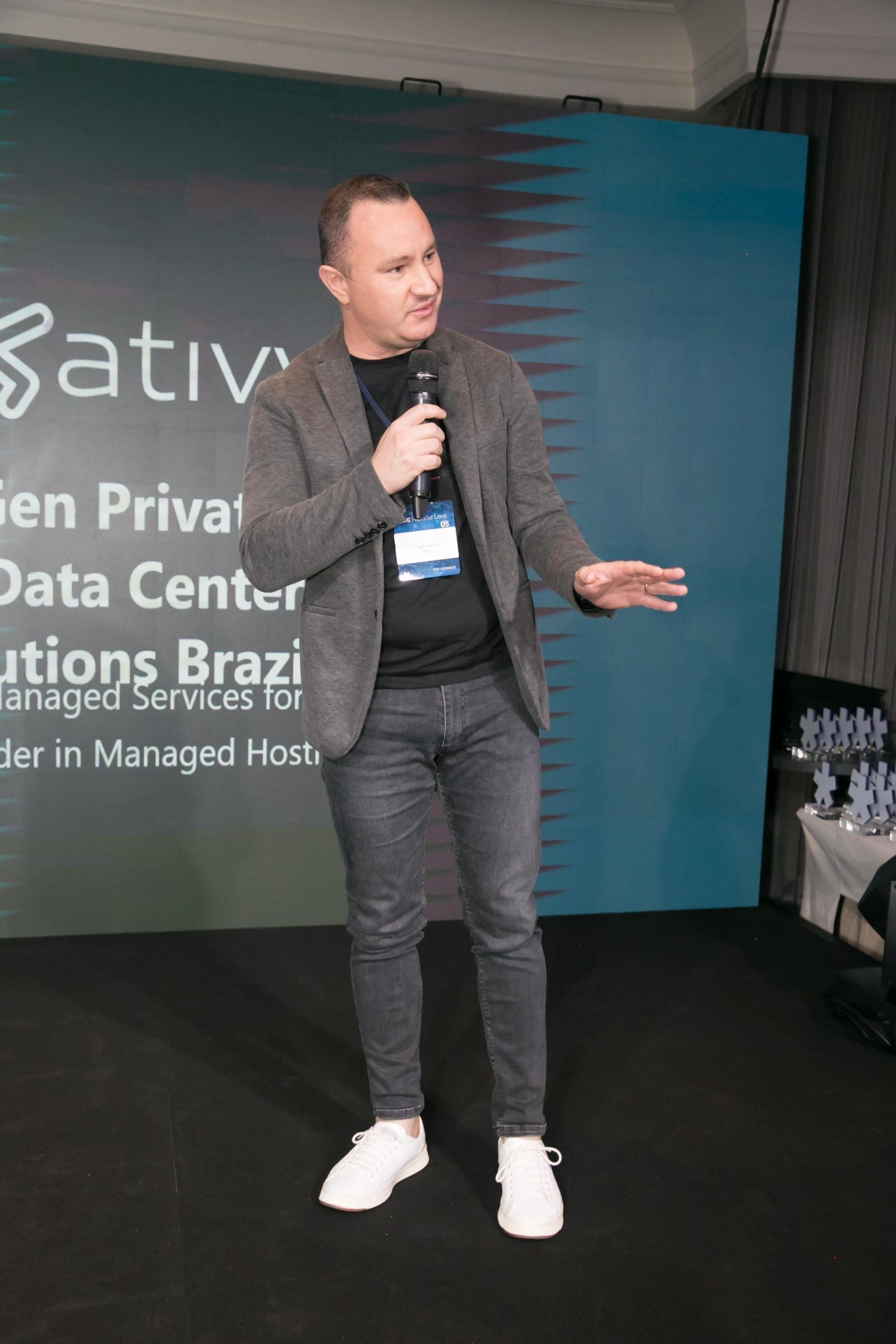 Logo após todos foram convidados a sentarem em suas mesas para acompanhar a premiação que contou com a condução de Jan Erik Aase – Líder Global da  ISG Provider Lens™ que veio ao Brasil especialmente para o evento e convidou ao palco os representantes das empresas para receberem seus prêmios.