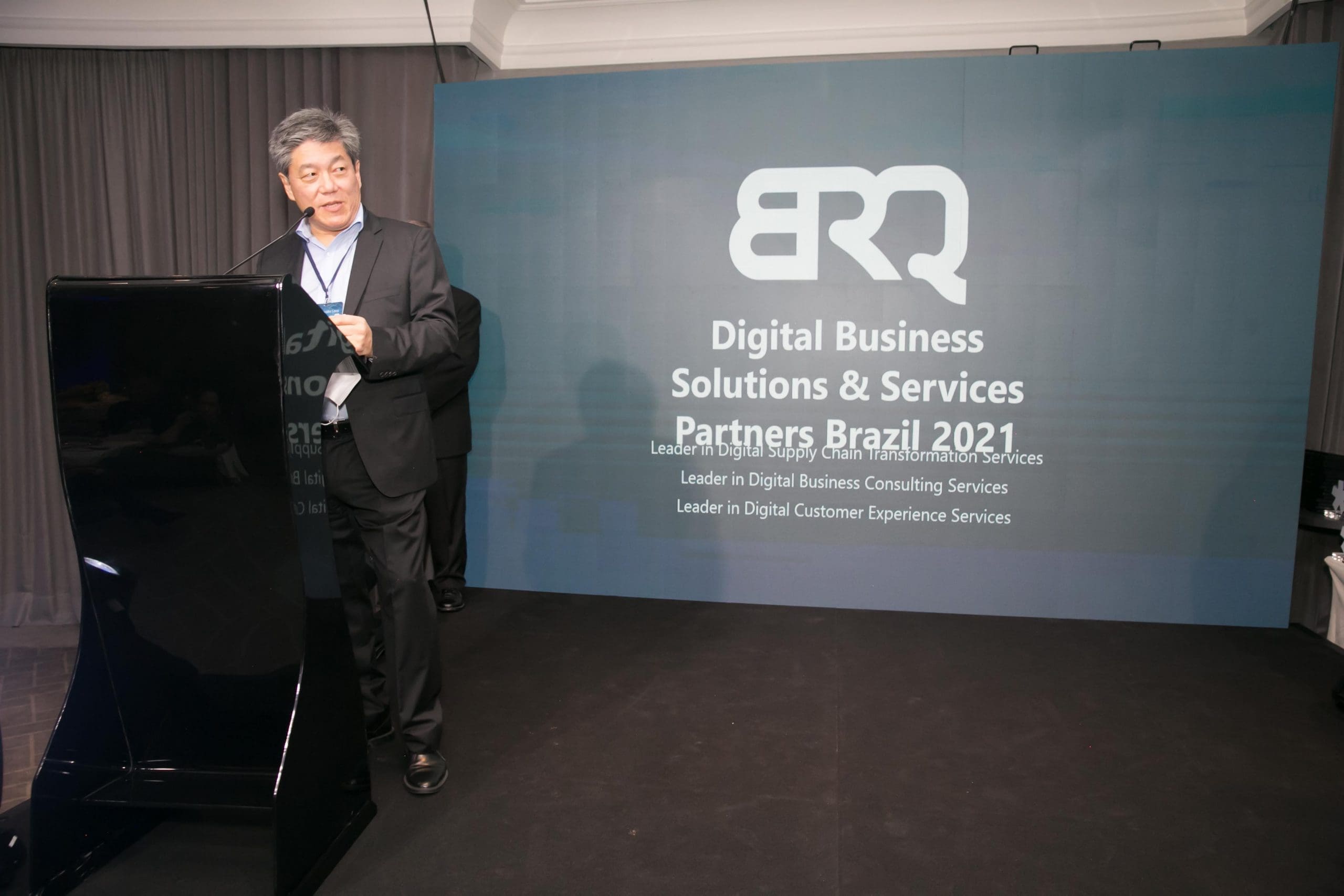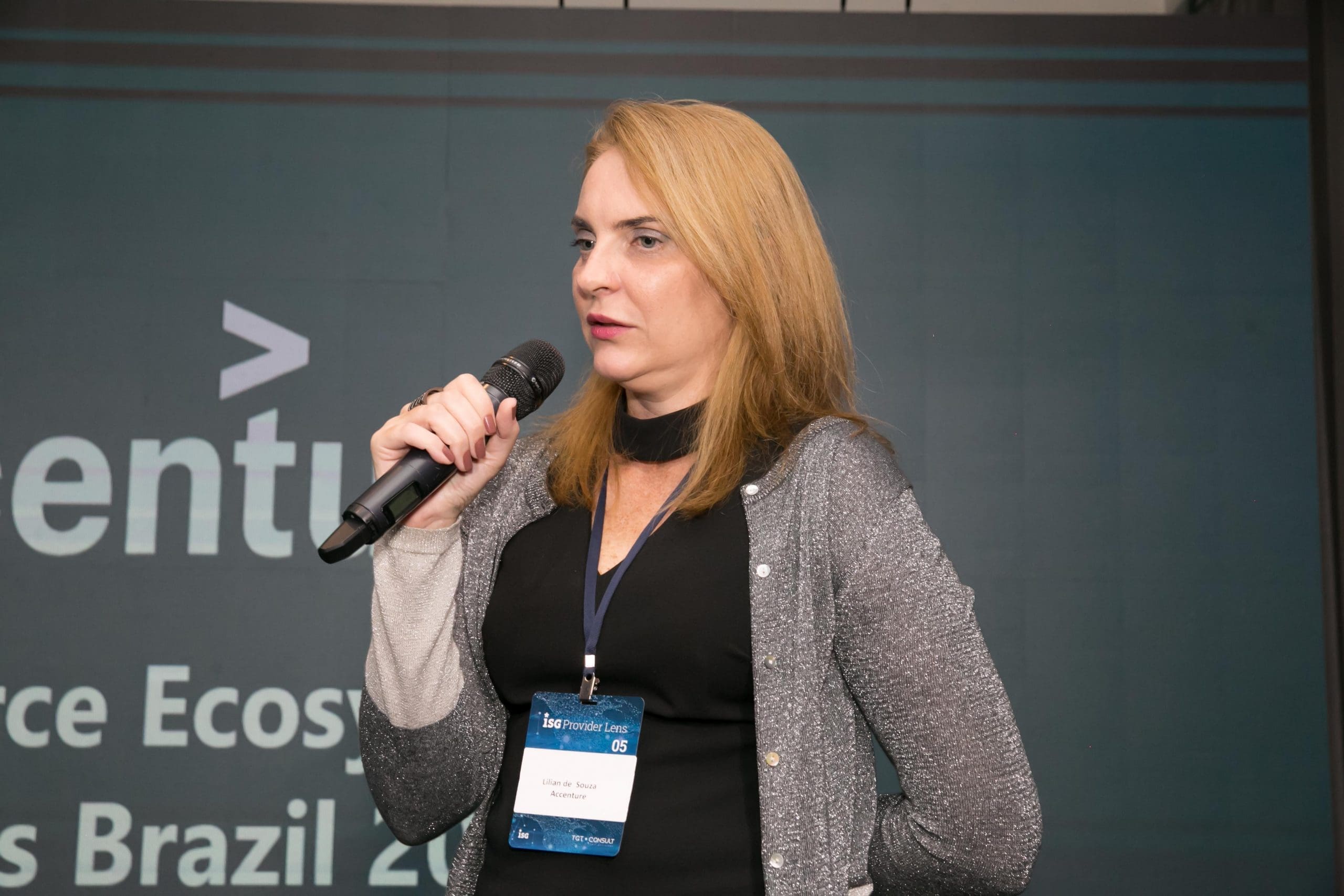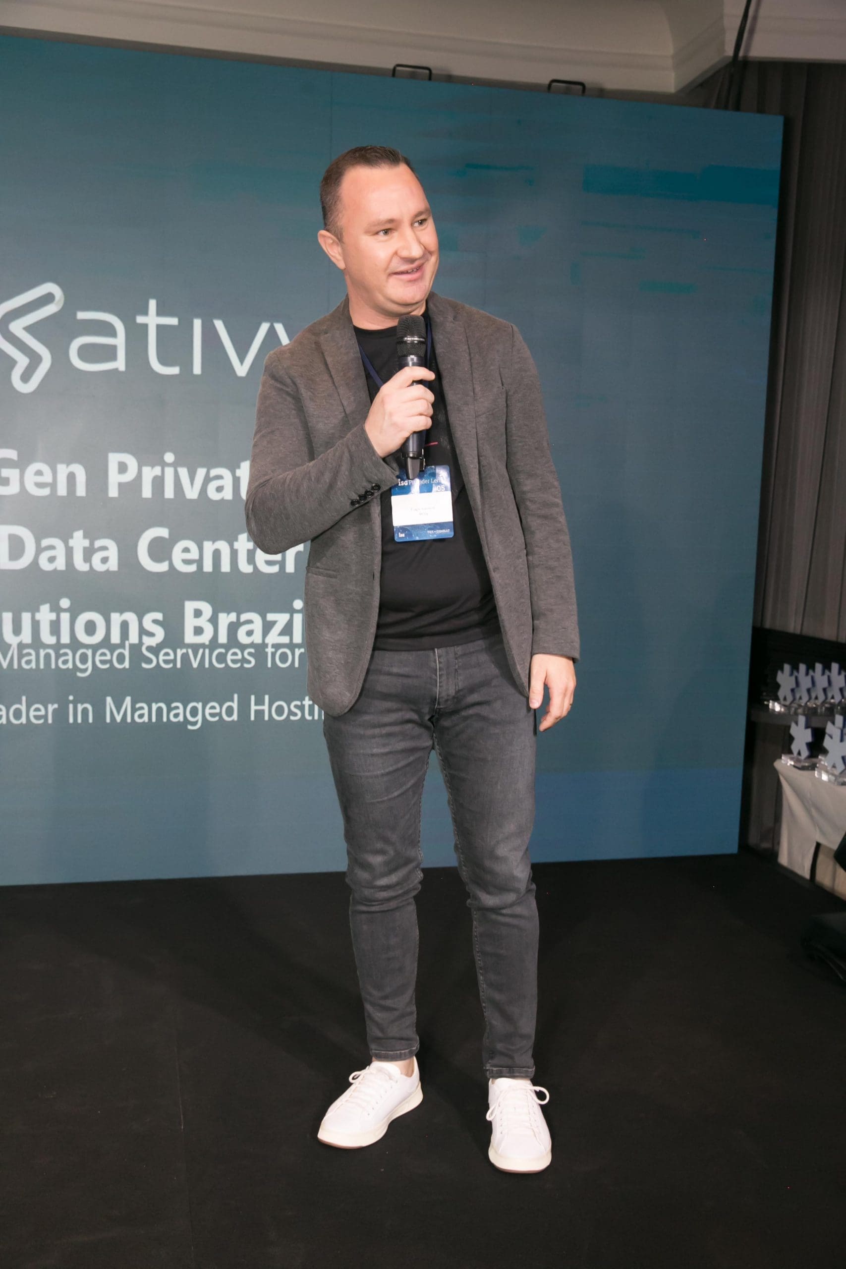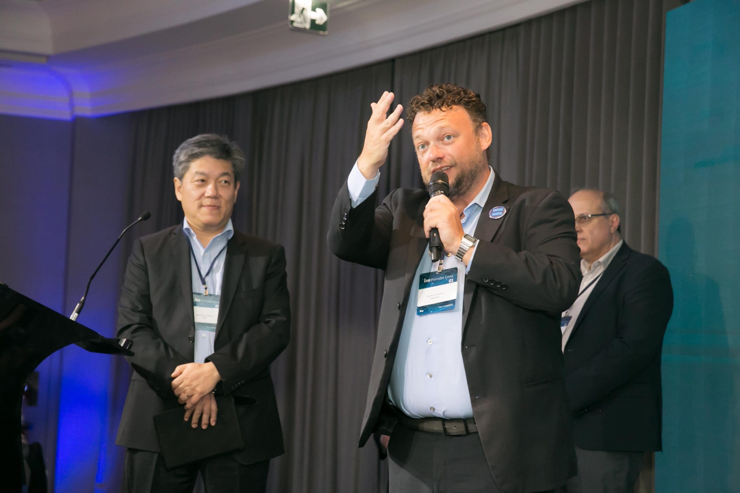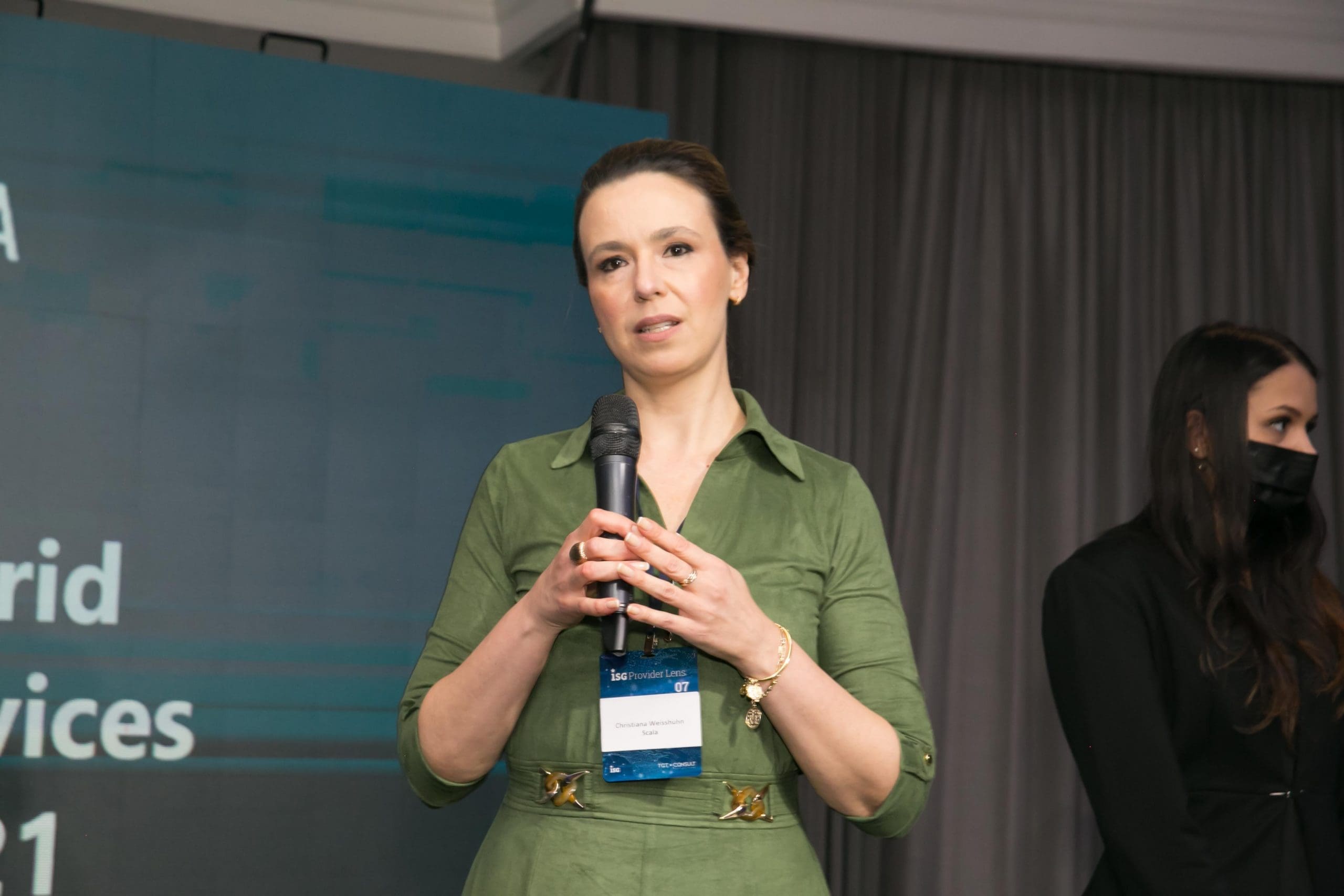 Logo após todos foram convidados a sentarem em suas mesas para acompanhar a premiação que contou com a condução de Jan Erik Aase – Líder Global da  ISG Provider Lens™ que veio ao Brasil especialmente para o evento e convidou ao palco os representantes das empresas para receberem seus prêmios.