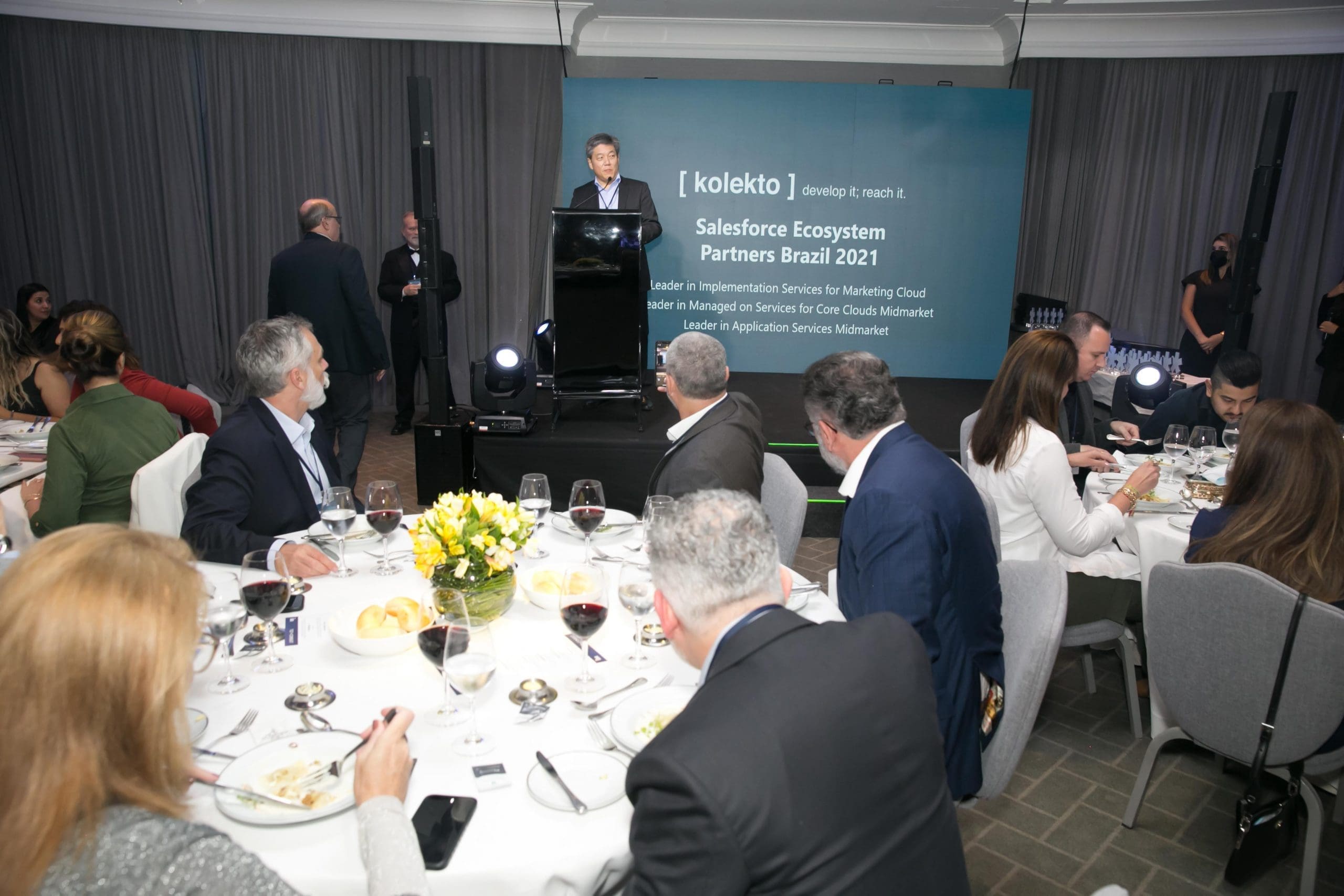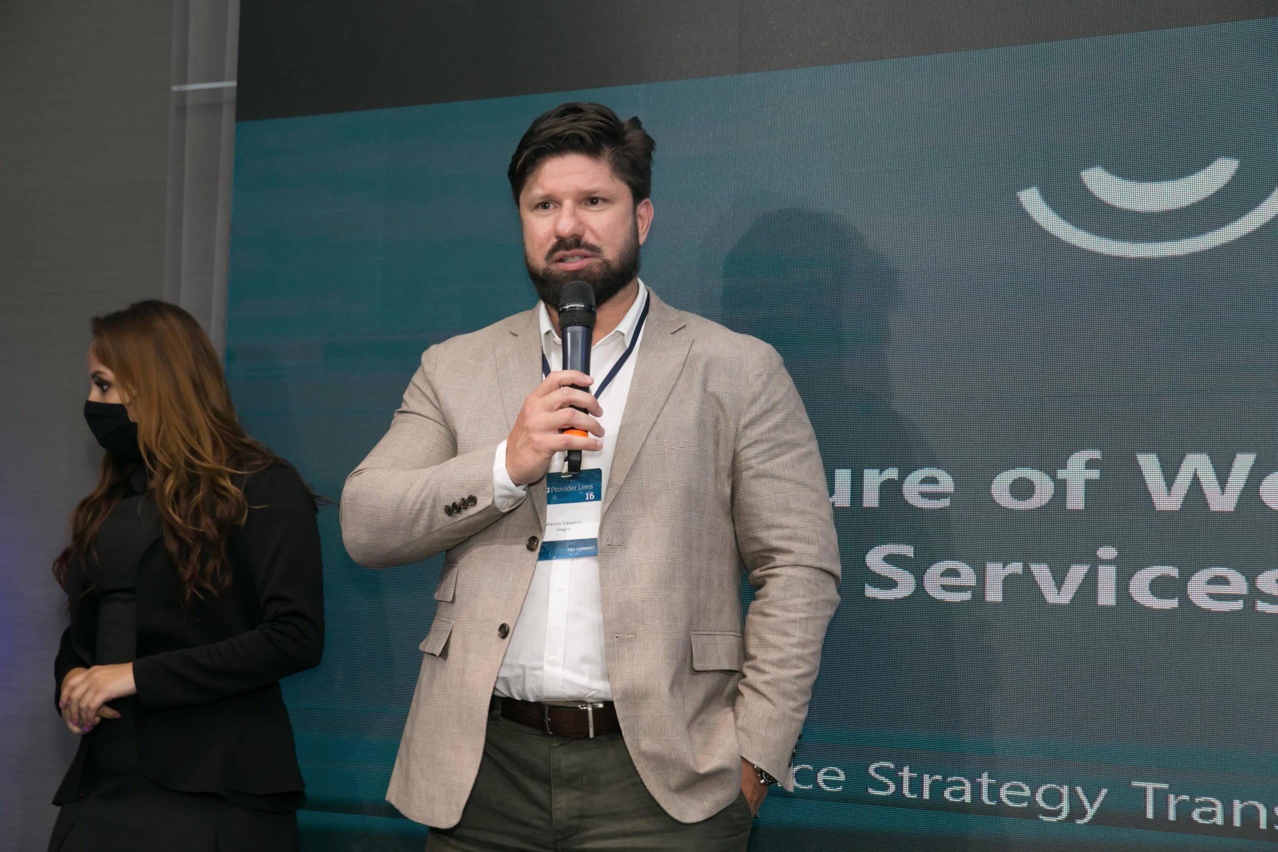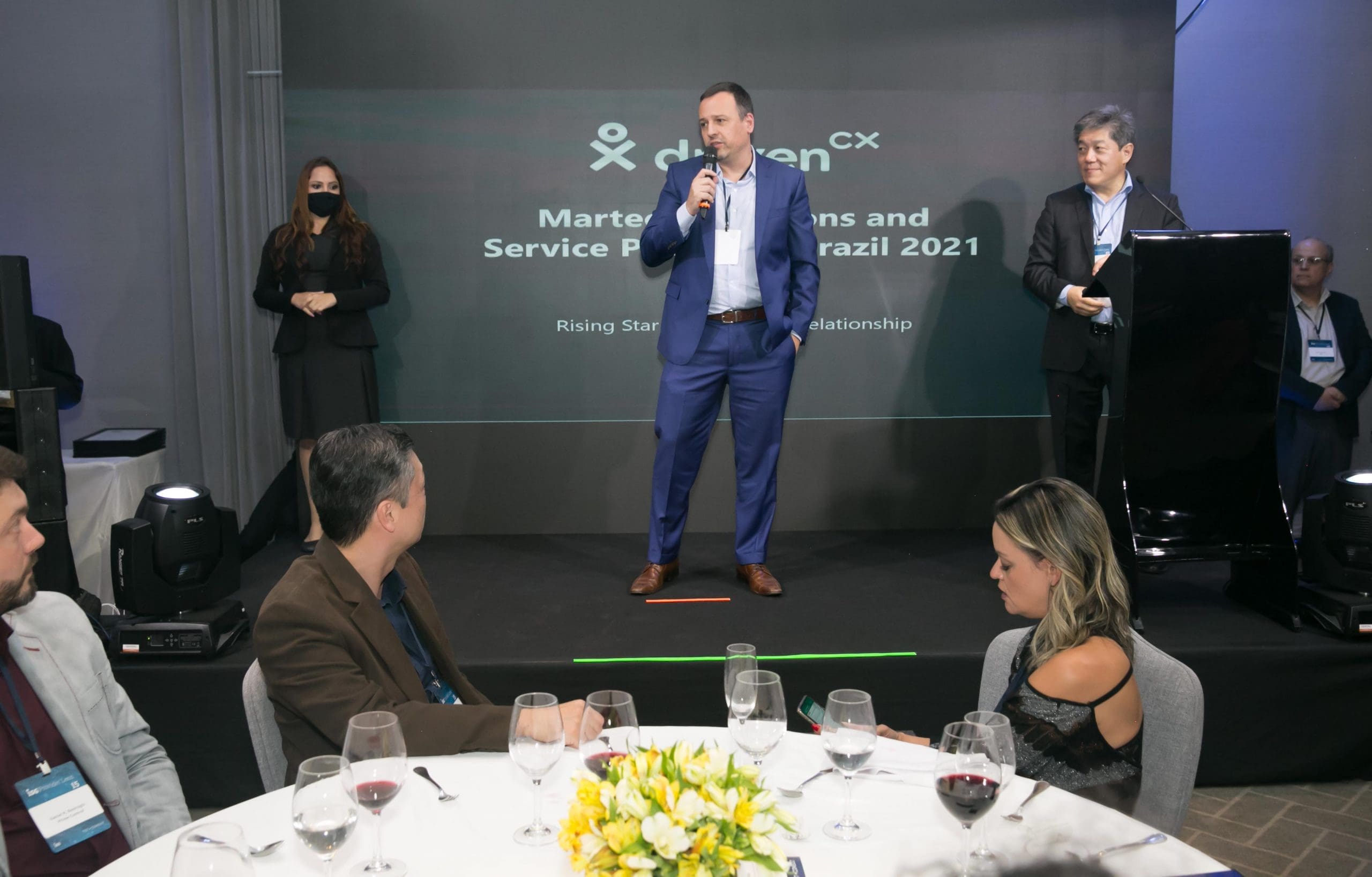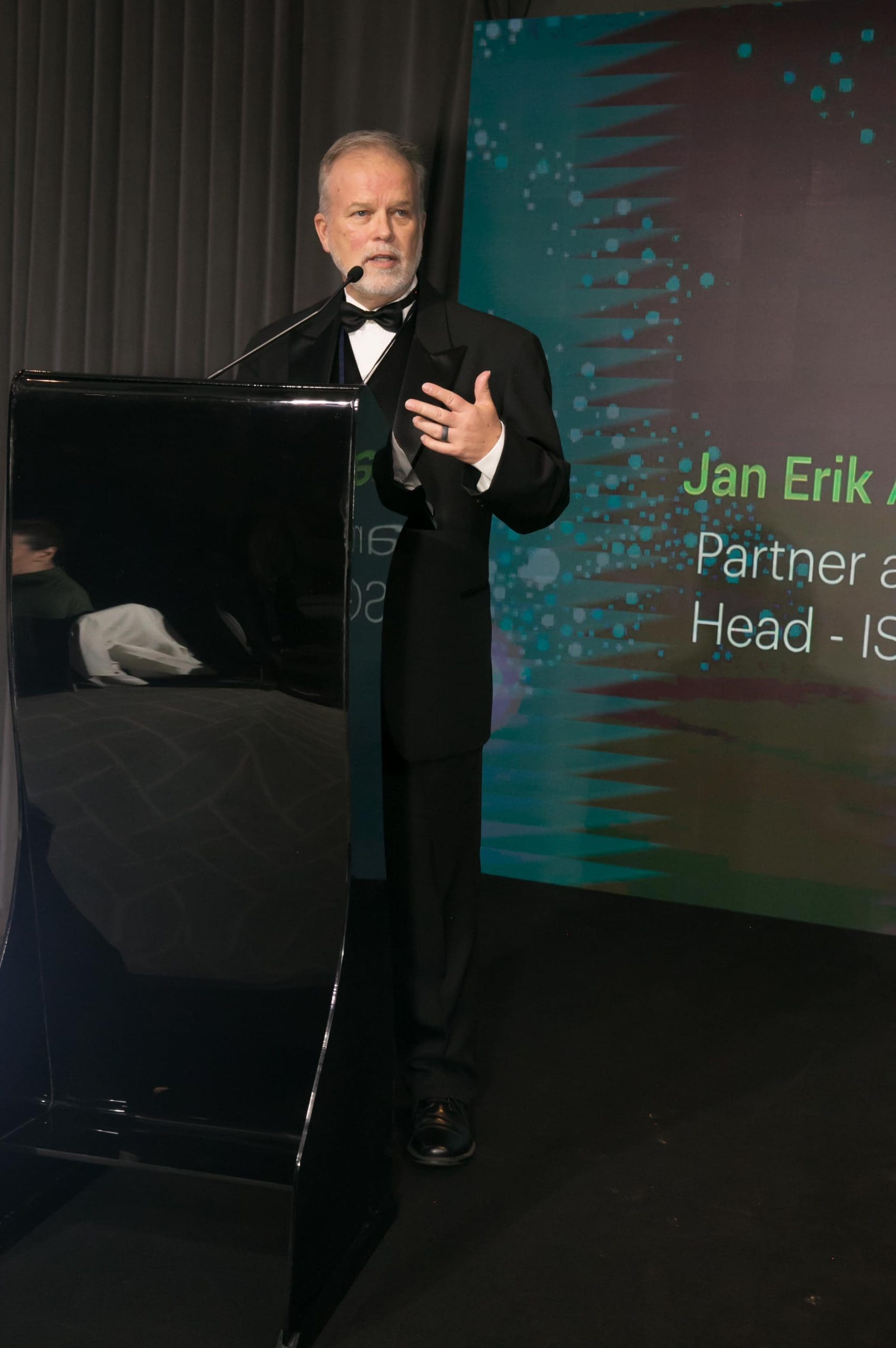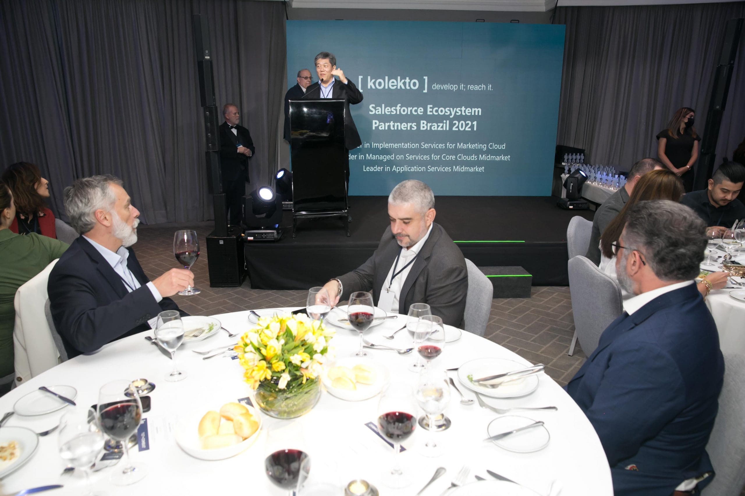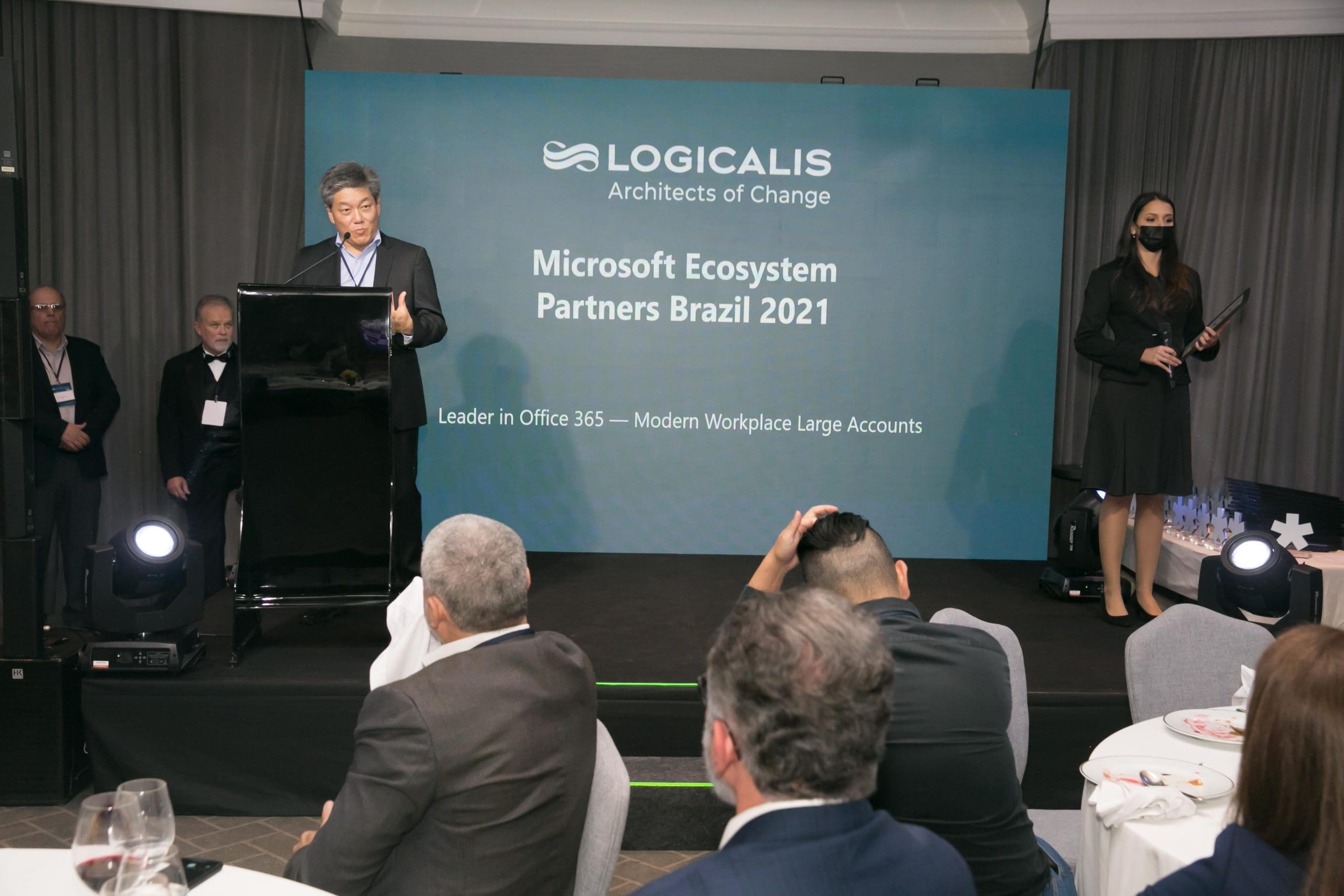 Logo após todos foram convidados a sentarem em suas mesas para acompanhar a premiação que contou com a condução de Jan Erik Aase – Líder Global da  ISG Provider Lens™ que veio ao Brasil especialmente para o evento e convidou ao palco os representantes das empresas para receberem seus prêmios.