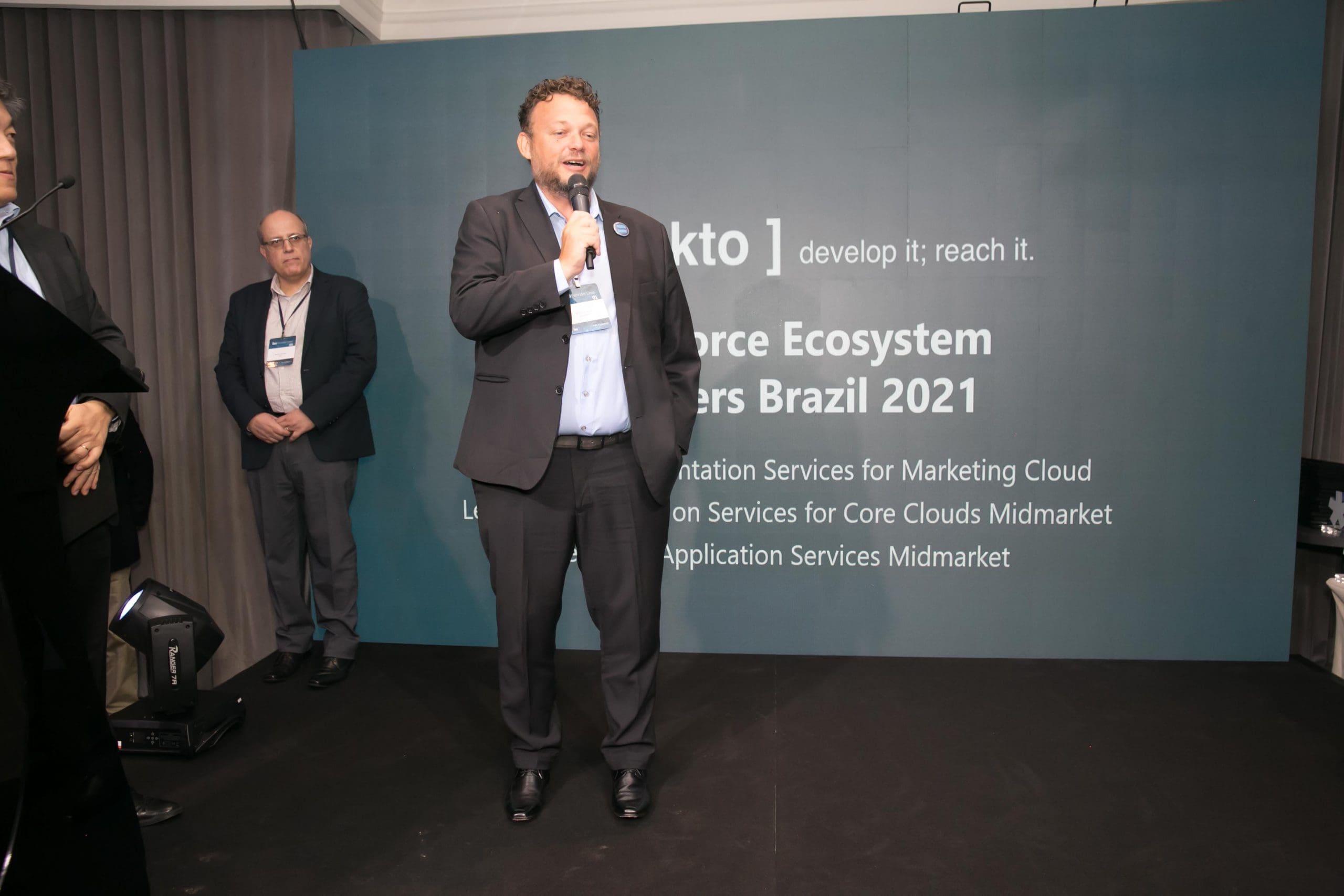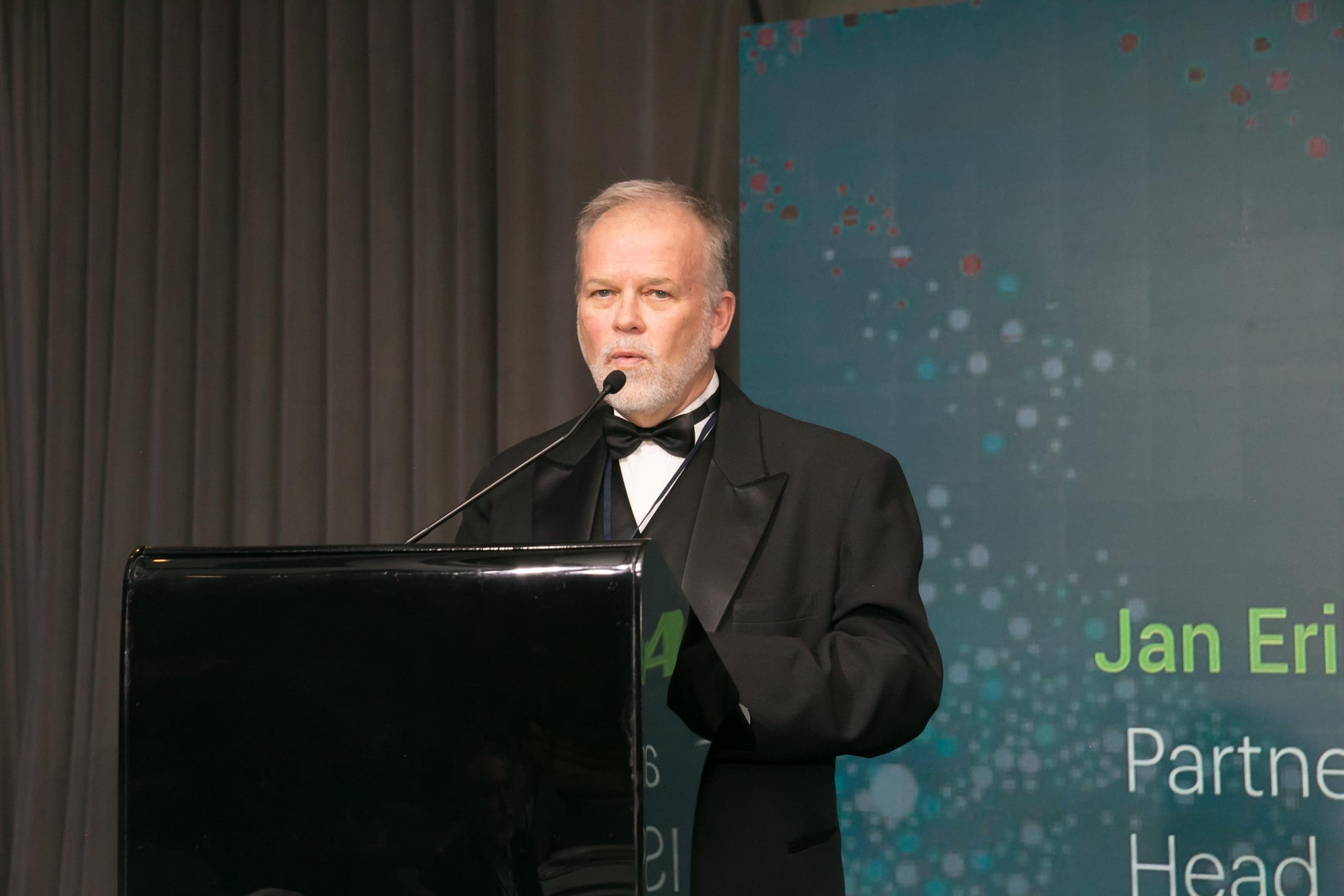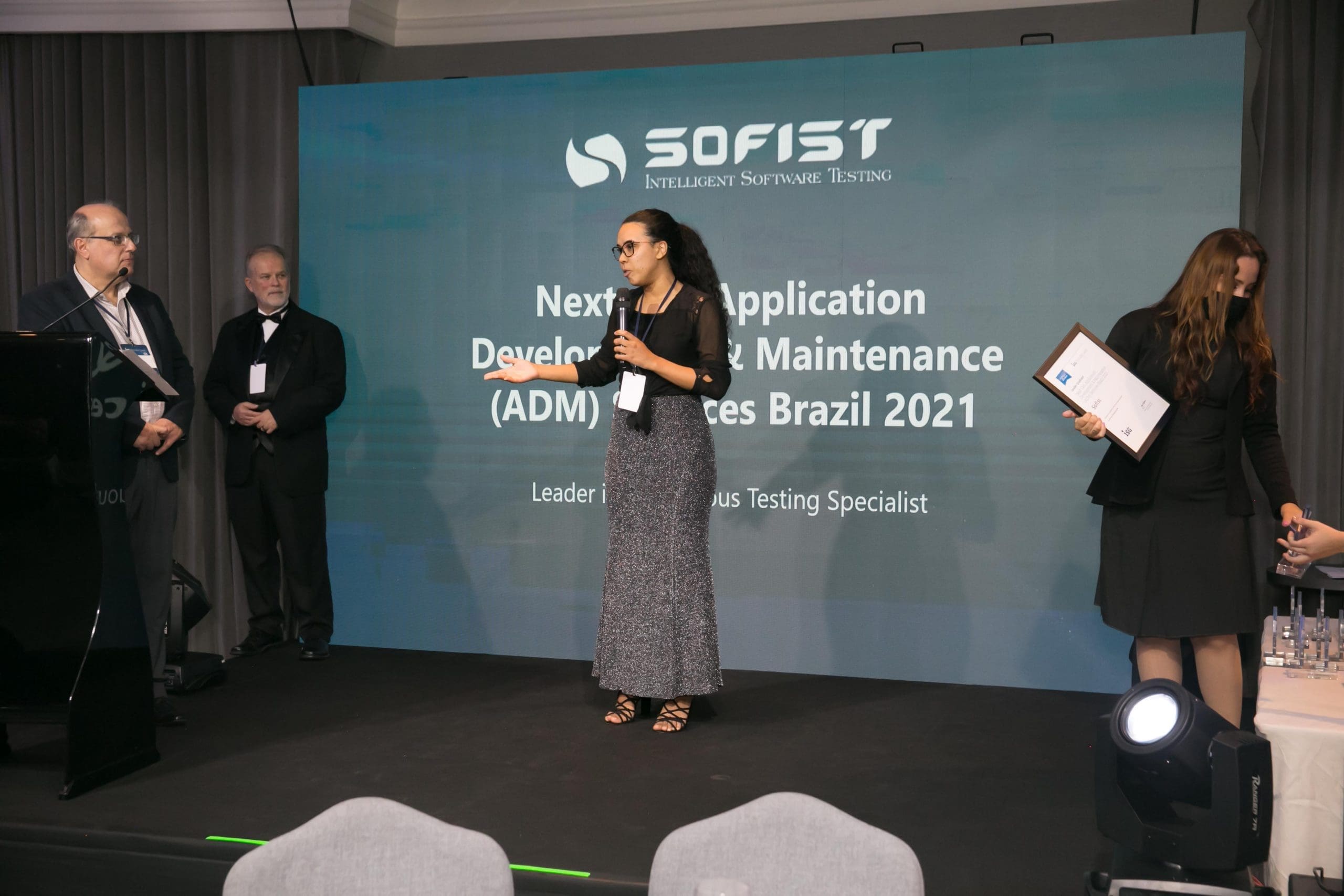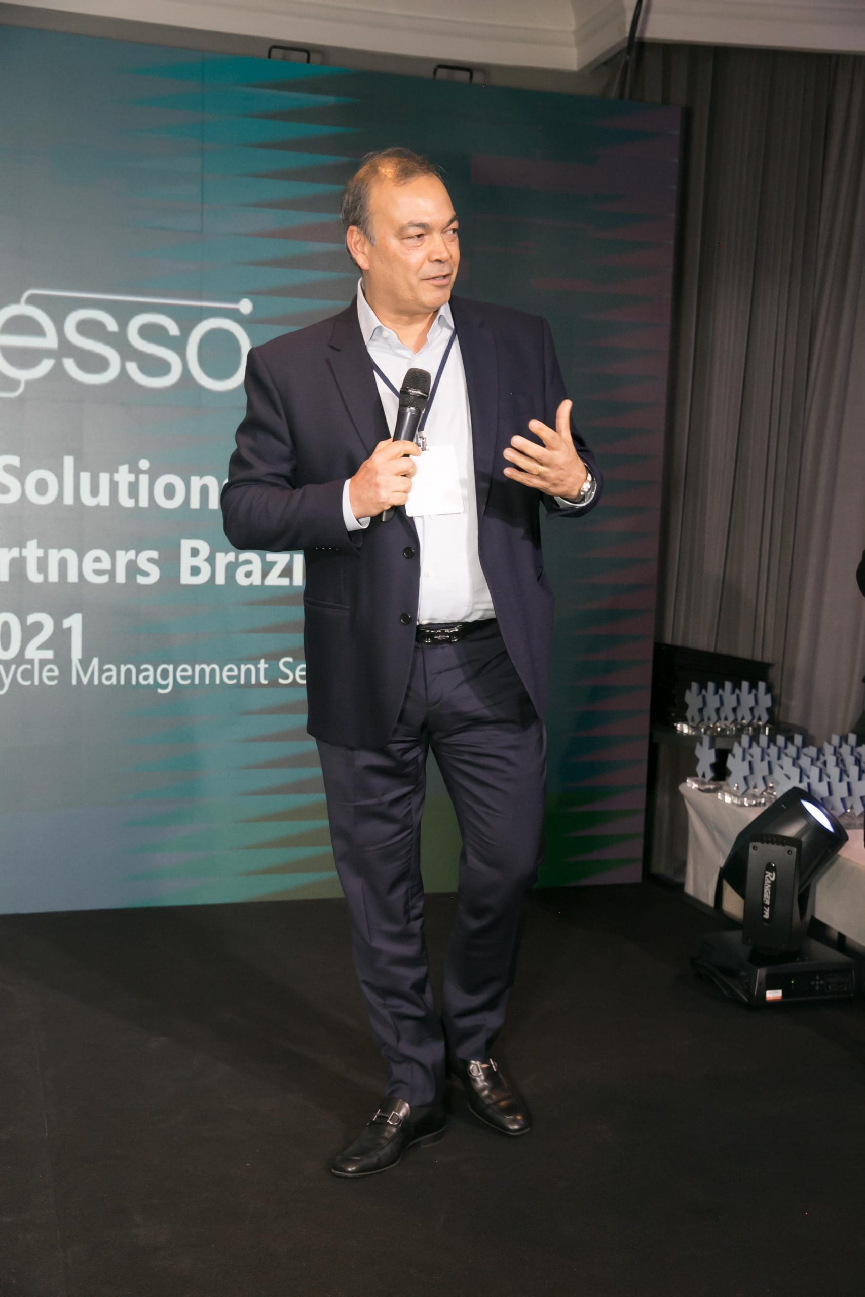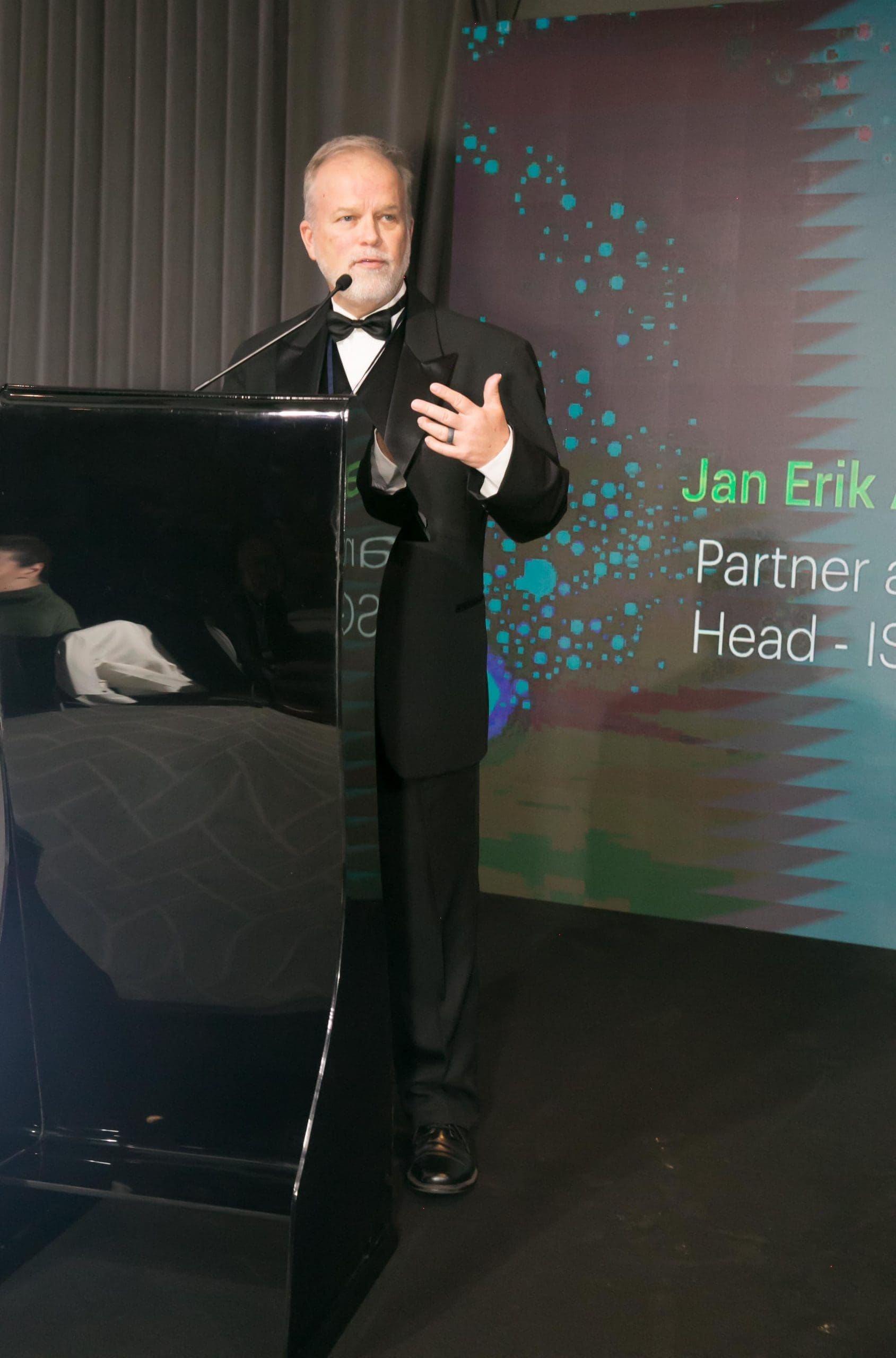 Logo após todos foram convidados a sentarem em suas mesas para acompanhar a premiação que contou com a condução de Jan Erik Aase – Líder Global da  ISG Provider Lens™ que veio ao Brasil especialmente para o evento e convidou ao palco os representantes das empresas para receberem seus prêmios.
