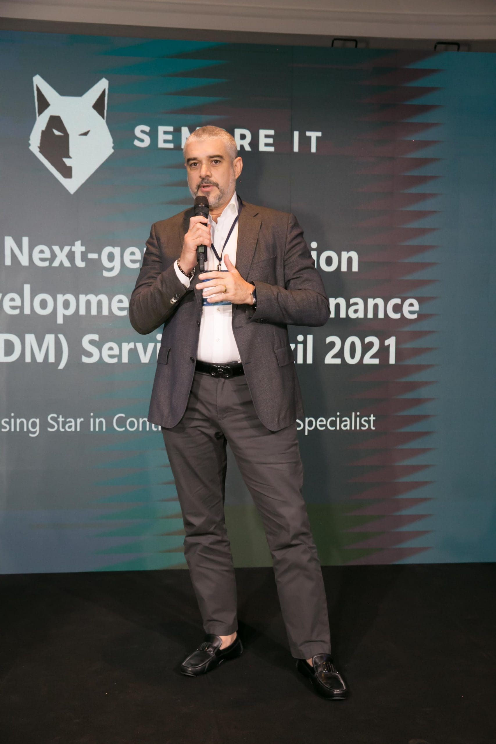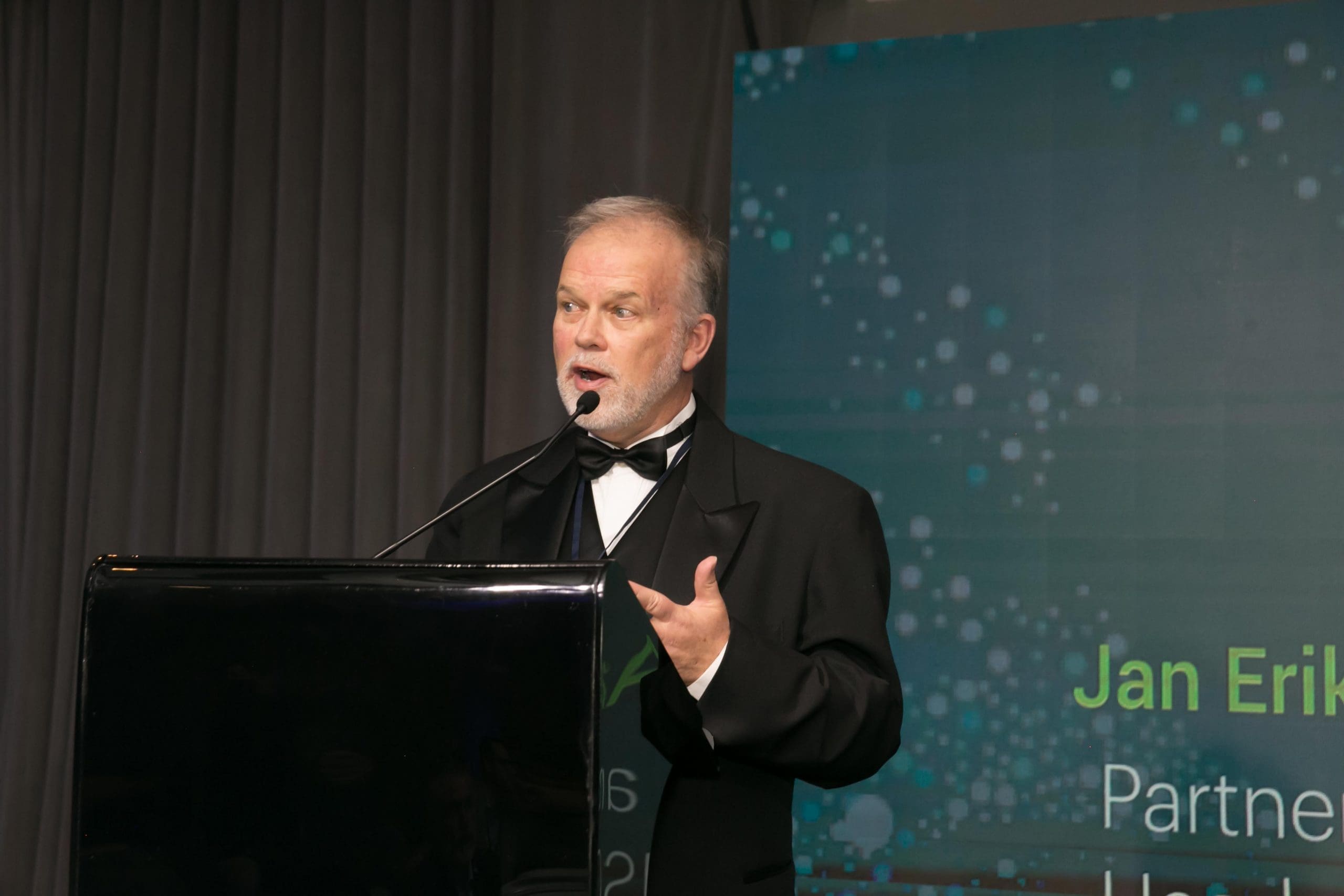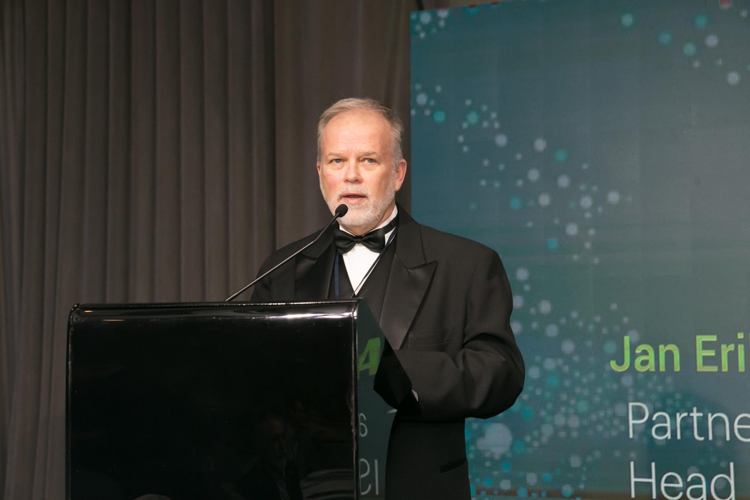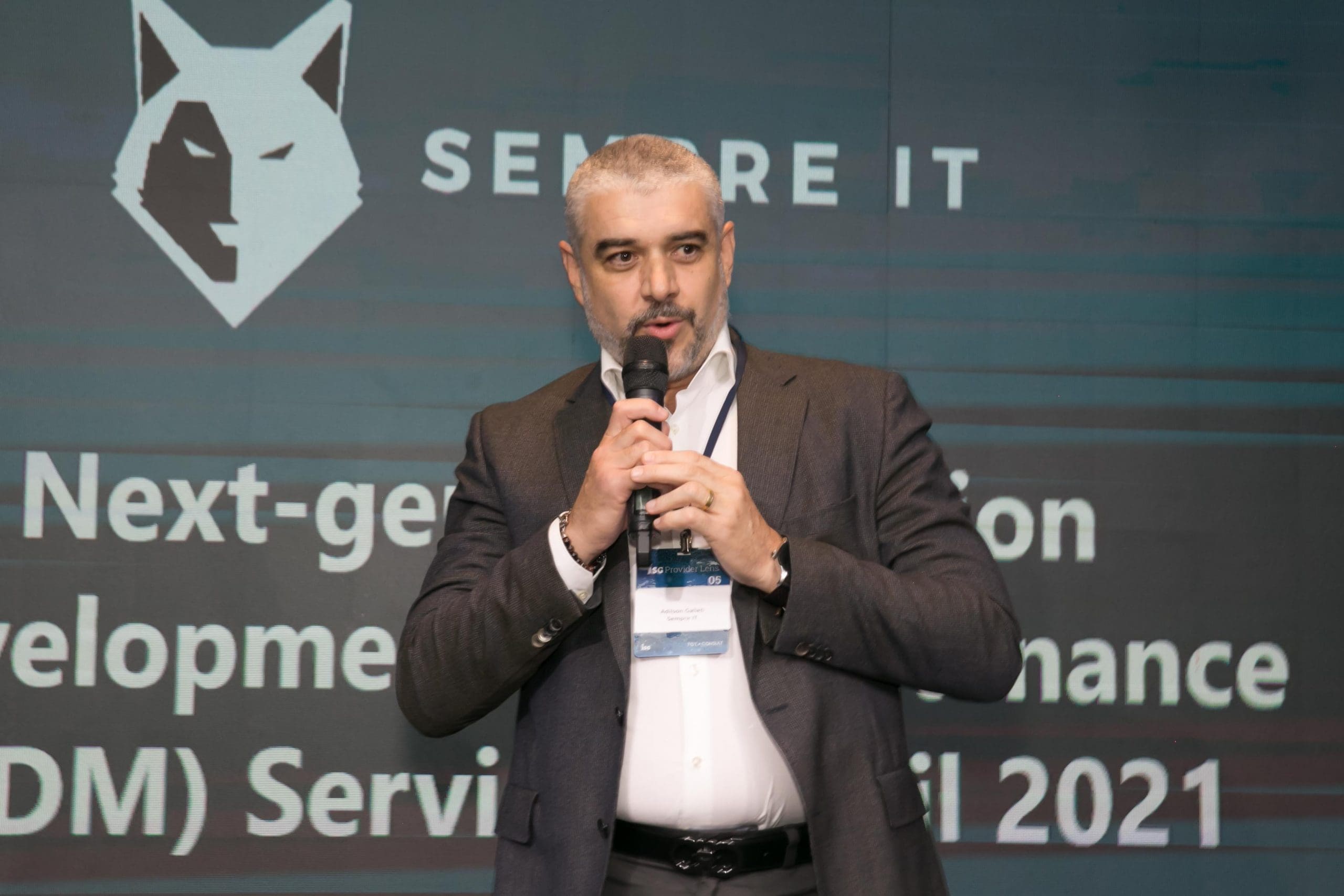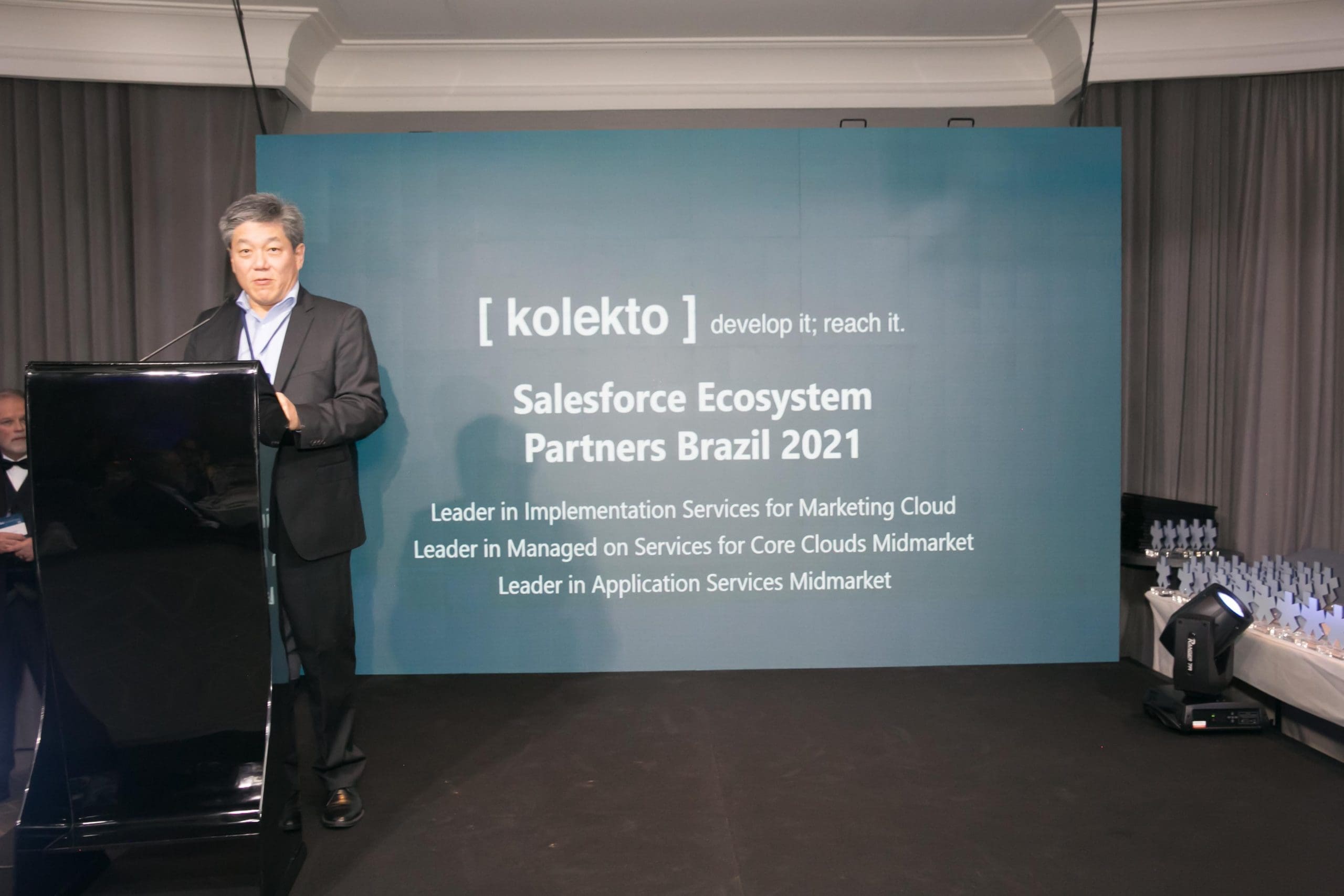 Logo após todos foram convidados a sentarem em suas mesas para acompanhar a premiação que contou com a condução de Jan Erik Aase – Líder Global da  ISG Provider Lens™ que veio ao Brasil especialmente para o evento e convidou ao palco os representantes das empresas para receberem seus prêmios.