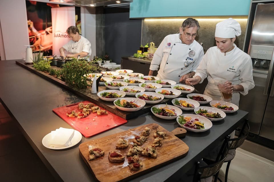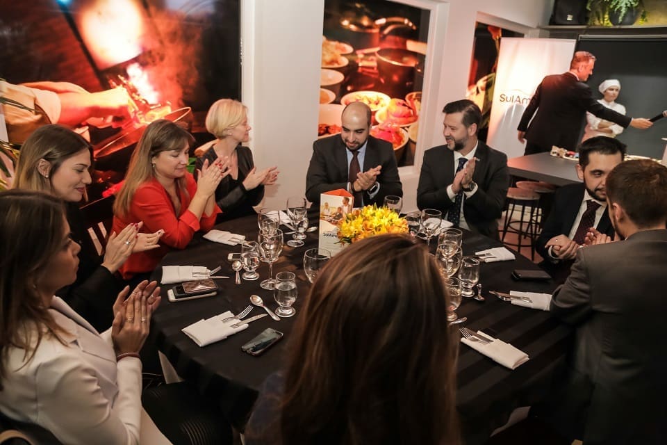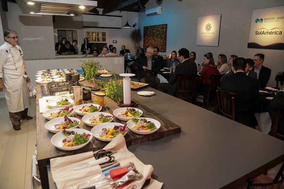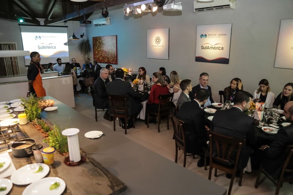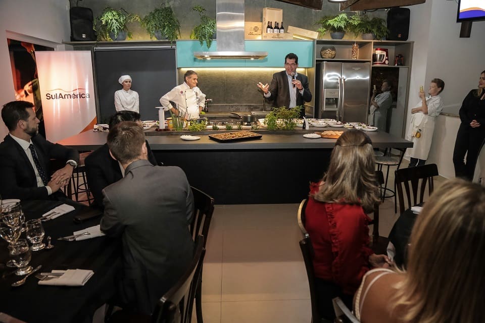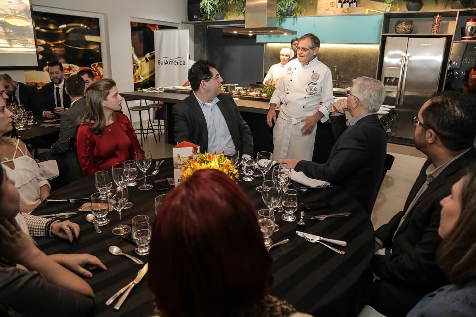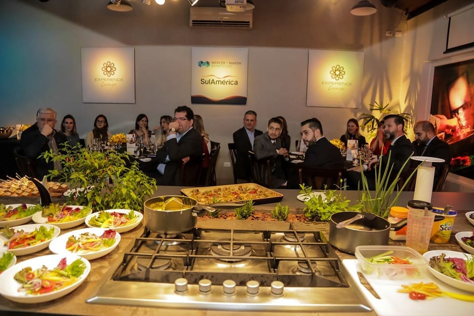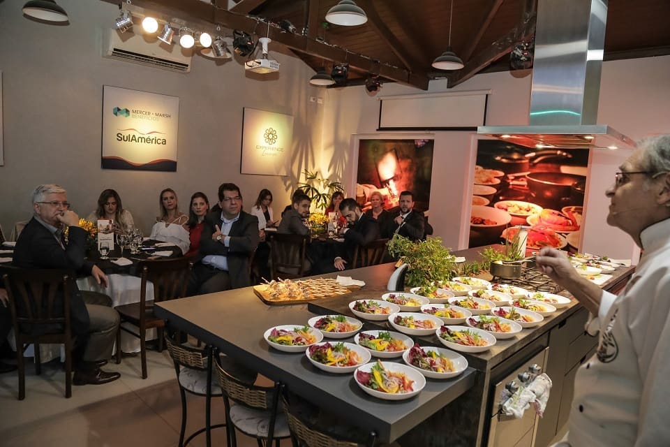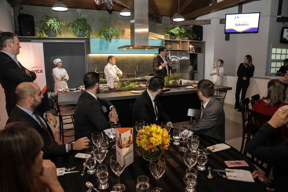 Mais uma vez a Marsh, em conjunto com a Sulamérica, esteve no nosso espaço realizando um jantar mais que especial para clientes e parceiros. O jantar foi inteiramente preparado pelo Chef David Marzan. Nascido no Chile e criado e formado na França como Chef Cuisinier, acumula mais de 35 anos de experiências fora e dentro do Brasil, com conquistas de títulos e prêmios com destacada cozinha francesa de alta escola. No Brasil gerenciou as cozinhas de renomados restaurantes, desenhou e criou novos cardápios. Trabalhou em estabelecimento de destaque na culinária judaica da capital e lá cria a primeira “paella kosher”.