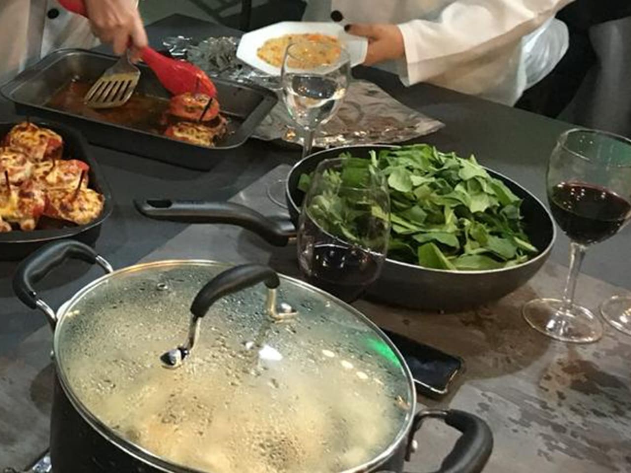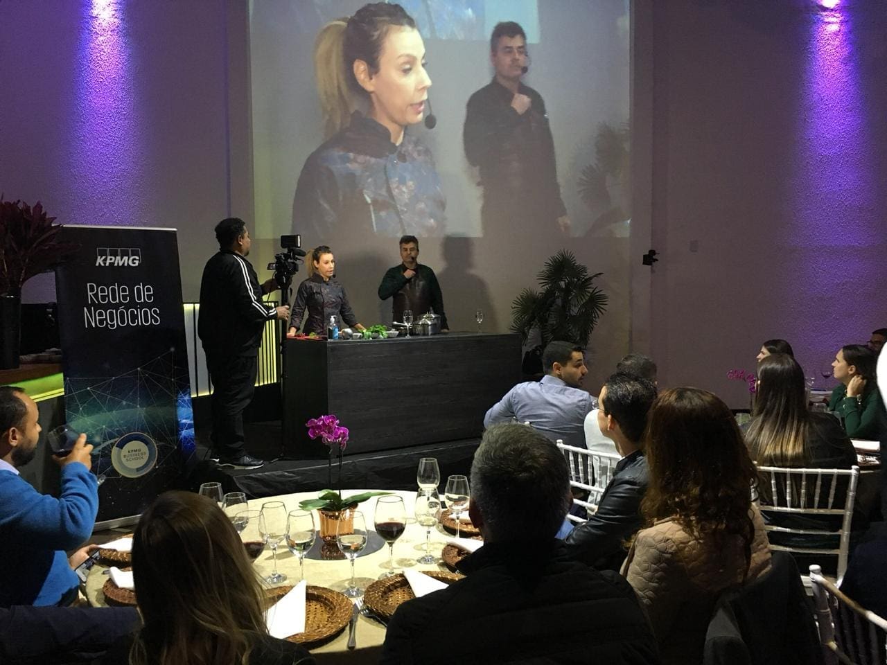 Comandados pelos nossos queridos chefs Fred Paim e Lu Benedicto, os convidados assistiram ao vivo a uma verdadeira aula de culinária, com a preparação de duas receitas deliciosas: risoto de funghi e risoto de frango com limão siciliano.