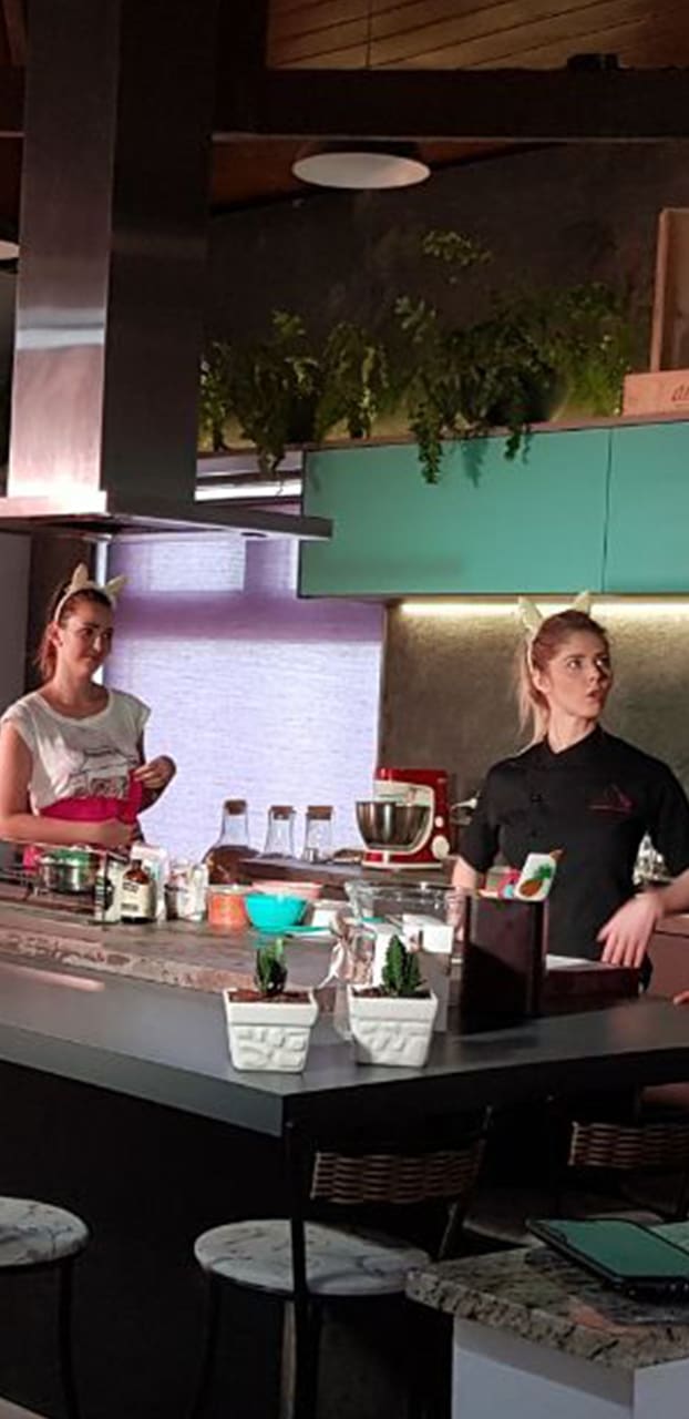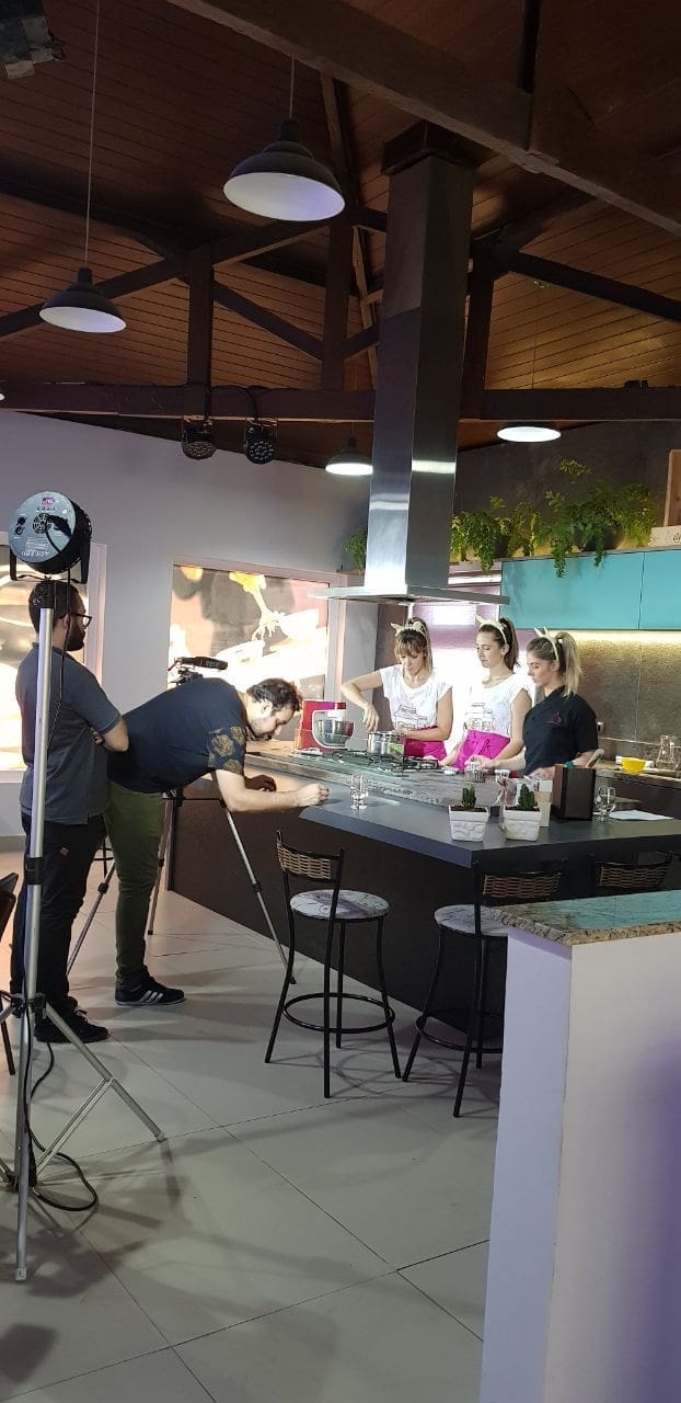 Pensado para privilegiar o cliente que não quer ter trabalho de execução, o espaço conta com toda estrutura audiovisual e também de mobiliário e cenografia. E dessa vez oferecemos à Fran Tonello e sua equipe o pacote completo, para que assim fosse gravado o passo-a-passo completo das Receitas do Curso Páscoa Saudável.