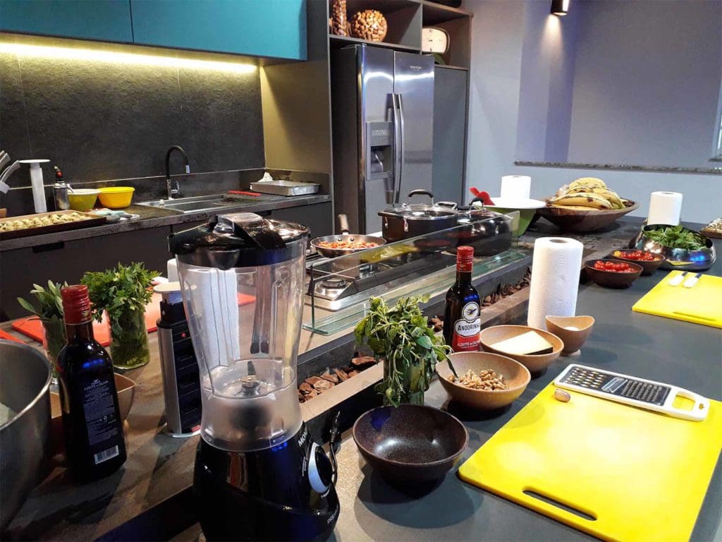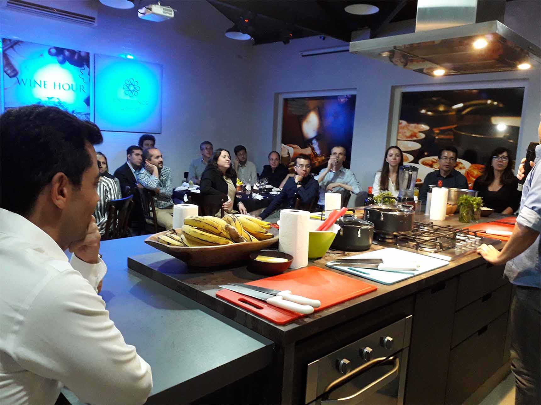 Dispondo de uma equipe altamente qualificada e com uma estrutura especialmente desenhada para este tipo de atividade, o Experience Lounge realizou um divertido Gourmet Experience, formato de evento onde os participantes colocam a mão na massa e elaboram um jantar completo, incluindo entrada, prato principal e sobremesa.