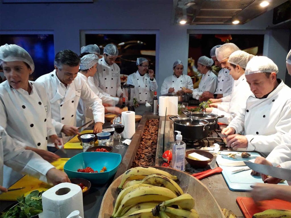 Divididos em grupos, os colaboradores tiveram que falar a mesma língua e caprichar no preparo das receitas. Conduzidos pela chef Renata Sedovim e sua equipe, os participantes puderam sentir a importância do trabalho em equipe na execução de tarefas complexas.