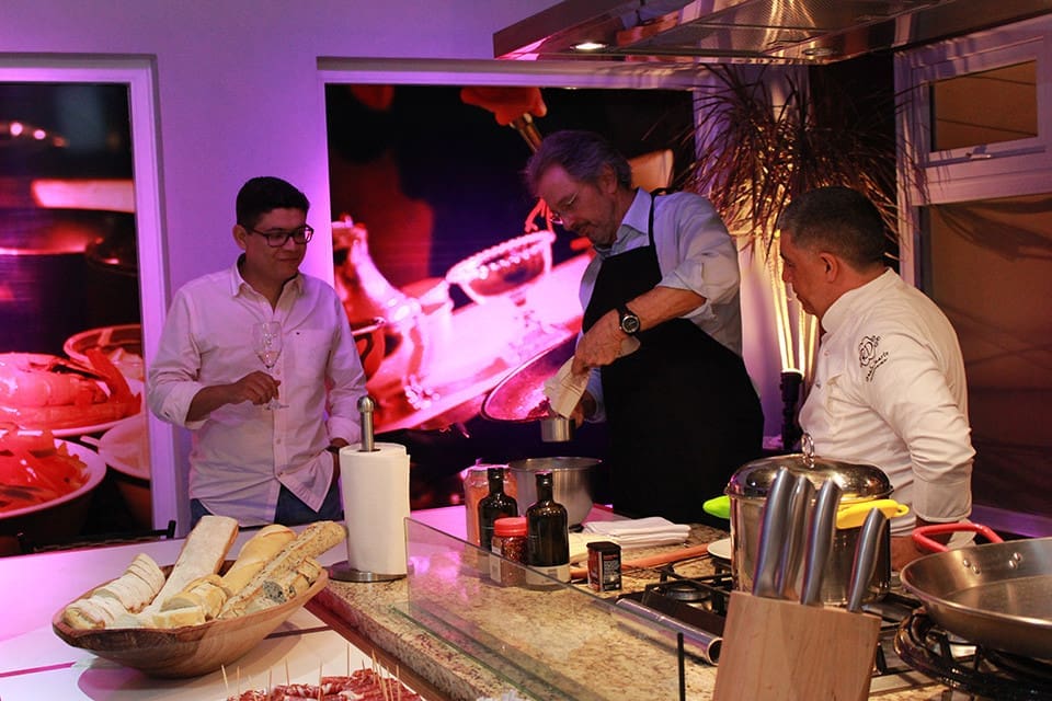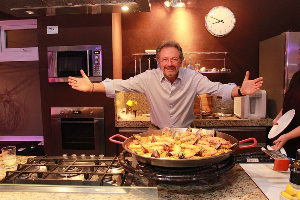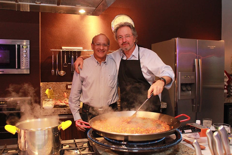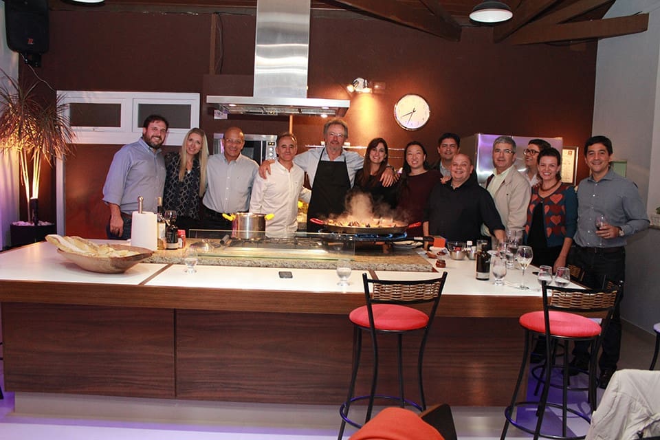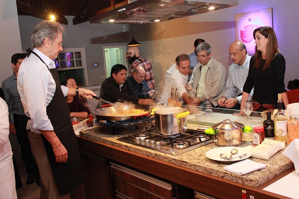 Atuando como Chef por um dia, preparou uma paella para seus convidados. O resultado foi uma experiência única, marcada pela confraternização de sua equipe.A paelha, é um prato à base de arroz, típico da gastronomia valenciana — daí que em Portugal seja comumente conhecido como arroz à valenciana e no Brasil como paelha valenciana — e popularizado por toda a Espanha (com uma grande quantidade de variações adaptadas ao ingredientes das diversas regiões da cozinha espanhola) e noutros países, convertendo-se numa referência da gastronomia espanhola.É um guisado de arroz, carne e verduras preparado numa paella sobre fogo, seja um paeller ou um fogão. A receita é originária da marjal da Albufeira de Valência, na comarca natural da Ribeira do Júcar, a sul da cidade de Valência. É consumida em qualquer ocasião, especialmente quando se reúnem amigos ou famílias, sábados, domingos ou em feriados tradicionais e é considerado o prato típico do País Valenciano por excelência.O prato era inicialmente uma refeição simples confeccionada com os ingredientes disponíveis para além do arroz: carne de coelho, frango ou até pato; verduras (diferentes tipos de feijão — bajoques, fesols ou garrofons — e tomate), azeite, água, açafrão, caracóis e sal. Ao longo do tempo foi modernizando-se e entrou nas ementas dos restaurantes, onde é cozinhada com diferentes tipos de marisco, incluindo bogavantes, camarões ou lagostas.A sua internacionalização levou à criação de pratos com pouca relação com o original valenciano. Para evitar a confusão gerada por esta situação, um grupo de cozinheiros valencianos, na qual se incluem algumas associações de restaurantes, declararam a necessidade de oficializar uma única receita, e aplicar às restantes uma designação que não a de paelha valenciana.No Brasil, normalmente é feita com frutos do mar.