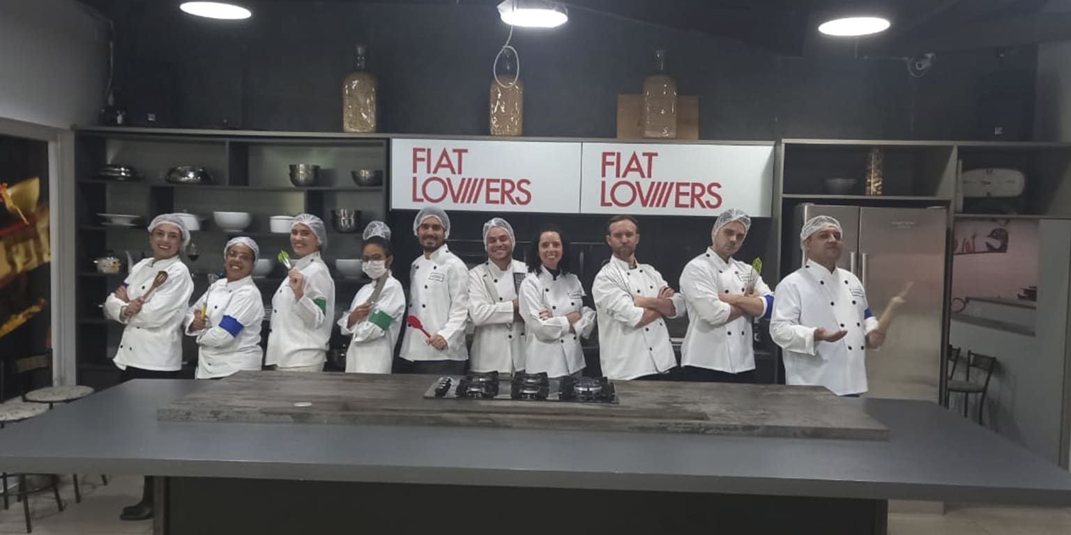 Os 11 convidados foram recebidos no lounge de nosso espaço onde vestiram seus dólmãs e rapidamente se encaminharam para o mezanino. Lá encontraram a Chef Cedeni Azevedo, reconhecida por sua participação em realities de gastronomia, que orientou os trabalhos.