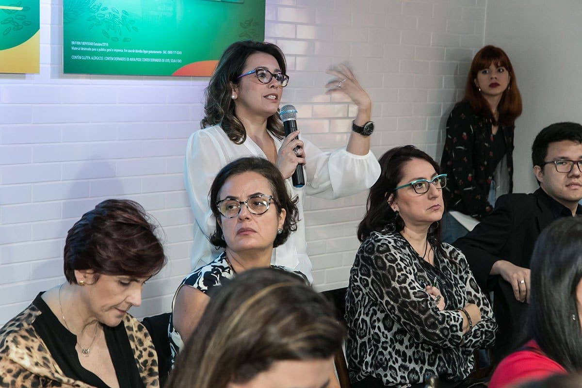 Após as apresentações, que durou aproximadamente uma hora, foi iniciado um bate-papo entre a jornalista, uma médica gastroenterologista, uma conceituada nutricionista e a expositora da pesquisa IBOPE, onde foram debatidos diversos temas, como o funcionamento intestinal, a cultura da alimentação no Brasil, a ingestão de fibras e algumas recomendações da Organização Mundial da Saúde, bem como a aderência da população brasileira a essas recomendações.