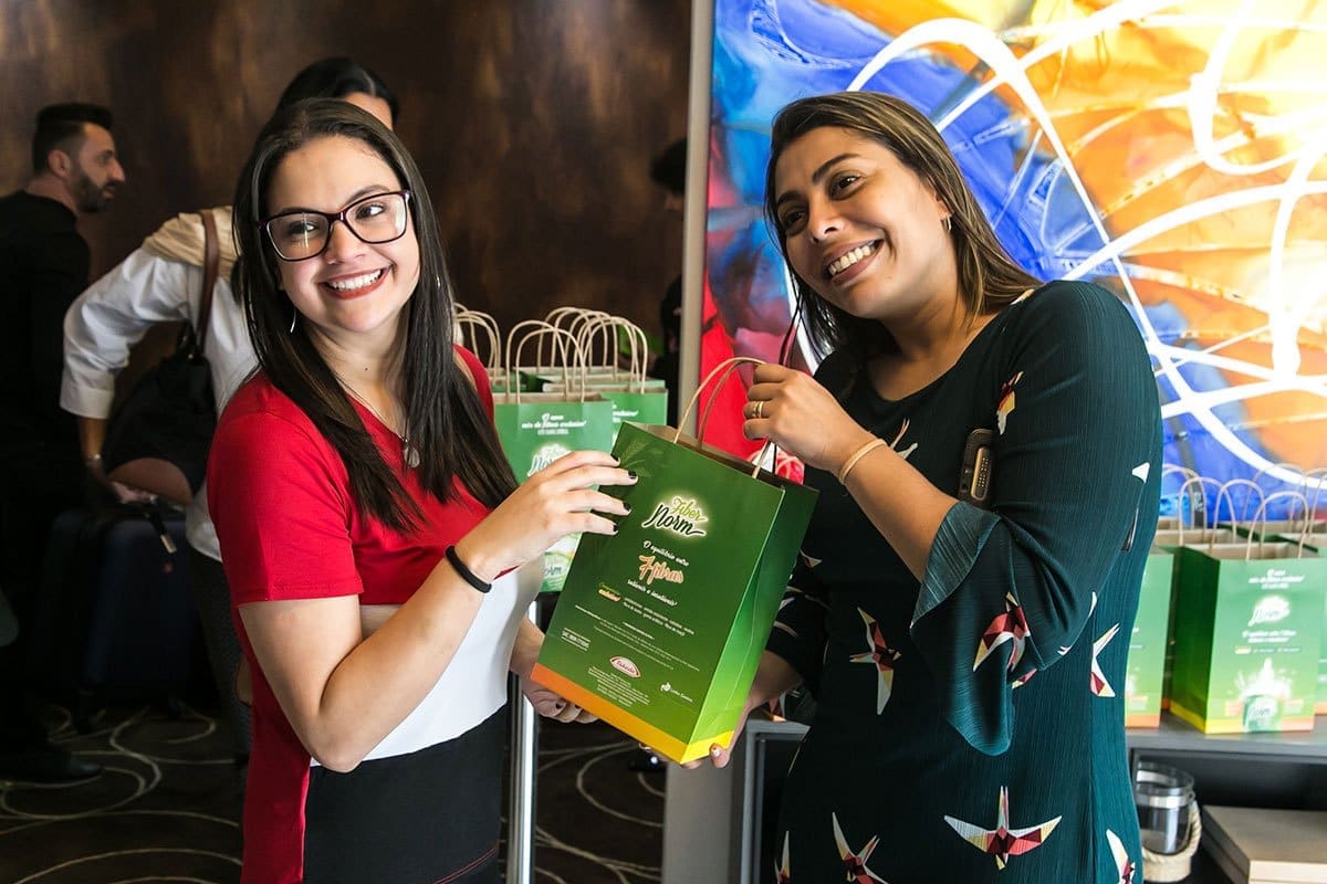 No final evento, os participantes receberam um kit de produtos e outros brindes.
