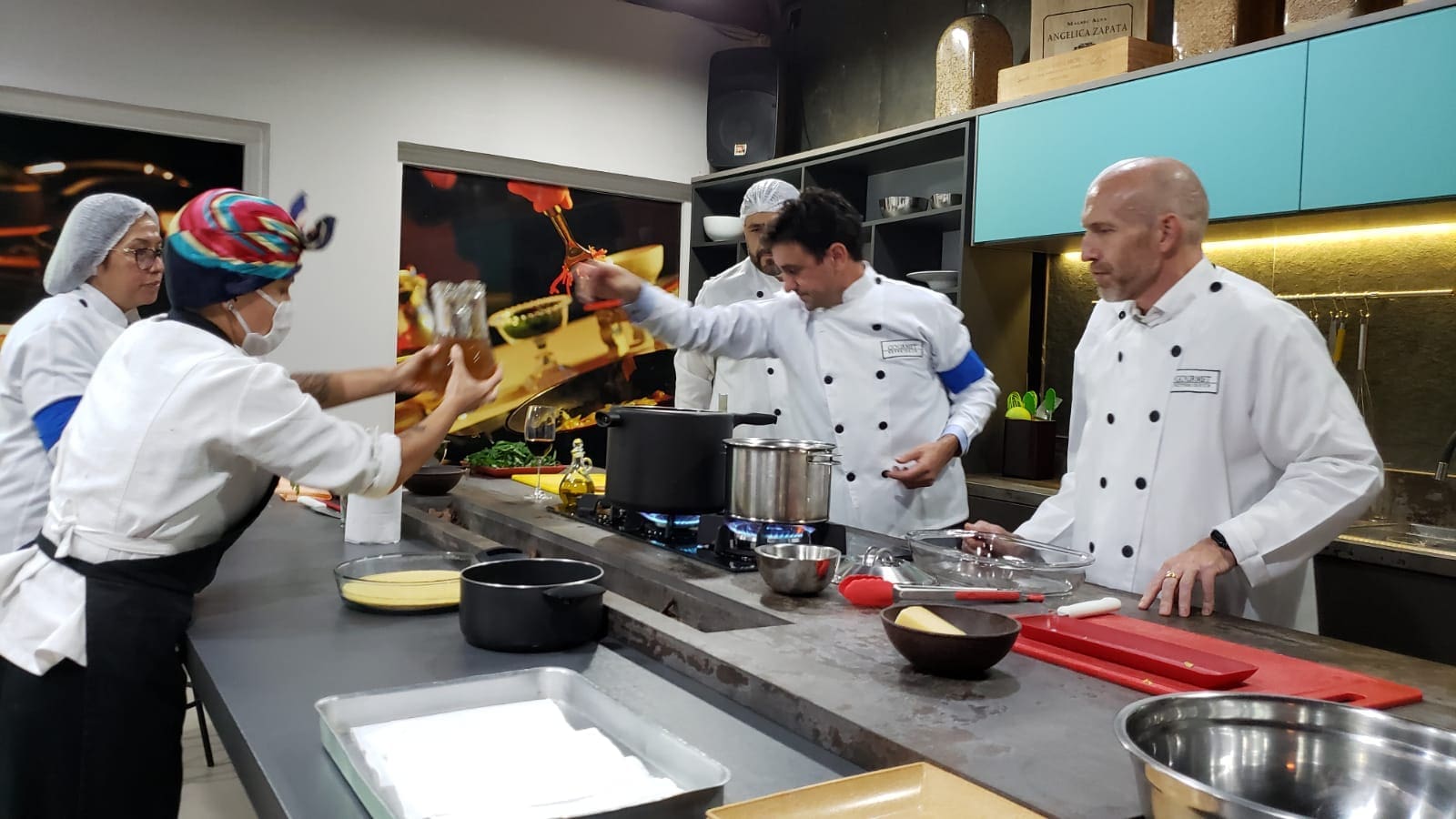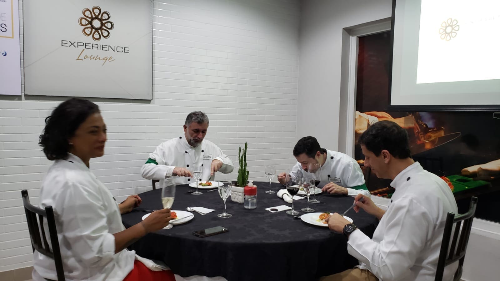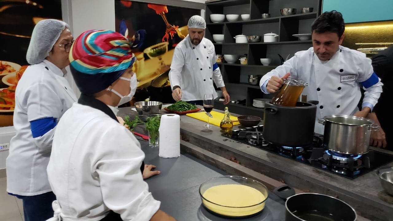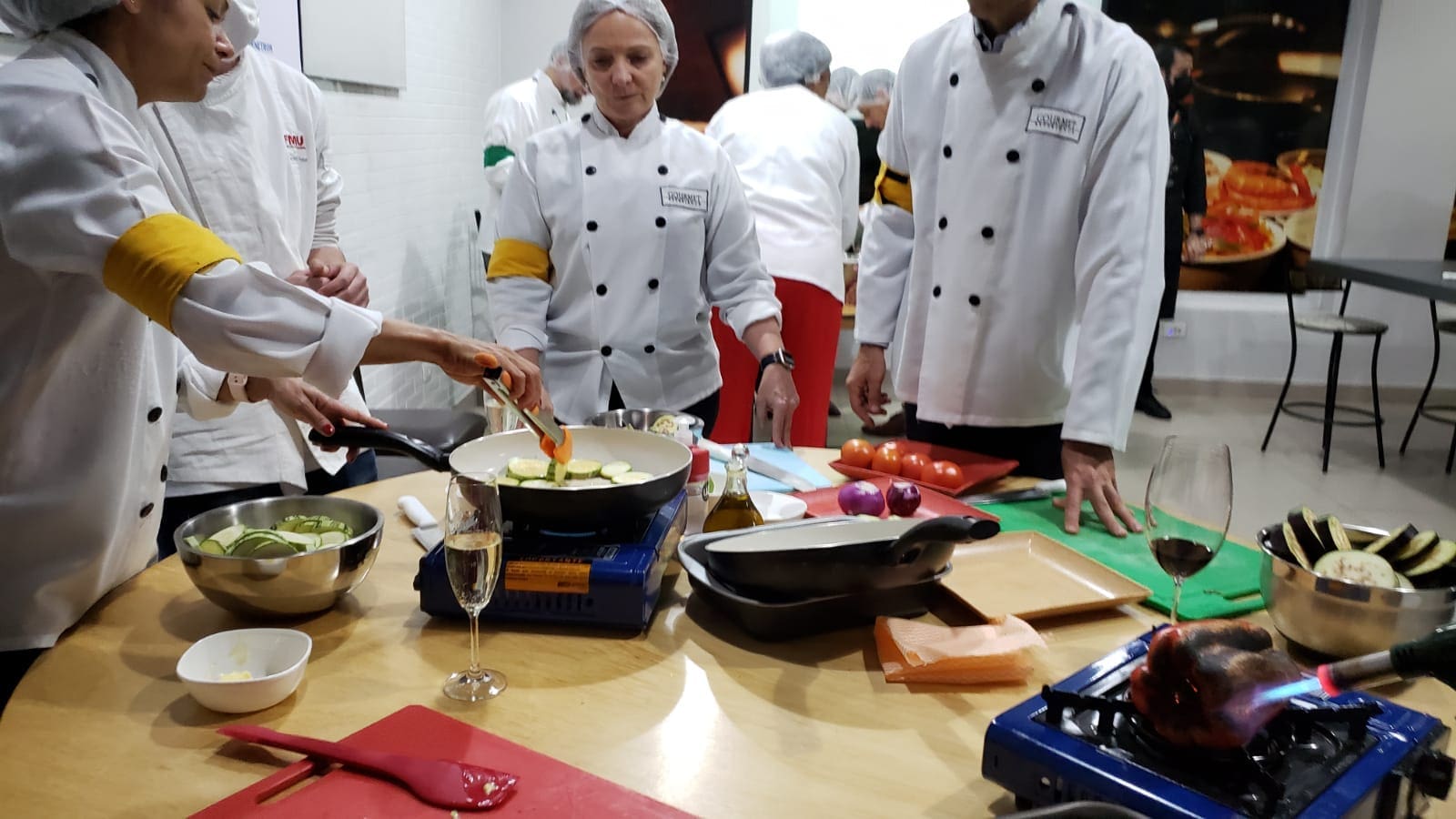 O grupo surpreendeu a Chef Tati Lemos com suas habilidades culinárias em uma noite muito interativa e diferente. O desafio era grande: realizar um cardápio completo composto por entrada, prato principal e sobremesa e que ao final foi muito elogiado pelos próprios cozinheiros, uma experiência inesquecível.
