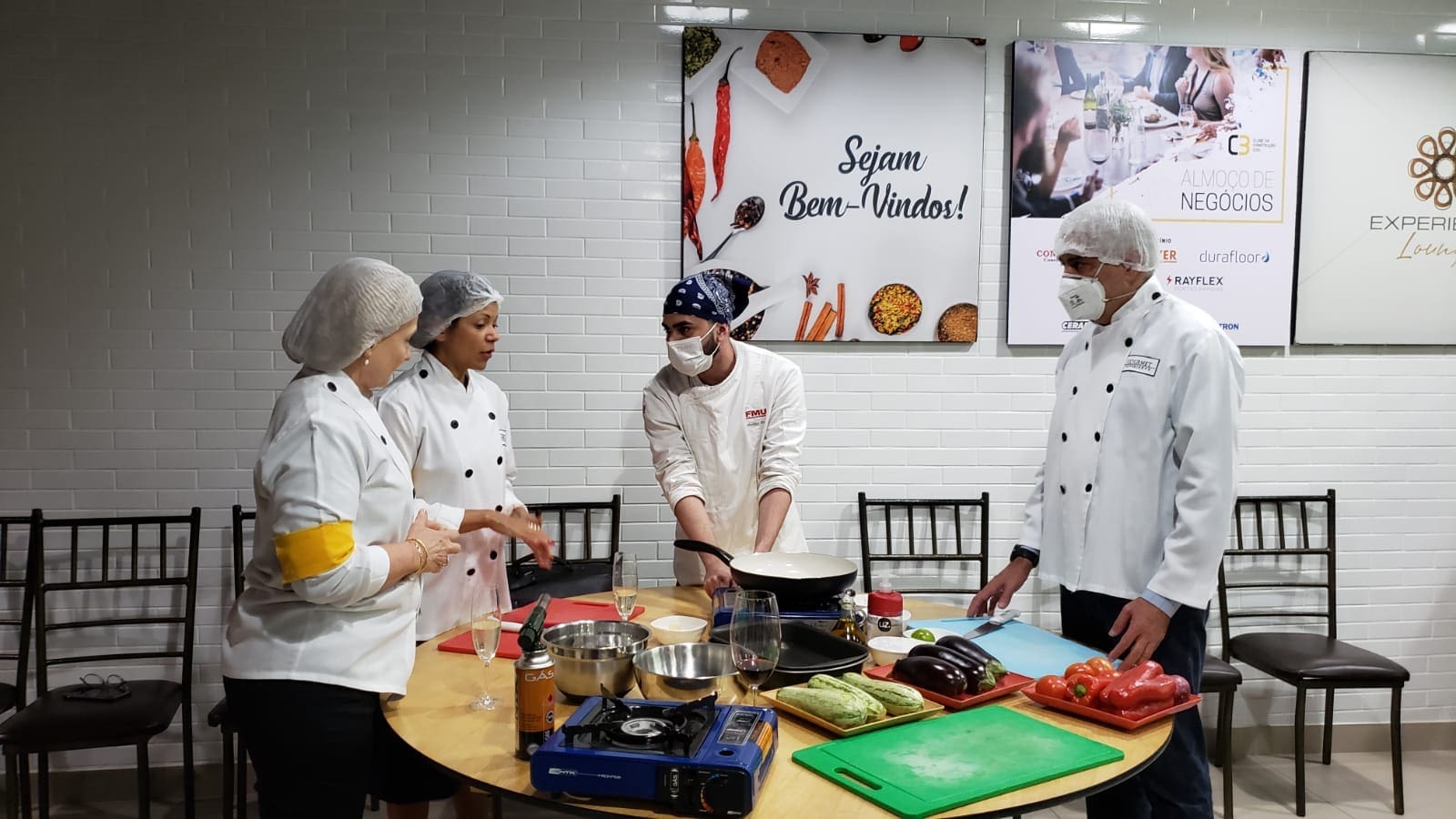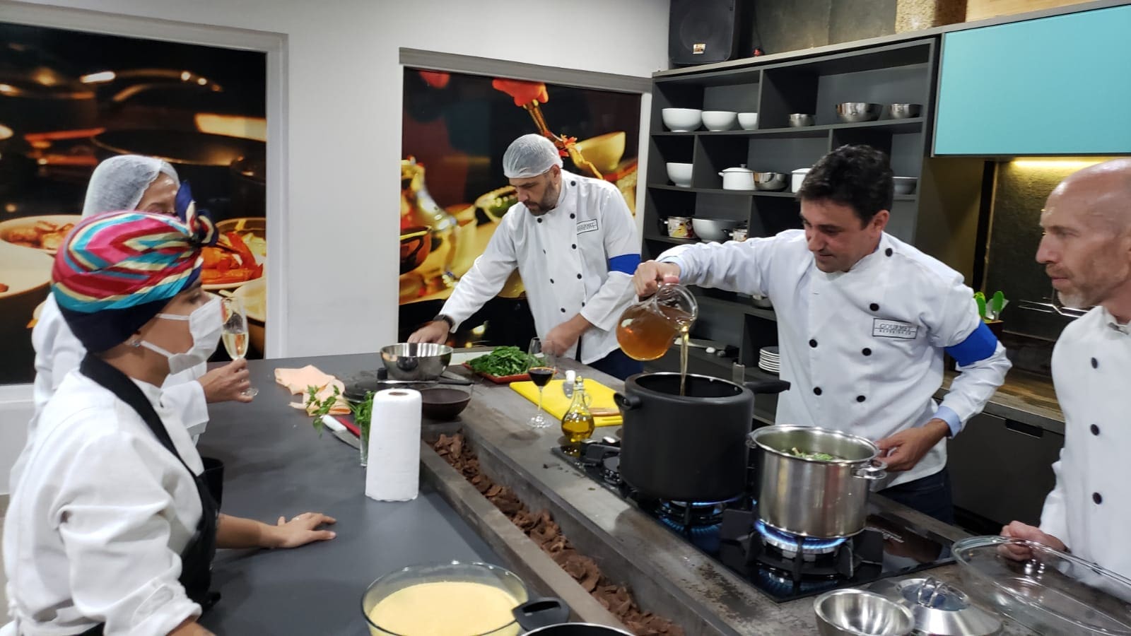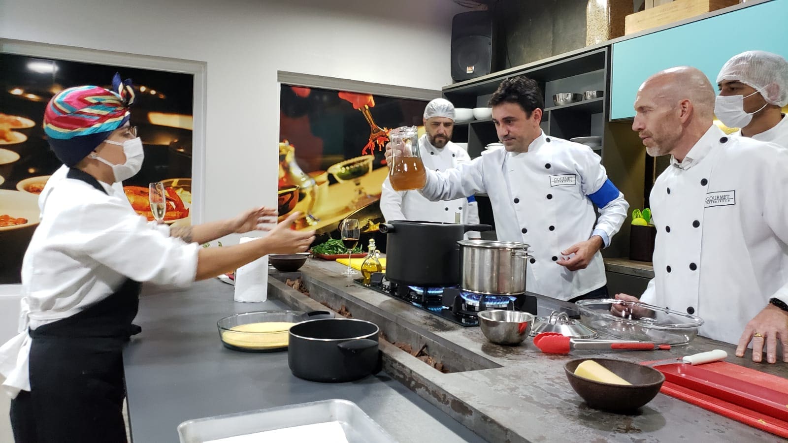 O grupo surpreendeu a Chef Tati Lemos com suas habilidades culinárias em uma noite muito interativa e diferente. O desafio era grande: realizar um cardápio completo composto por entrada, prato principal e sobremesa e que ao final foi muito elogiado pelos próprios cozinheiros, uma experiência inesquecível.