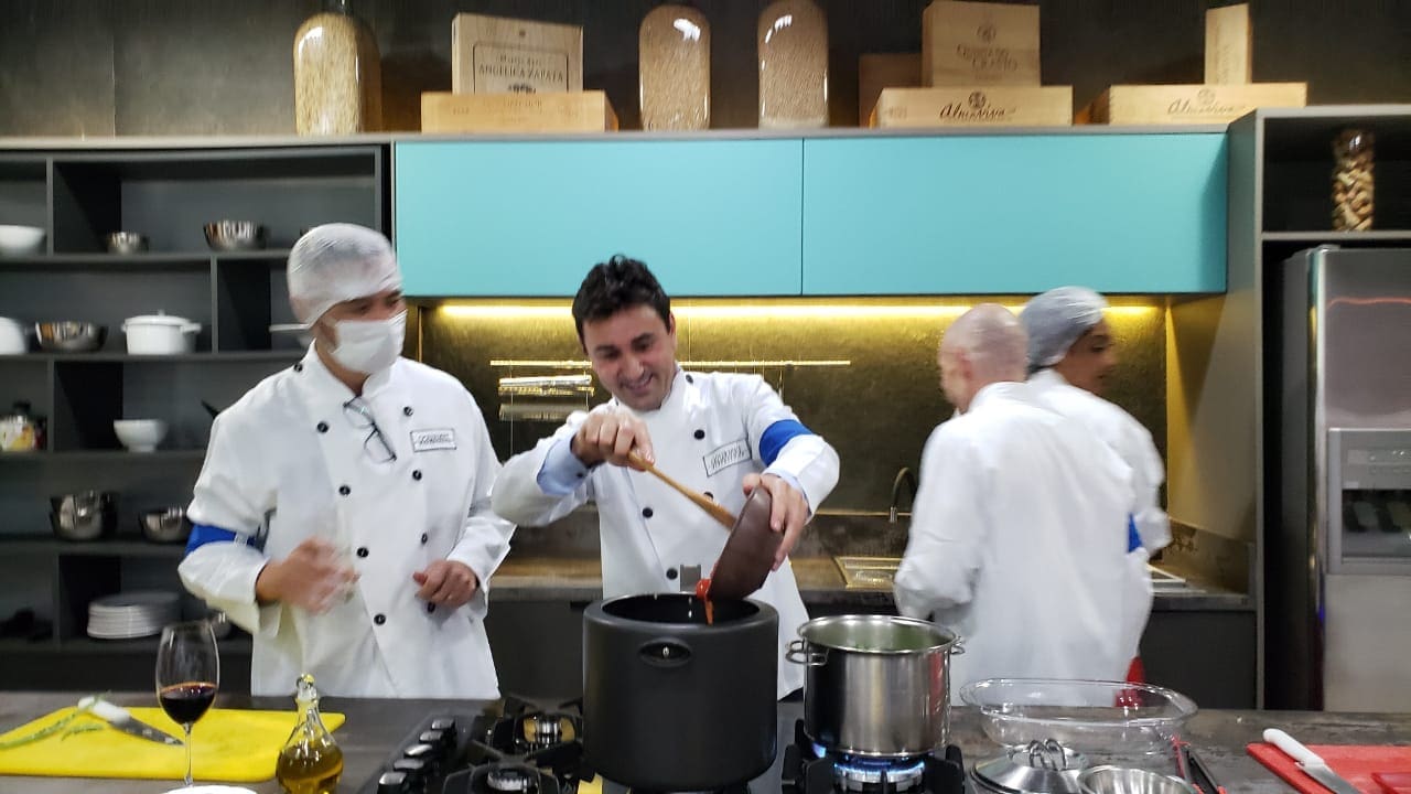 Depois deste momento de descontração foi o momento de todos os convidados vestirem seus dólmãs e colocar a mão na massa.
