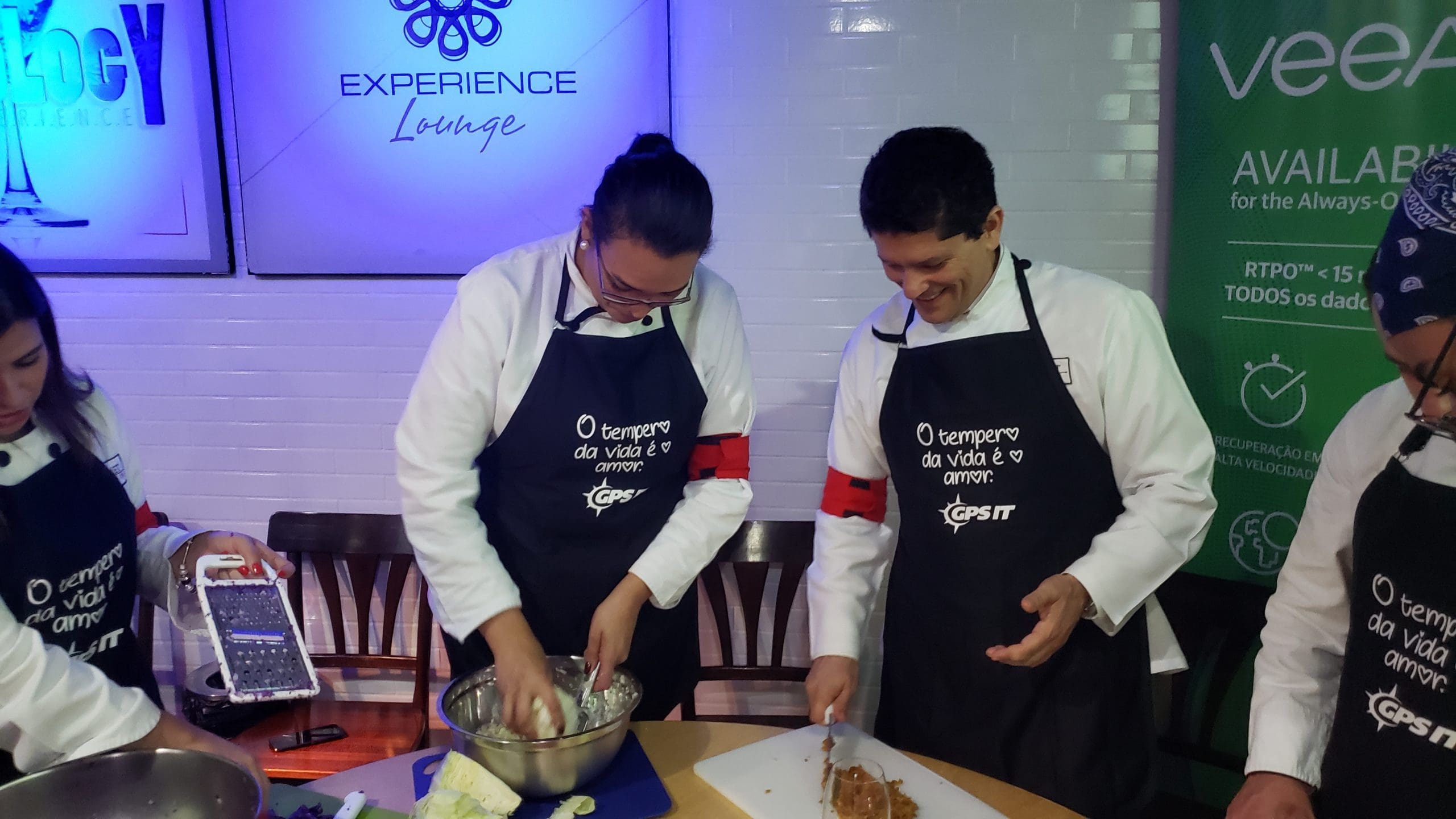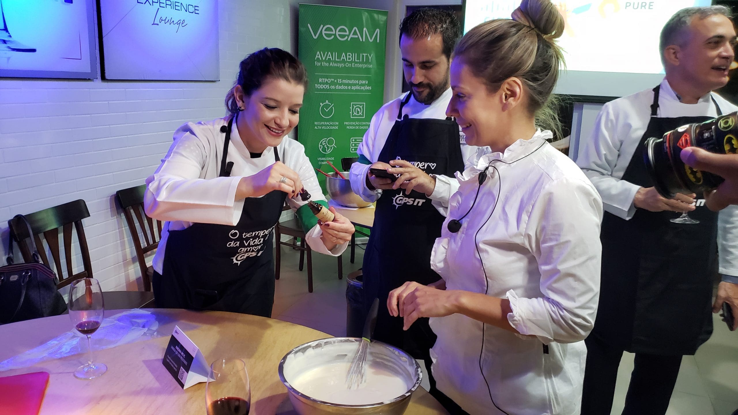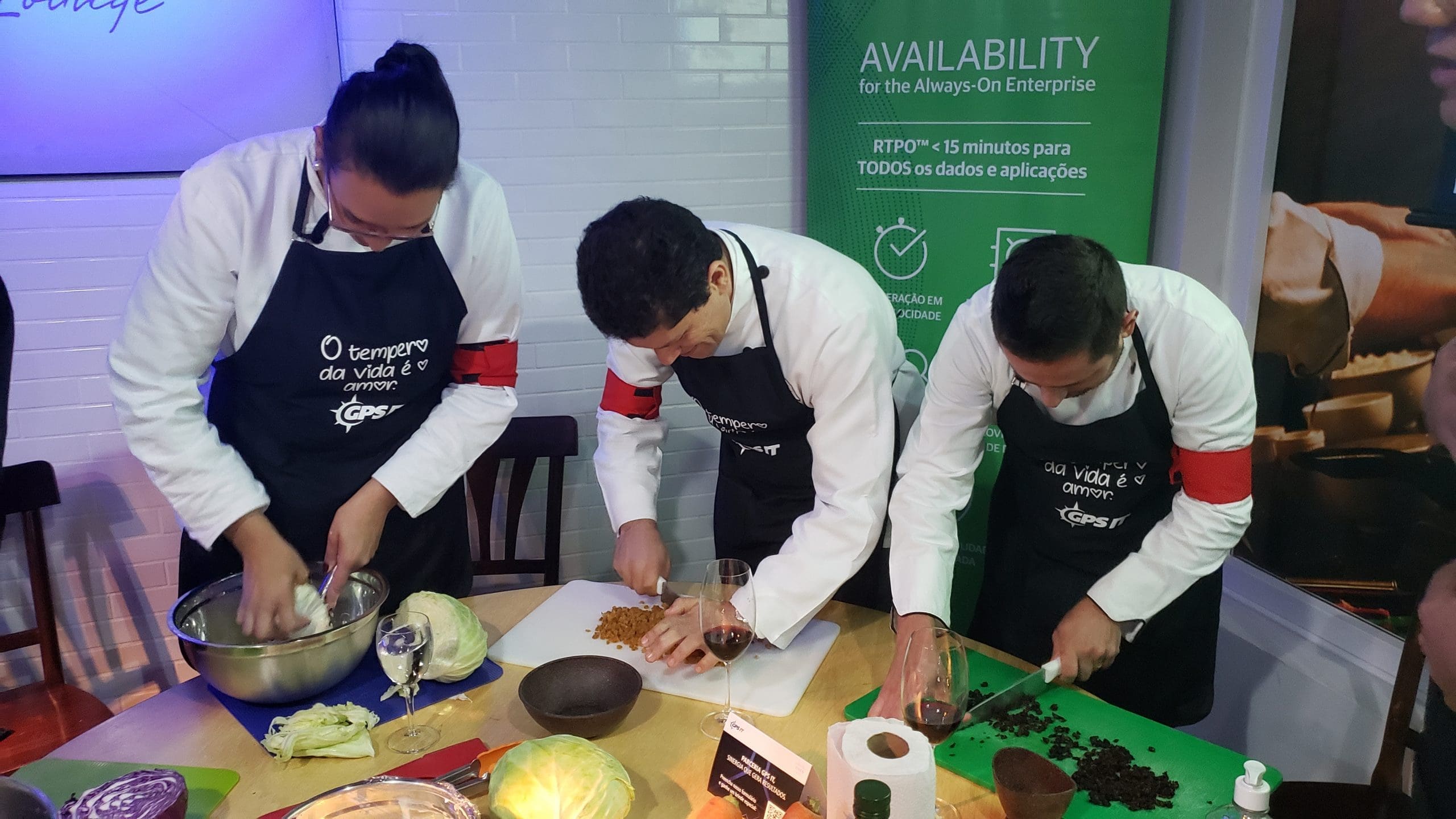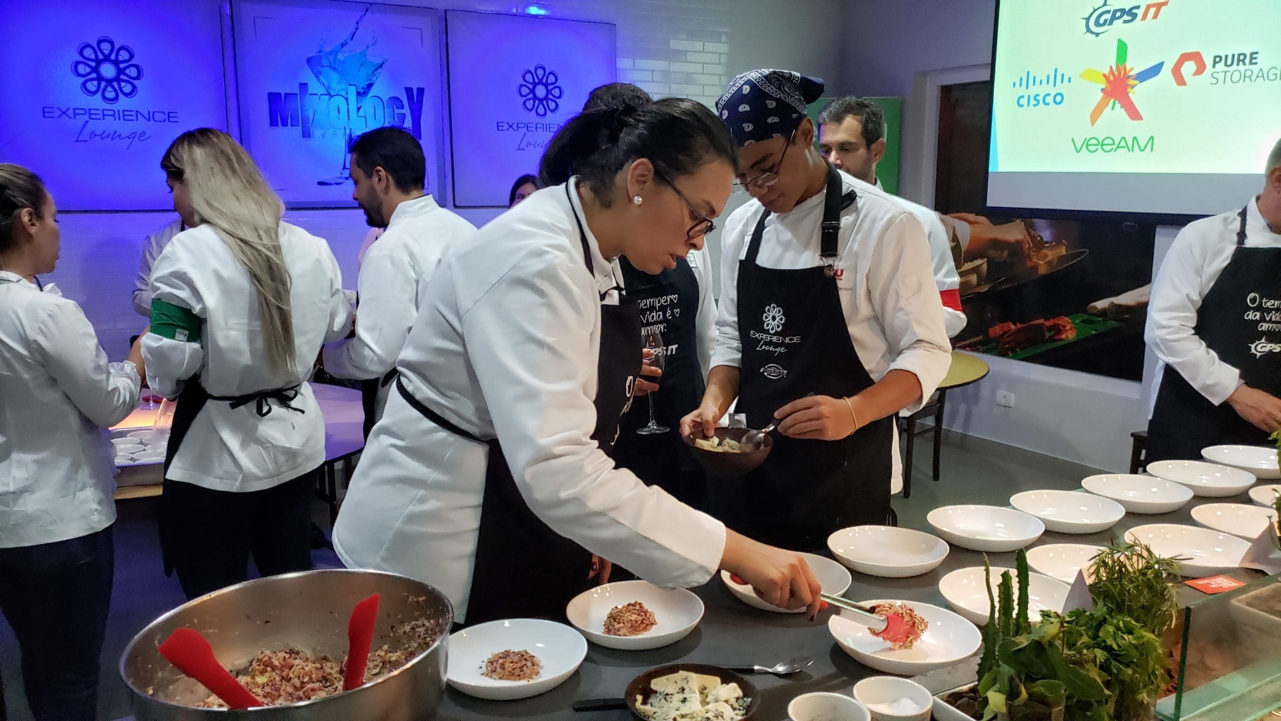 Como nesta divertida dinâmica de team building realizada para os clientes e parceiros da GPS IT, onde os convidados foram recepcionados com um delicioso coquetel produzido especialmente por nossa equipe e em seguida foram convidados a vestir os dólmãns se transformando em chefs de cozinha por um dia, para colocarem a mão na massa e assim elaborarem o próprio jantar composto de entrada, prato principal e sobremesa.