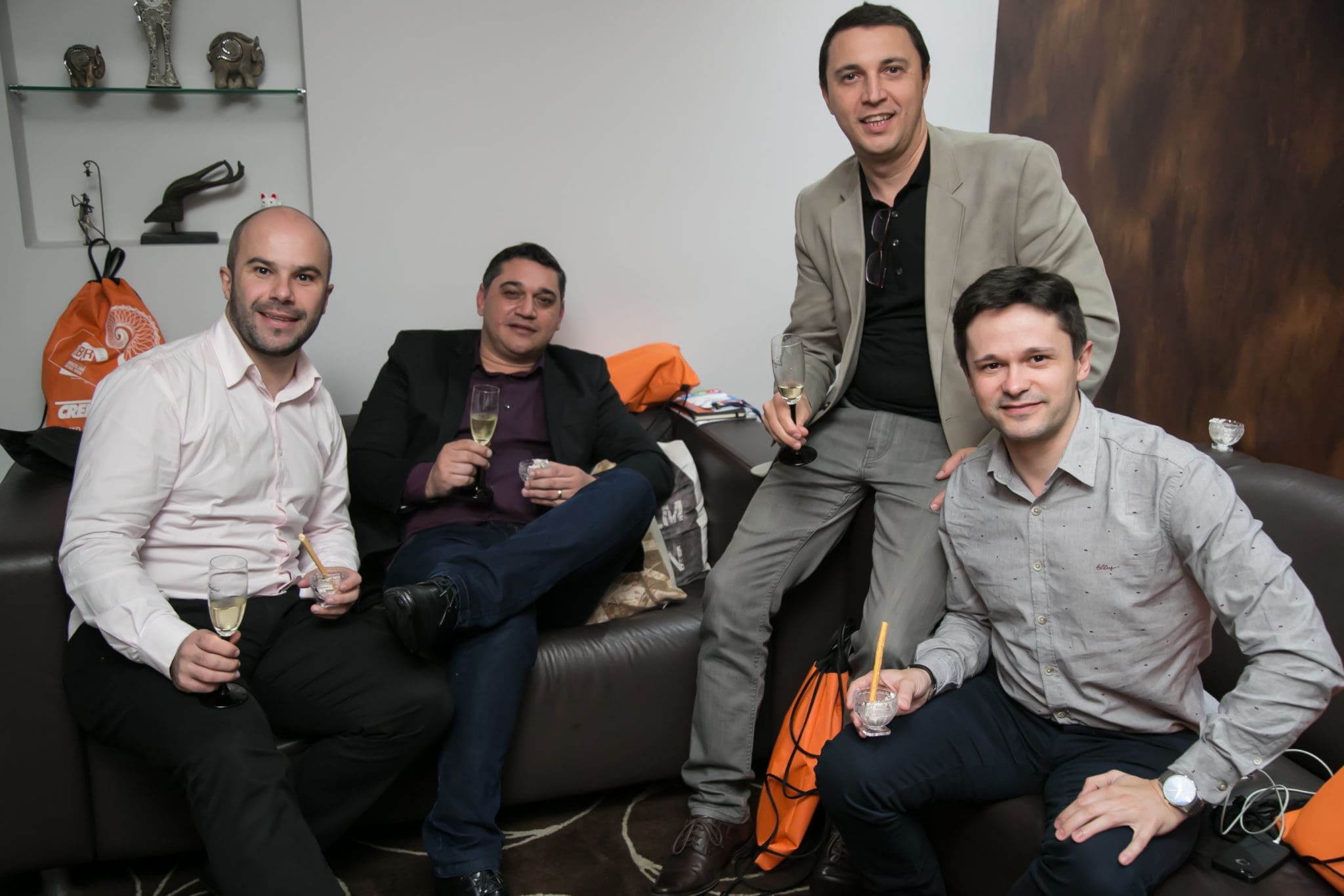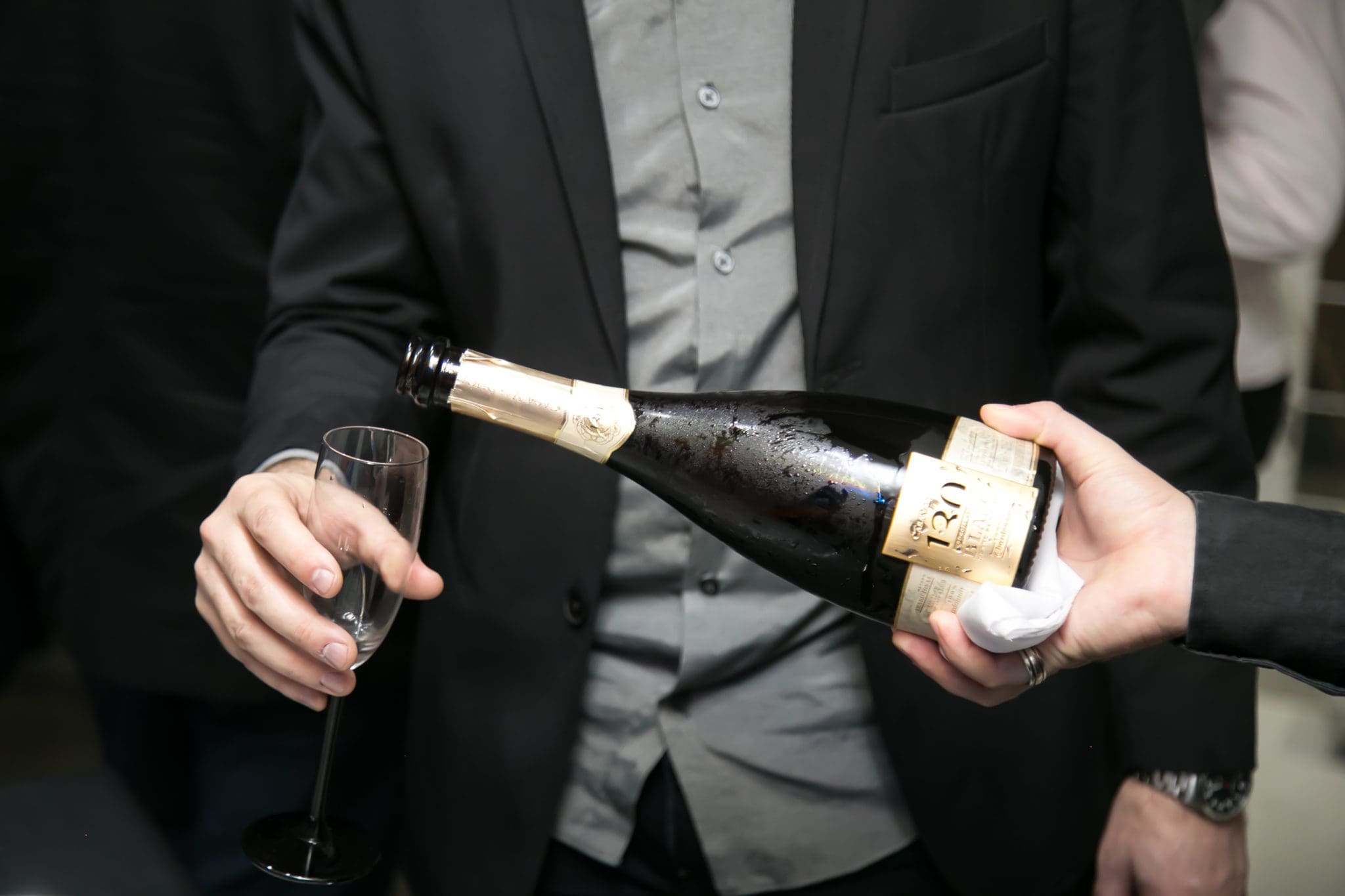 Para receber nossos convidados ilustres, demos início a um delicioso coquetel receptivo, servido de alguns espumantes Casa Valduga 130 Brut Blanc de Blanc juntamente com uma apetitosa Tartelet de Brie com mel, uva com cream cheese, banana da terra e pimenta biquinho e tapenade de azeitona com grissinis.